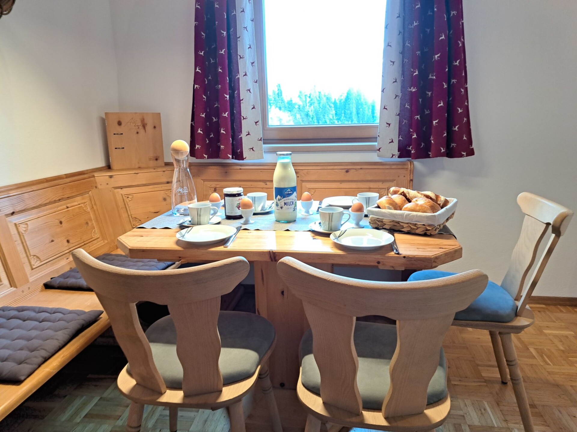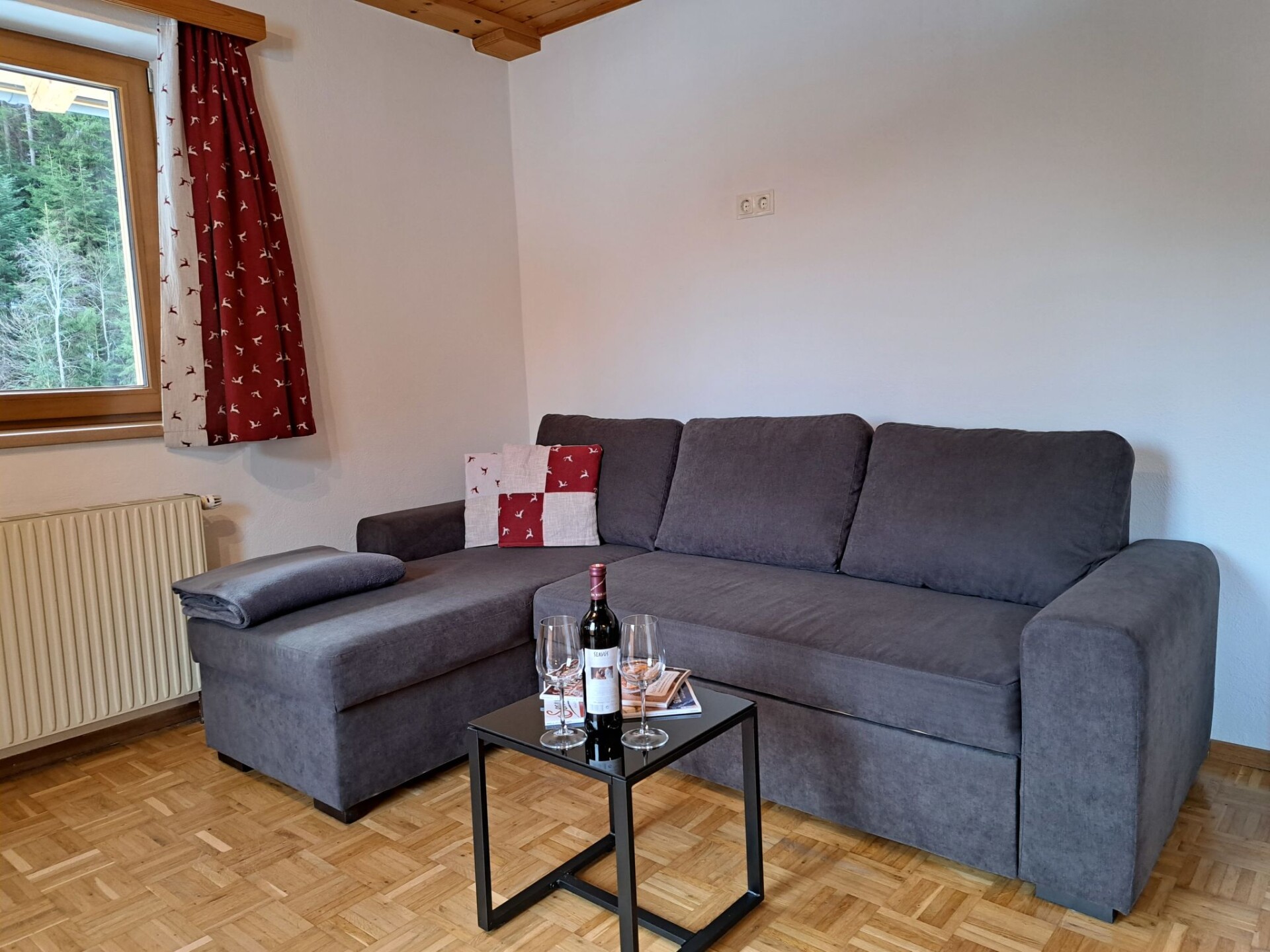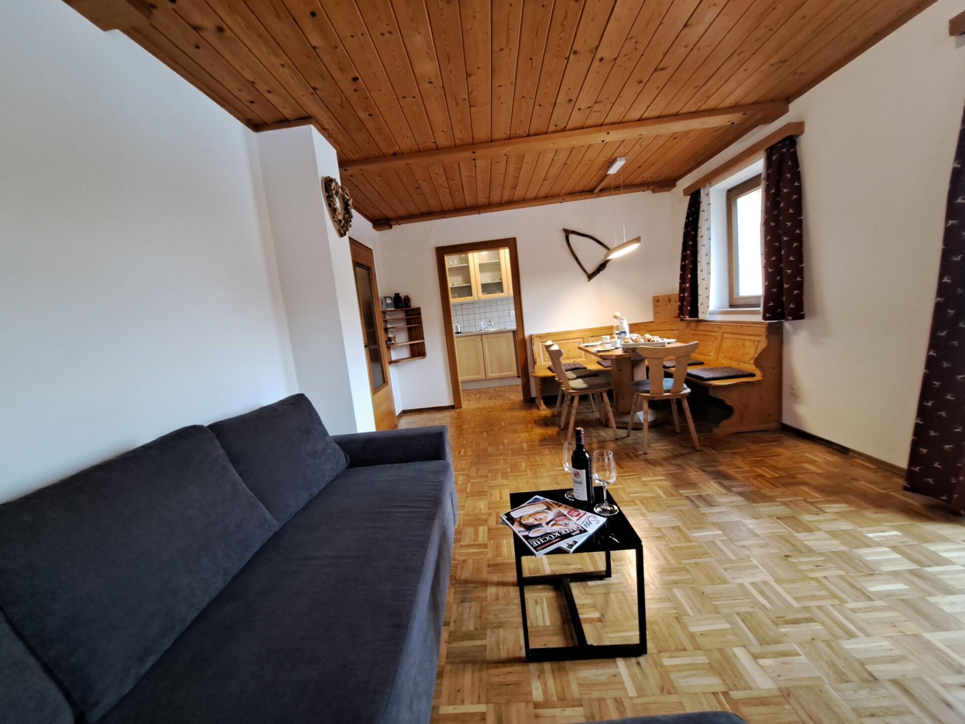 "Wiesenduft", appartement 2-kamers 48 m2. Mooi en met veel hout ingericht: 1 2-pers. kamer. Woonkeuken (oven, afwasmachine, 4 keramische glas kookplaten, broodrooster, waterkoker, diepvriezer, elektrische koffiemachine) met 1 uitschuifbaar bed, eettafel en Sat-TV. Uitgang naar het balkon. Douche/WC. Verwarming. Balkon. Balkonmeubilair. Mooi uitzicht op de bergen. Ter beschikking: haardroger. Internet (Internet (WiFi), gratis). Parkeerplaats bij het huis. Geschikt voor families. Niet rokers woning. Rookmelders.