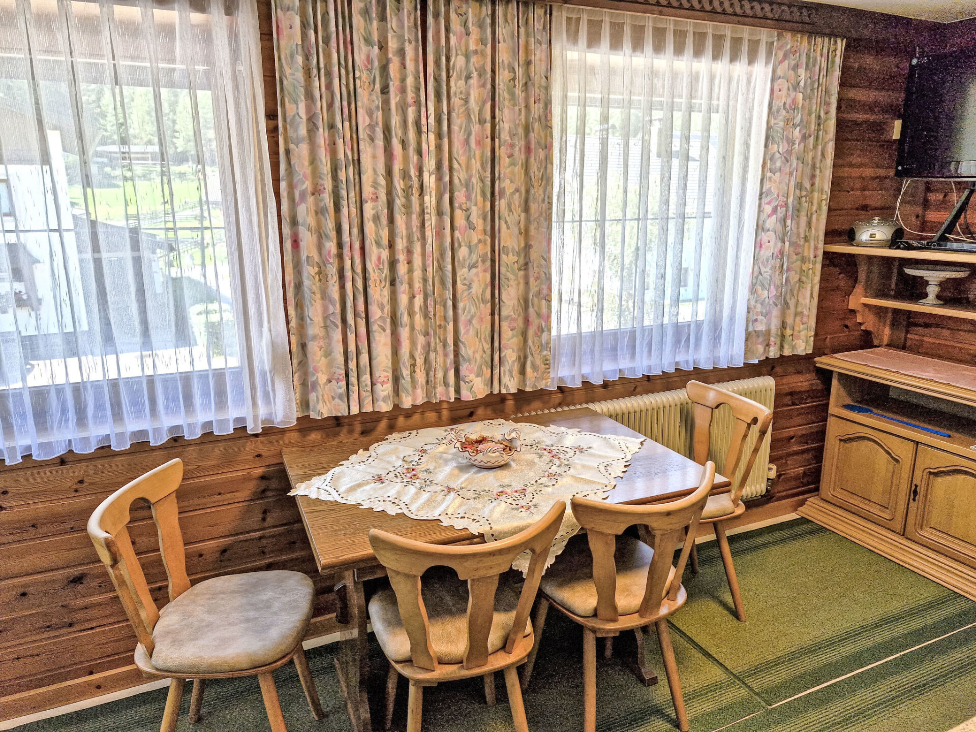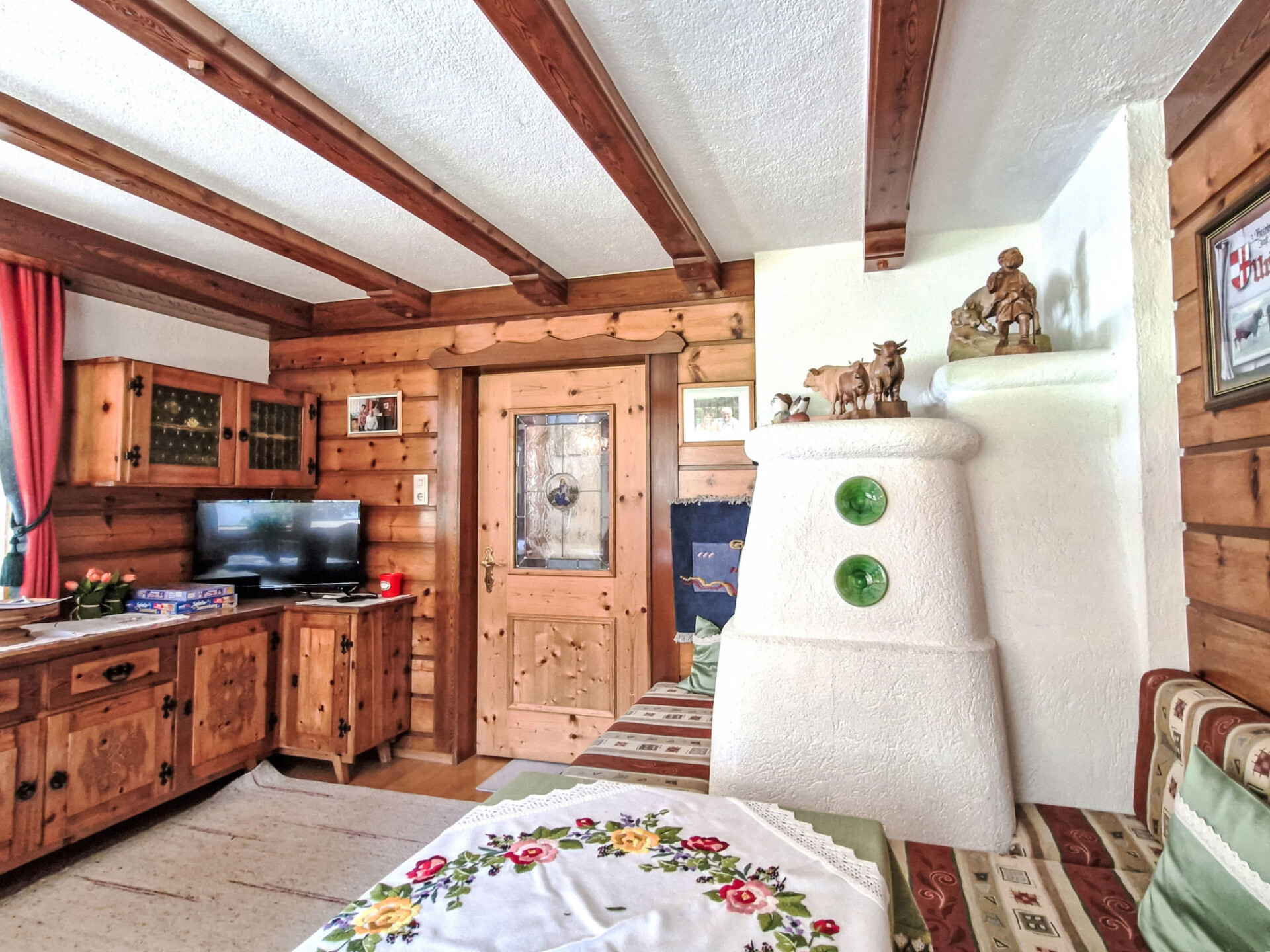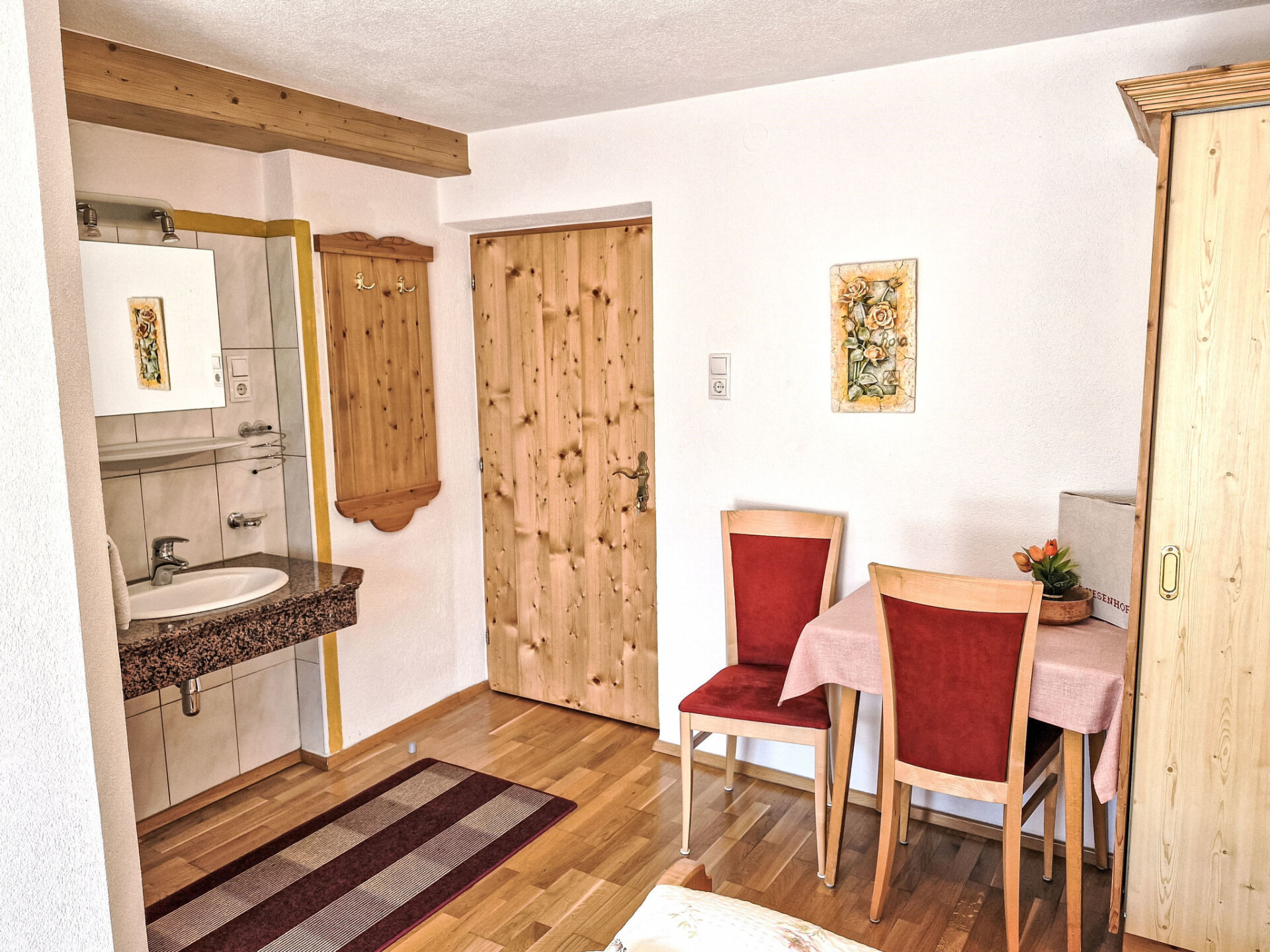 "Wiesenhof", appartement 4-kamers 90 m2 op 2 verdiepingen. Gerenoveerd in 2015, doelmatig en gezellig ingericht: woonkamer met Sat-TV en tegelkachel. Bovenverdieping: 2 kamers, elke kamer heeft 1 2-pers bed, wastafel en douche/WC. Uitgang naar het balkon. 1 kamer met 1 2-pers bed en douche/WC. Uitgang naar het balkon. Keuken (oven, afwasmachine, 4 keramische glas kookplaten, waterkoker, magnetron, elektrische koffiemachine) met eettafel. Olie-verwarming. Parketvloeren. De woonkamer is een boerderij-achtige lounge. Balkon. Balkonmeubilair. Panoramazicht op Gamskogel / Hauerkogel. Ter beschikking: Internet (WiFi, gratis). Koelkast zonder vriesvak. Maximaal 1 huisdier/hond toegestaan. Rookmelders. Geen interne verbinding tussen de etages.