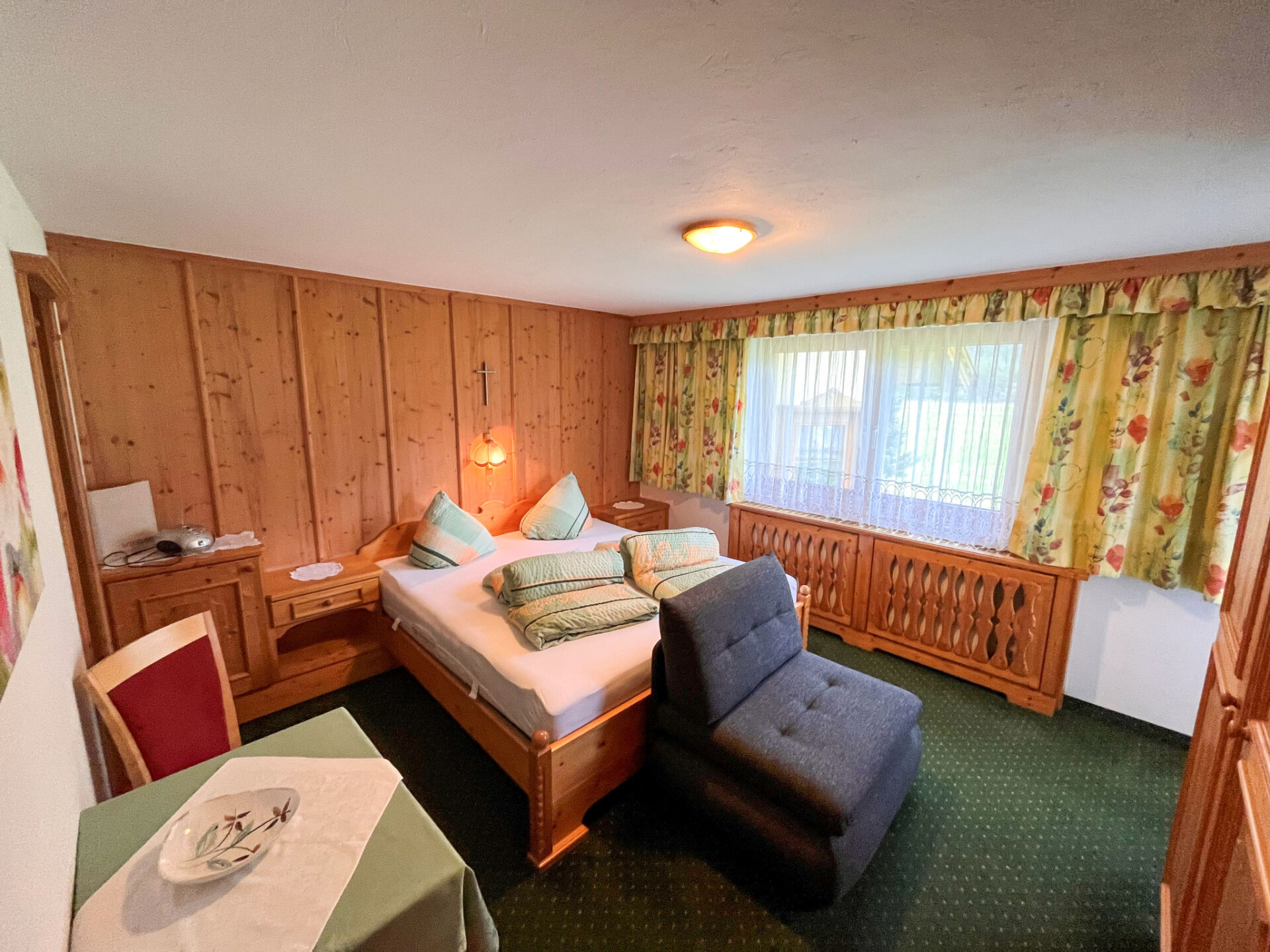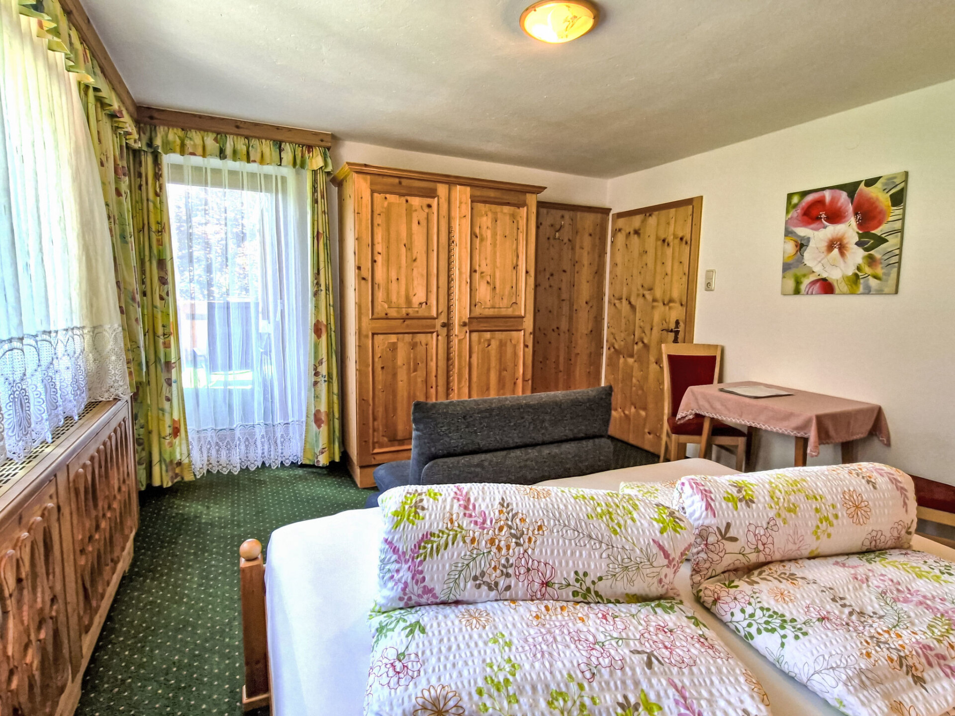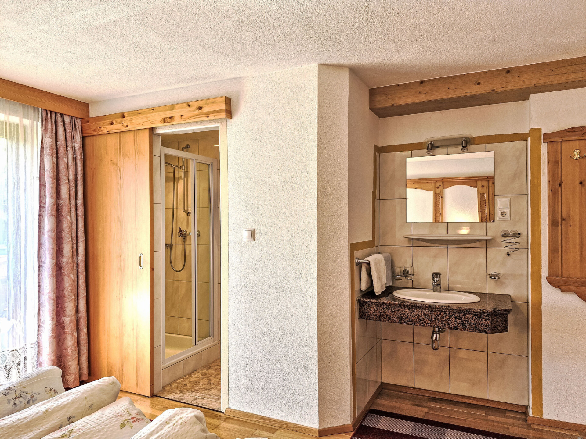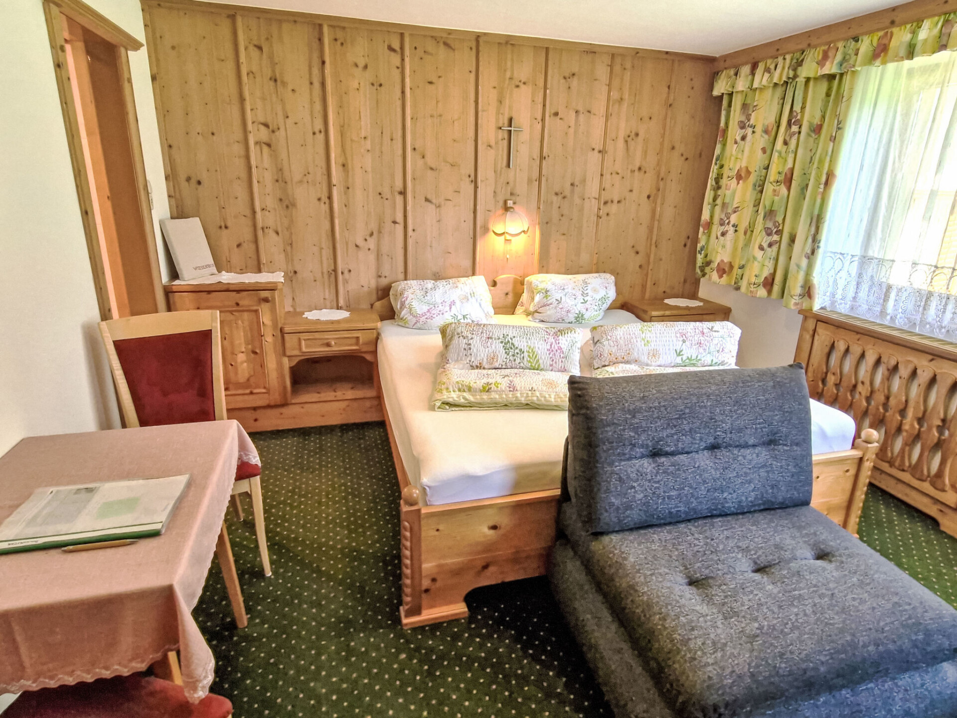 "Wiesenhof", appartement 4-kamers 90 m2 op 2 verdiepingen. Gerenoveerd in 2015, doelmatig en gezellig ingericht: woonkamer met Sat-TV en tegelkachel. Bovenverdieping: 2 kamers, elke kamer heeft 1 2-pers bed, wastafel en douche/WC. Uitgang naar het balkon. 1 kamer met 1 2-pers bed en douche/WC. Uitgang naar het balkon. Keuken (oven, afwasmachine, 4 keramische glas kookplaten, waterkoker, magnetron, elektrische koffiemachine) met eettafel. Olie-verwarming. Parketvloeren. De woonkamer is een boerderij-achtige lounge. Balkon. Balkonmeubilair. Panoramazicht op Gamskogel / Hauerkogel. Ter beschikking: Internet (WiFi, gratis). Koelkast zonder vriesvak. Maximaal 1 huisdier/hond toegestaan. Rookmelders. Geen interne verbinding tussen de etages.