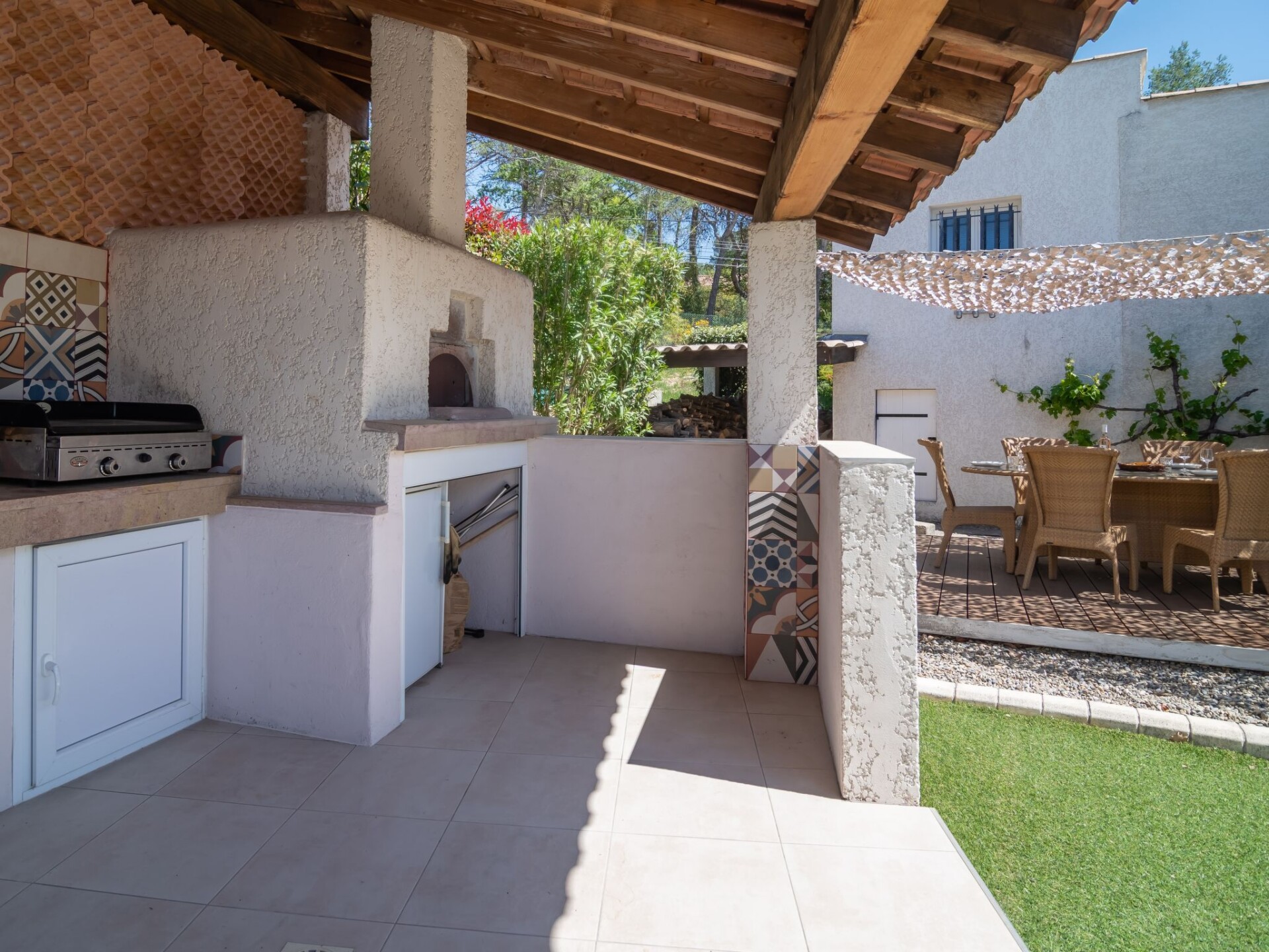 Huis 6-kamers 160 m2. Comfortabel en modern ingericht: woon-/eetkamer met zwedenkachel (alleen decoratie), eettafel, TV, CD-speler en DVD. Uitgang naar het terras, naar het zwembad. 1 kamer met 1 2-pers bed (160 cm). 2 kamers, elke kamer heeft 1 2-pers bed (140 cm). 1 kamer met 2 bedden (90 cm). Open keuken (oven, afwasmachine, 3 inductiekookplaten, magnetron, diepvriezer, elektrische koffiemachine, pads voor de koffiemachine (Nespresso) extra, kookeiland). Badkamer, douche, 2 aparte WC's, dubbele wastafels. Air-conditioning. Terras 70 m2. Terrasmeubelen, barbecue. Ter beschikking: wasmachine, droger, strijkijzer. Internet (Internet (WiFi), gratis). Rookvrij huis. Als er minder dan het maximale aantal gasten in de accommodatie verblijft, zijn niet alle slaapkamers beschikbaar voor gebruik. 831060000062I