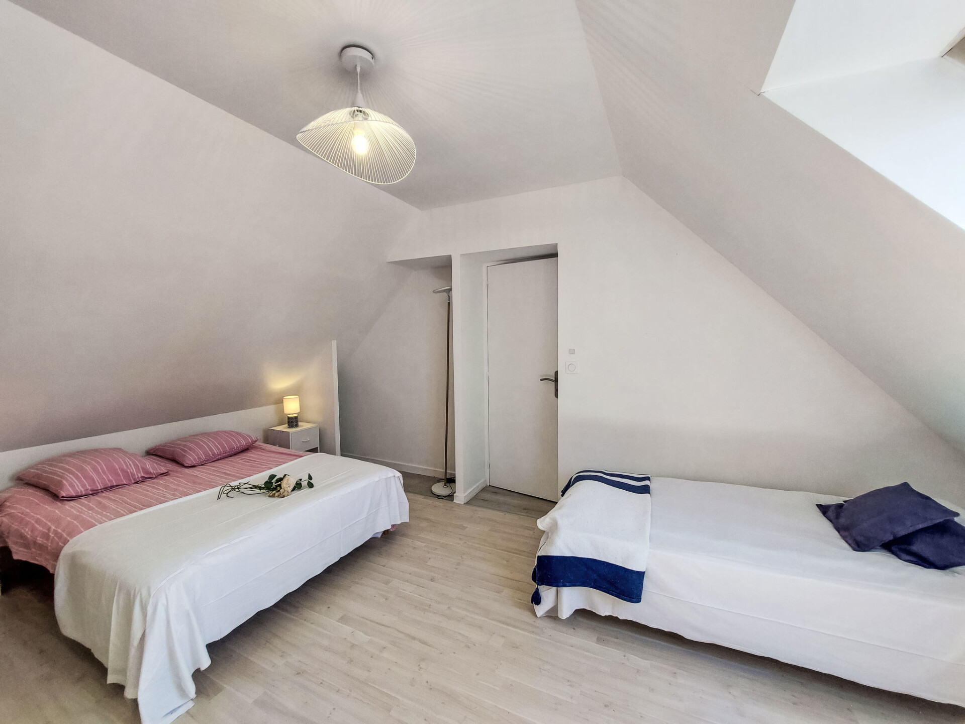 Eengezinswoning "Bon Port", van 2 verdiepingen. Aan de rand van de plaats, 700 m van het centrum van Saint Philibert, 600 m van zee, 1.9 km van het meer, 2 km van het strand. Voor alleengebruik: terrein 500 m2, verzorgde tuin (niet omheind), parkeerplaats op het terrein. Levensmiddelenwinkel 700 m, supermarkt 4 km, restaurant, bakkerij 700 m, café, zandstrand "Plage de Men Er Belleg" 2 km, thermaalbad "Thalassothérapie de Carnac" 9 km, meer Etang de Kercadoret 1.9 km. Golfterrein (18 holes) 15 km, surfschool 15 km, zeilschool 2 km. Attracties in de buurt: Port Deun 600 m, Carnac et ses aligenements 8 km, Quiberon 15 km, Vannes 30 km, La Trinité sur Mer 4 km, Belle Ile en Mer. Wandelgebied Golfe du Morbihan.