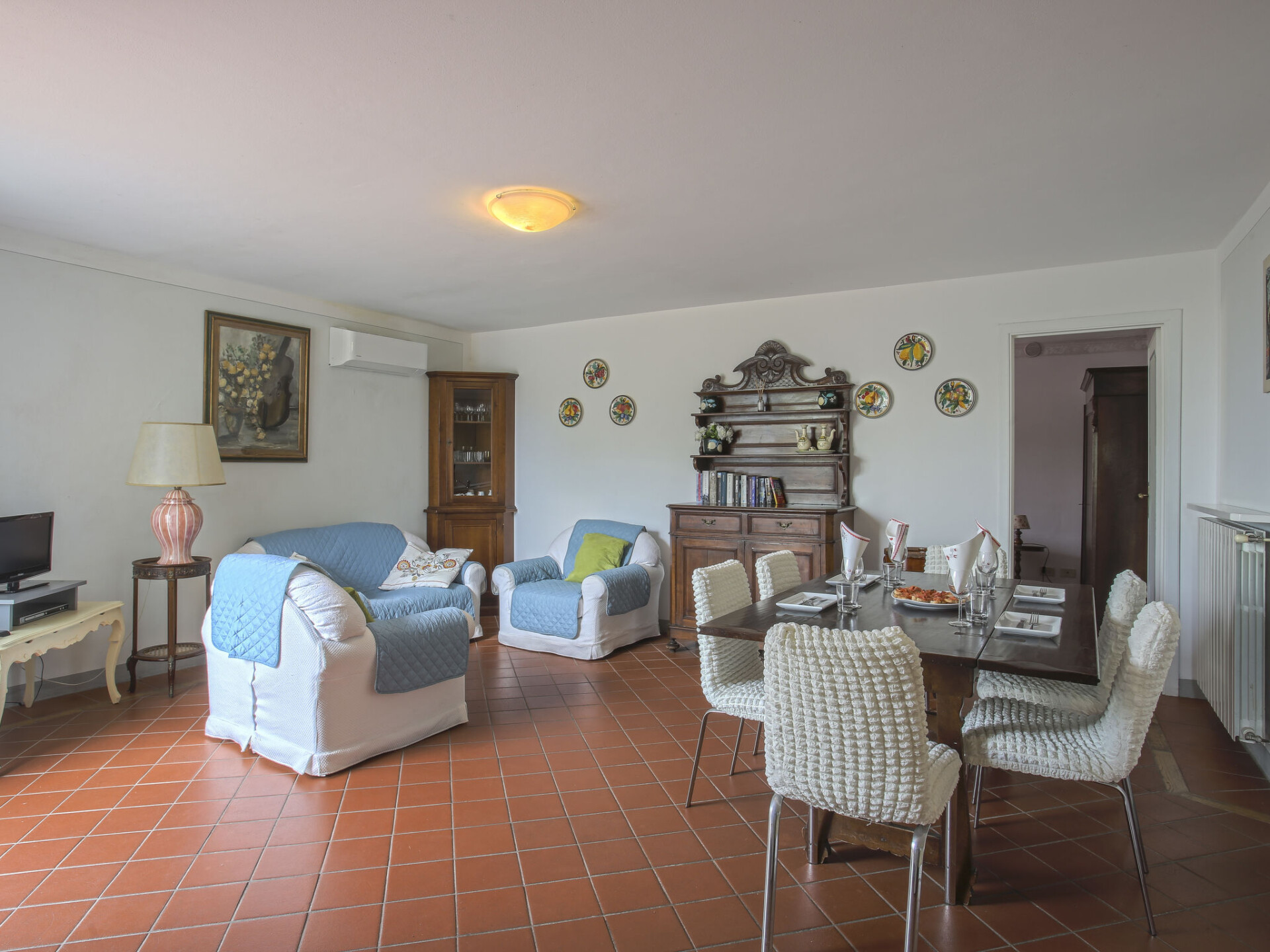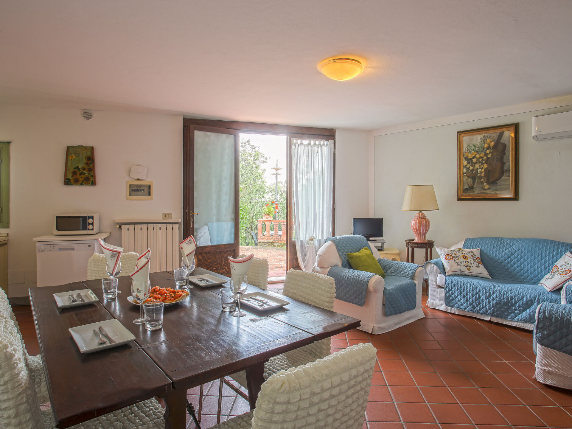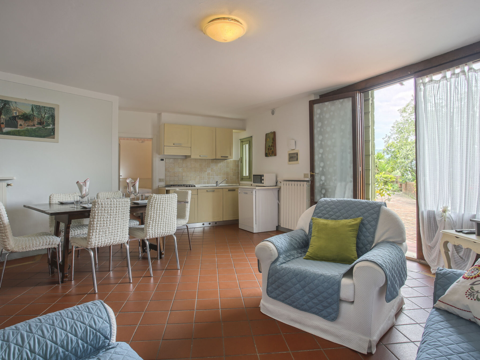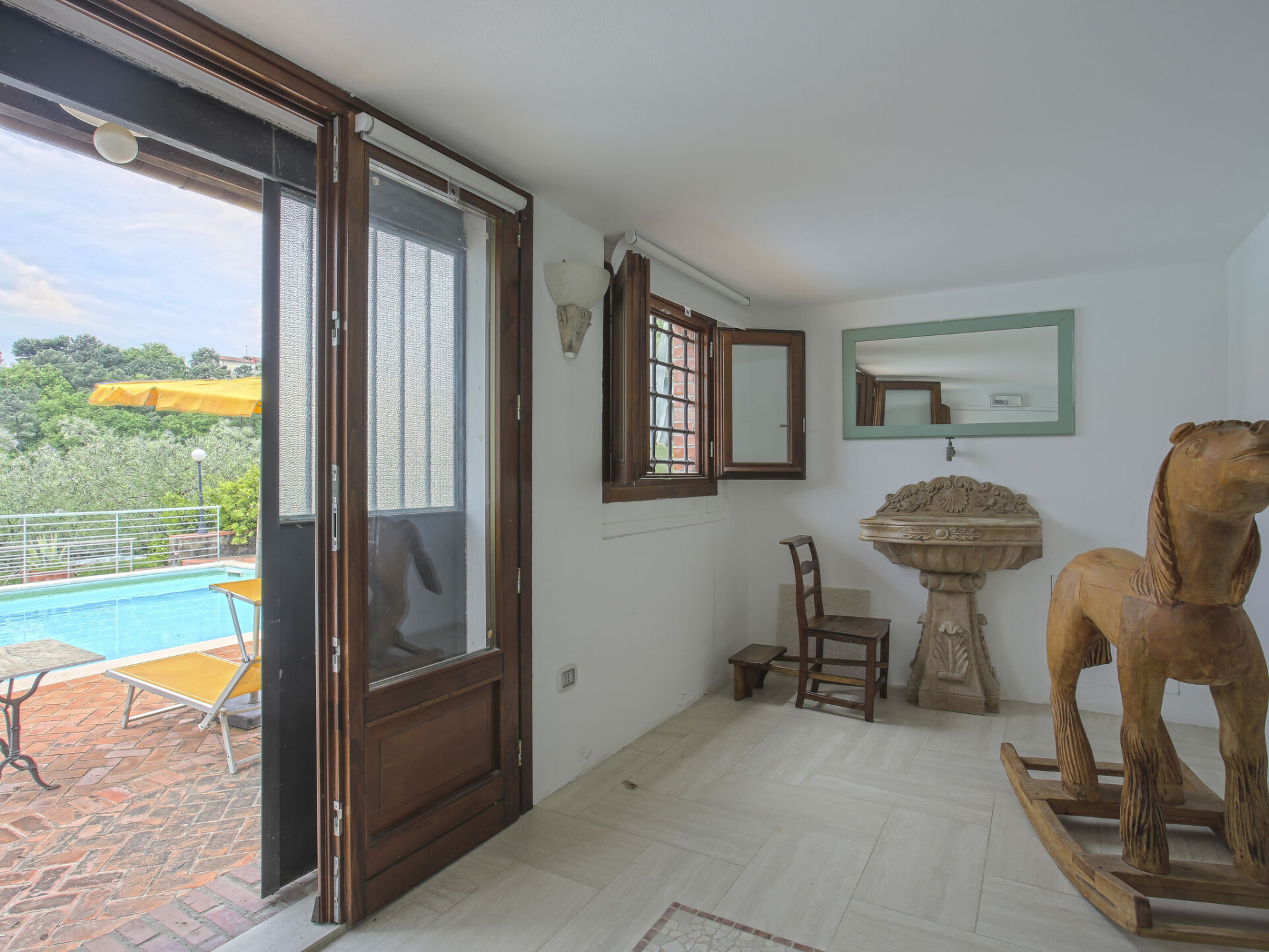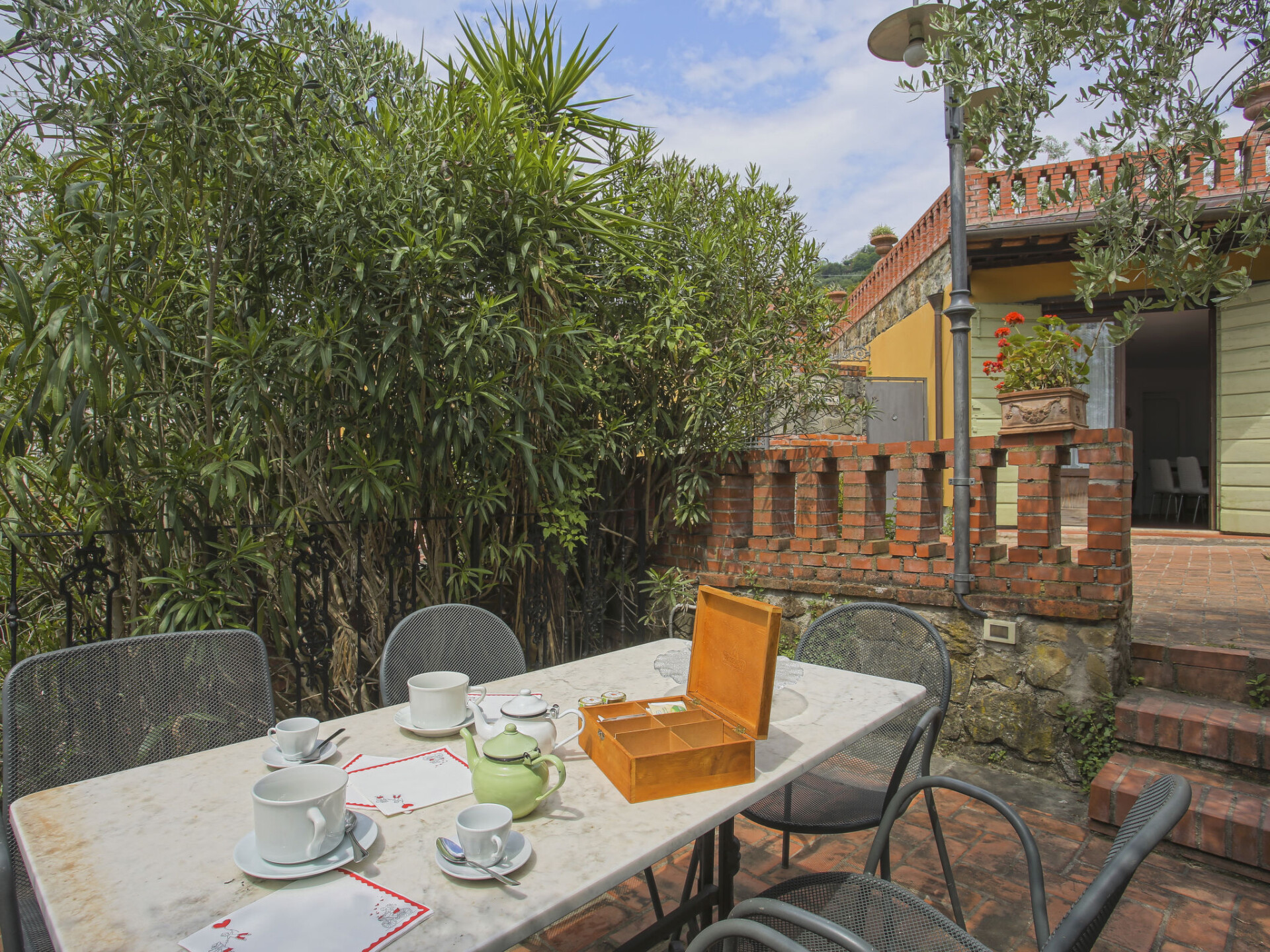 Mooi, rustieke agriturismo "Borgo della Limonaia", 130 m boven zeeniveau, omgeven door bomen en velden. 4 huizen in de woning. 7 appartementen in de woning. 4 km van het centrum van Montecatini Terme, 30 km van het centrum van Lucca, 50 km van het centrum van Firenze, geïsoleerde, zonnige ligging tegen een helling, 55 km van zee, te midden van groen. Voor medegebruik: terrein 6 ha, mooie tuin op verschillende niveaus met planten en bomen, openluchtzwembad (11 x 6 m, 120 - 160 cm diepte, seizoensgebonden beschikbaarheid: 25.Apr. - 15.Okt.). Buitendouche, patio, terras, tuinmeubelen, kinderspeelplaats, onderhoud zwembad door de eigenaar/tuinman. In het complex: sauna, stoombad, hot tub (alles extra), tafeltennis (alles incl.), tafelvoetbal, wasmachine (voor medegebruik, extra). 200 m lange smalle toegangsweg tot aan het huis. Parkeerplaats op 200 m op het terrein. Levensmiddelenwinkel 600 m, supermarkt 1.5 km, bushalte 3 km, treinstation "Montecatini Terme" 4 km, zandstrand "Lido di Camaiore" 55 km. Golfterrein (18 holes) 10 km. Lokale verkoop van streekproducten.