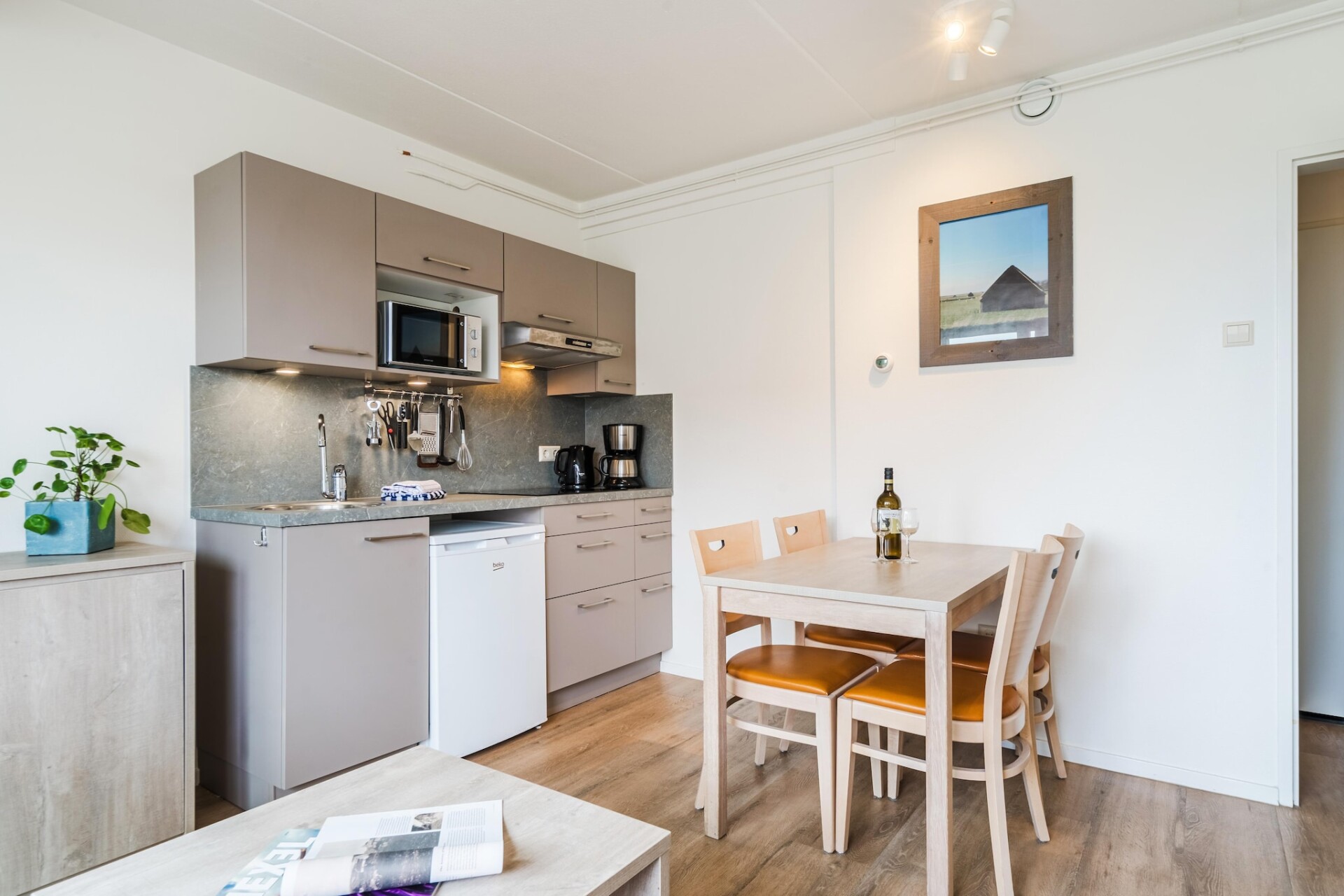 Dit gezellige appartement met één slaapkamer op Texel is ideaal voor stellen of kleine gezinnen die op zoek zijn naar een strandvakantie. Het appartement ligt vlakbij het centrum van De Koog en biedt plaats aan maximaal 4 personen. Het heeft een praktische indeling met een woonkamer met een tweepersoonsslaapbank en een tv, een open keuken met een waterkoker, filterkoffiezetapparaat, magnetron en koelkast met vriezer, en een slaapkamer met een tweepersoonsbed of twee eenpersoonsbedden. De badkamer is voorzien van een douche, wastafel en toilet. Centrale verwarming zorgt het hele jaar door voor comfort.