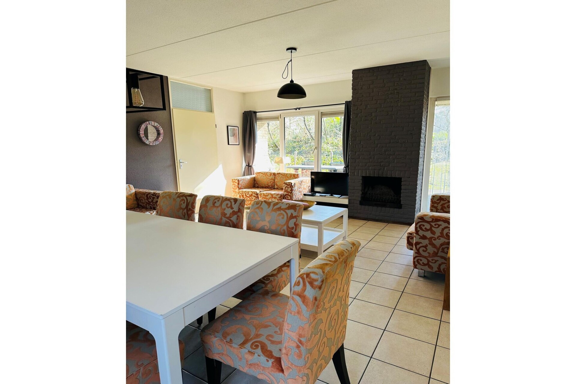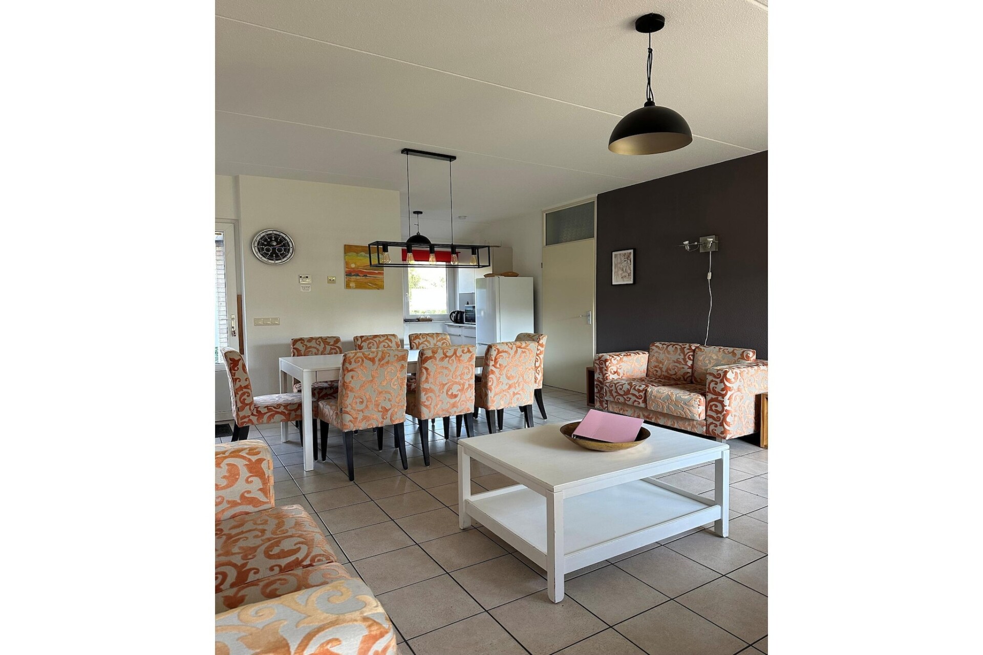 Verscholen in het serene landschap van de Achterhoek bij Lochem, biedt deze ruime, vrijstaande vakantiewoning de perfecte balans tussen privacy en gezelligheid voor groepen tot acht personen. Het hart van het huis is een open woon- en eetkamer, waar comfortabele zitmeubels en een grote eettafel uitnodigen tot gezellige filmavonden of lange, ontspannen diners. De keuken is een droom voor elke kok, volledig uitgerust met moderne apparatuur zoals een vaatwasser, oven, magnetron en een koelkast met vriezer, zodat alles van een kop koffie in de ochtend tot uitgebreide familiediners met gemak kan worden bereid.