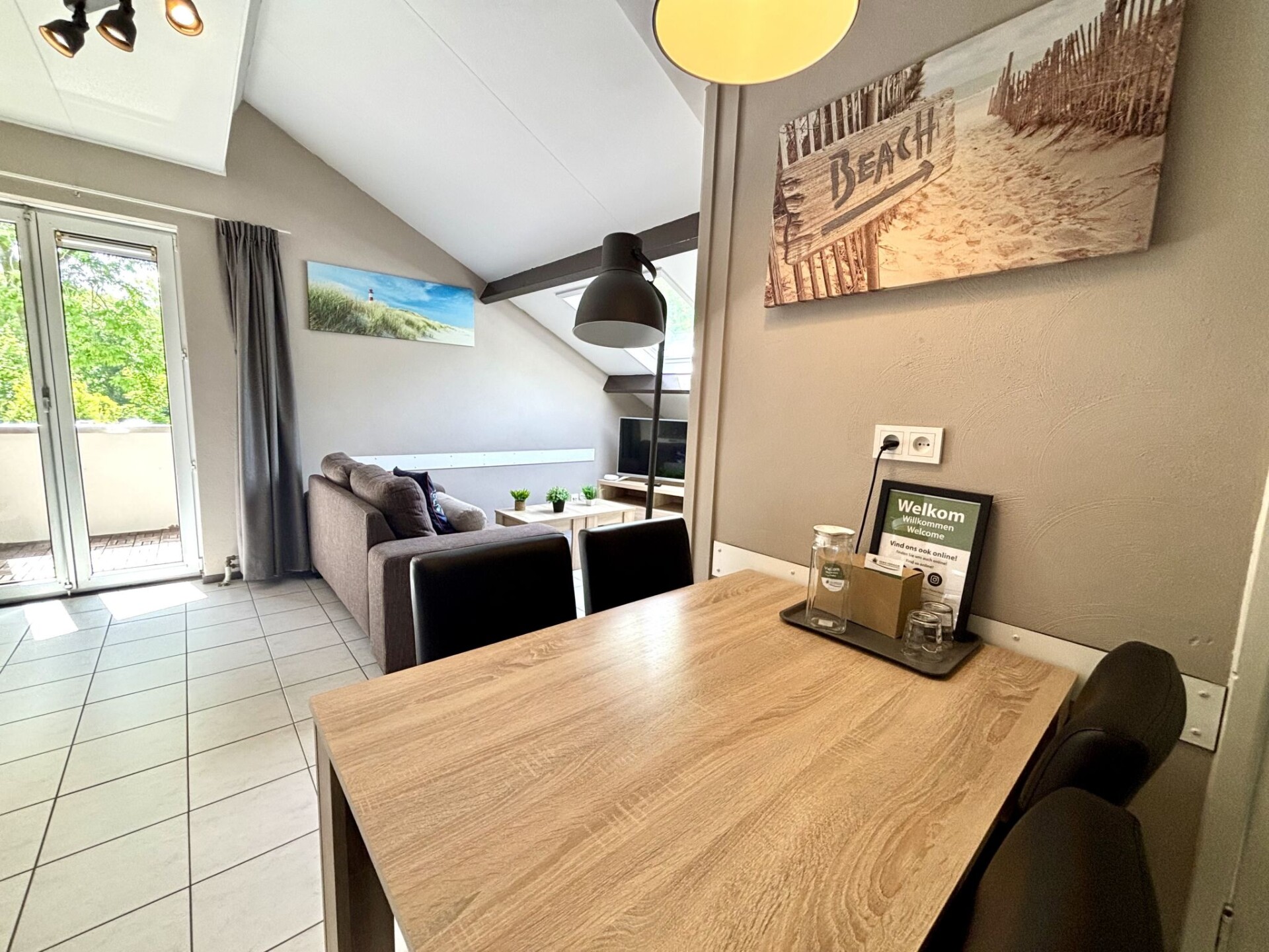 "Boszicht 4", appartement 3-kamers op de 1e verdieping. Gedeeltelijk gerenoveerd: woon-/eetkamer met TV. Uitgang naar het balkon. 2 2-pers. kamers, elke kamer heeft 2 bedden met douche/WC. Keuken (oven, afwasmachine, 4 inductiekookplaten, waterkoker, elektrische koffiemachine, combimagnetron). Elektrische verwarming. Balkonmeubilair. Ter beschikking: kinderstoel, kinderbed. Internet (WiFi, gratis). Geschikt voor families.
