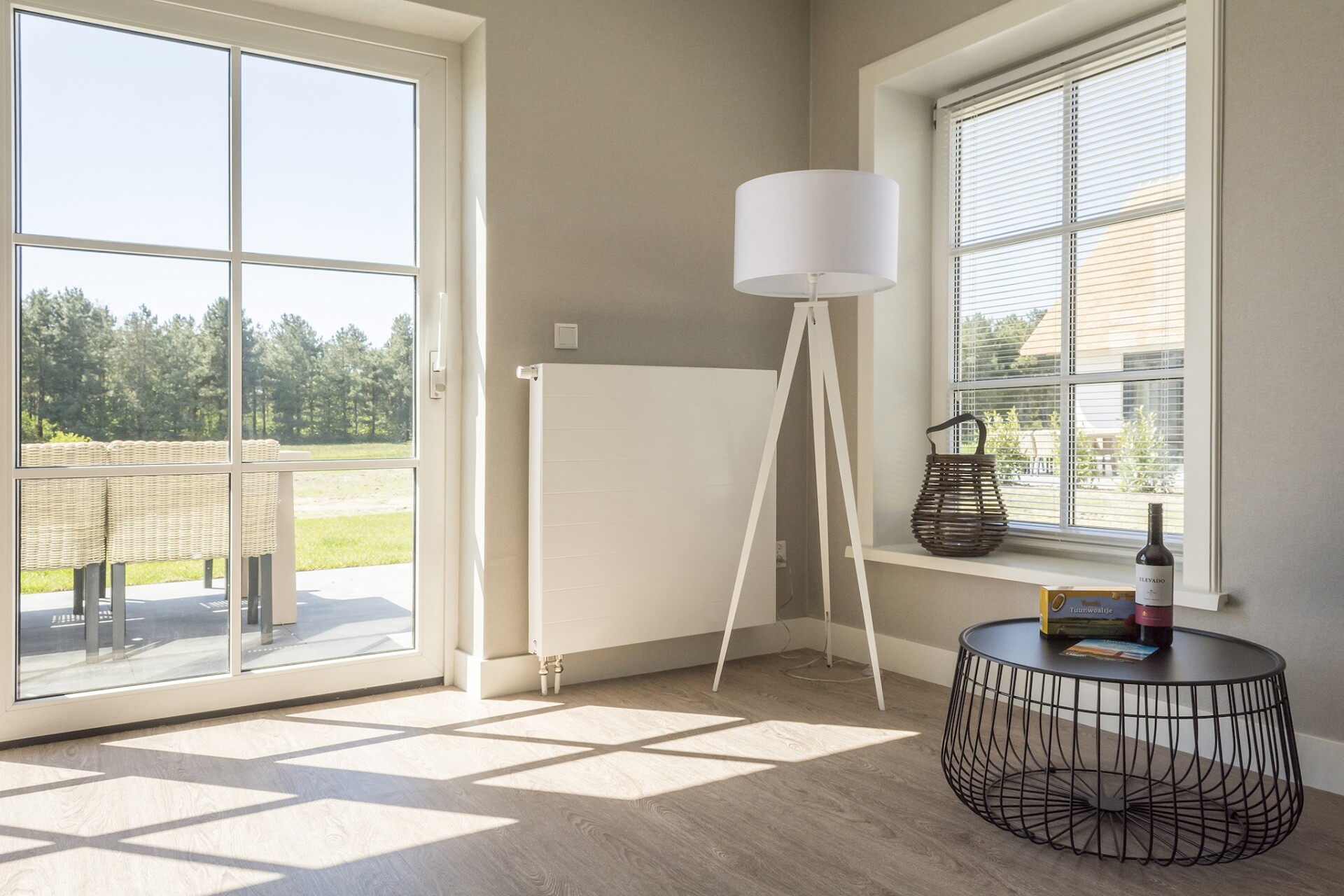 Op de begane grond is de ruime woon/eetkamer, open keuken, een slaapkamer met twee éénpersoonsbedden en een badkamer met douche en toilet. Op de eerste verdieping bevinden zich twee slaapkamers met elk twee eenpersoonsbedden. De badkamer is voorzien van een ligbad, douche, toilet en wastafel.