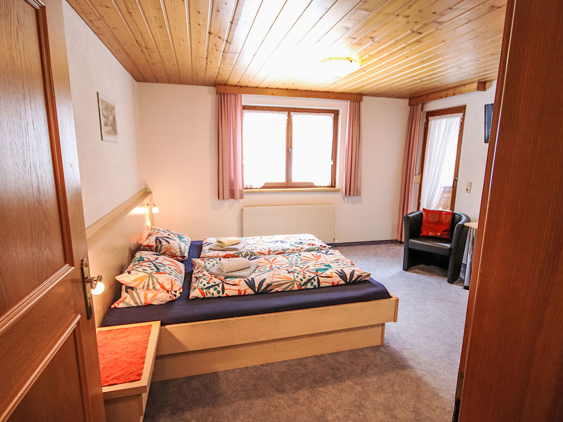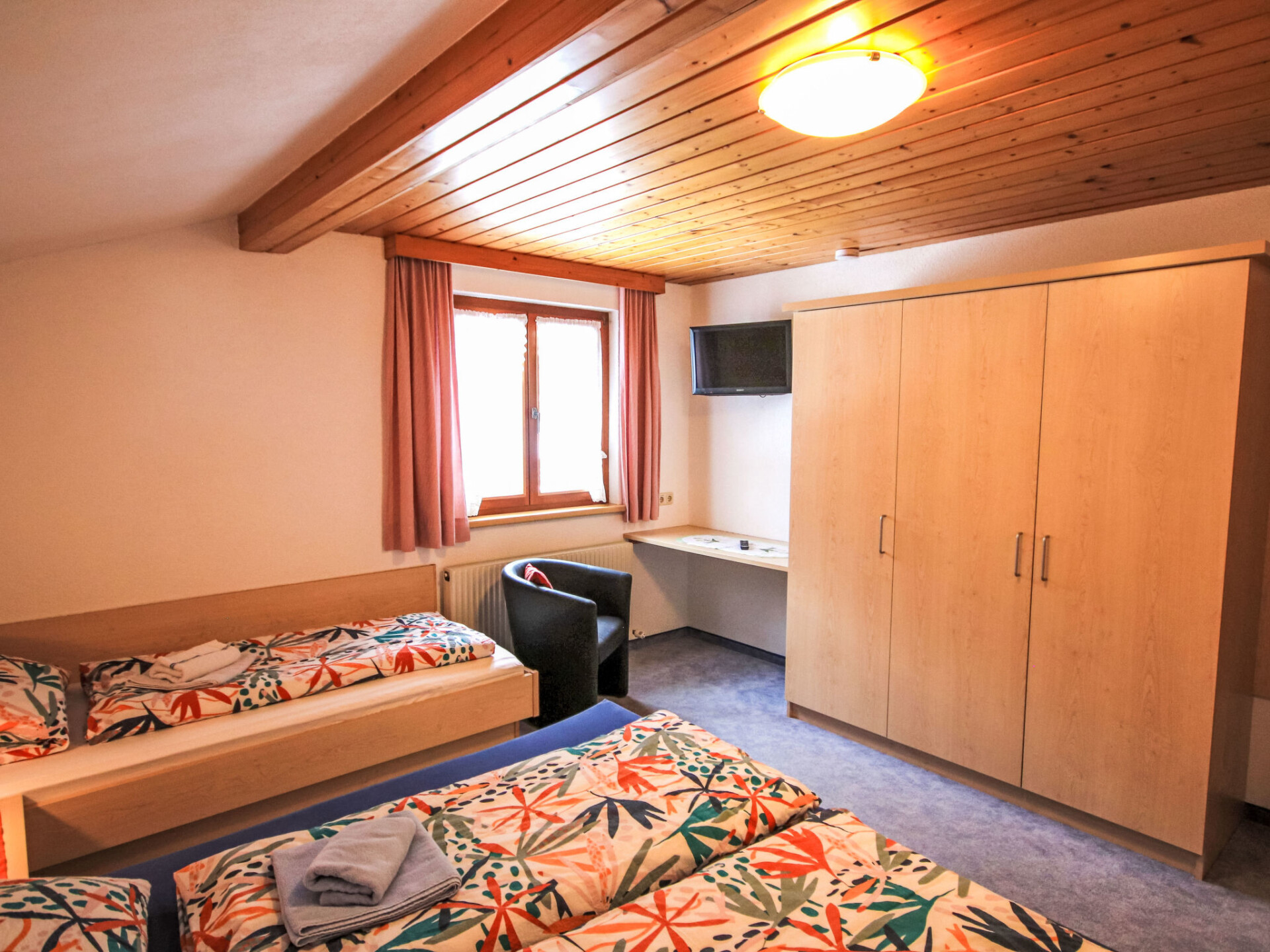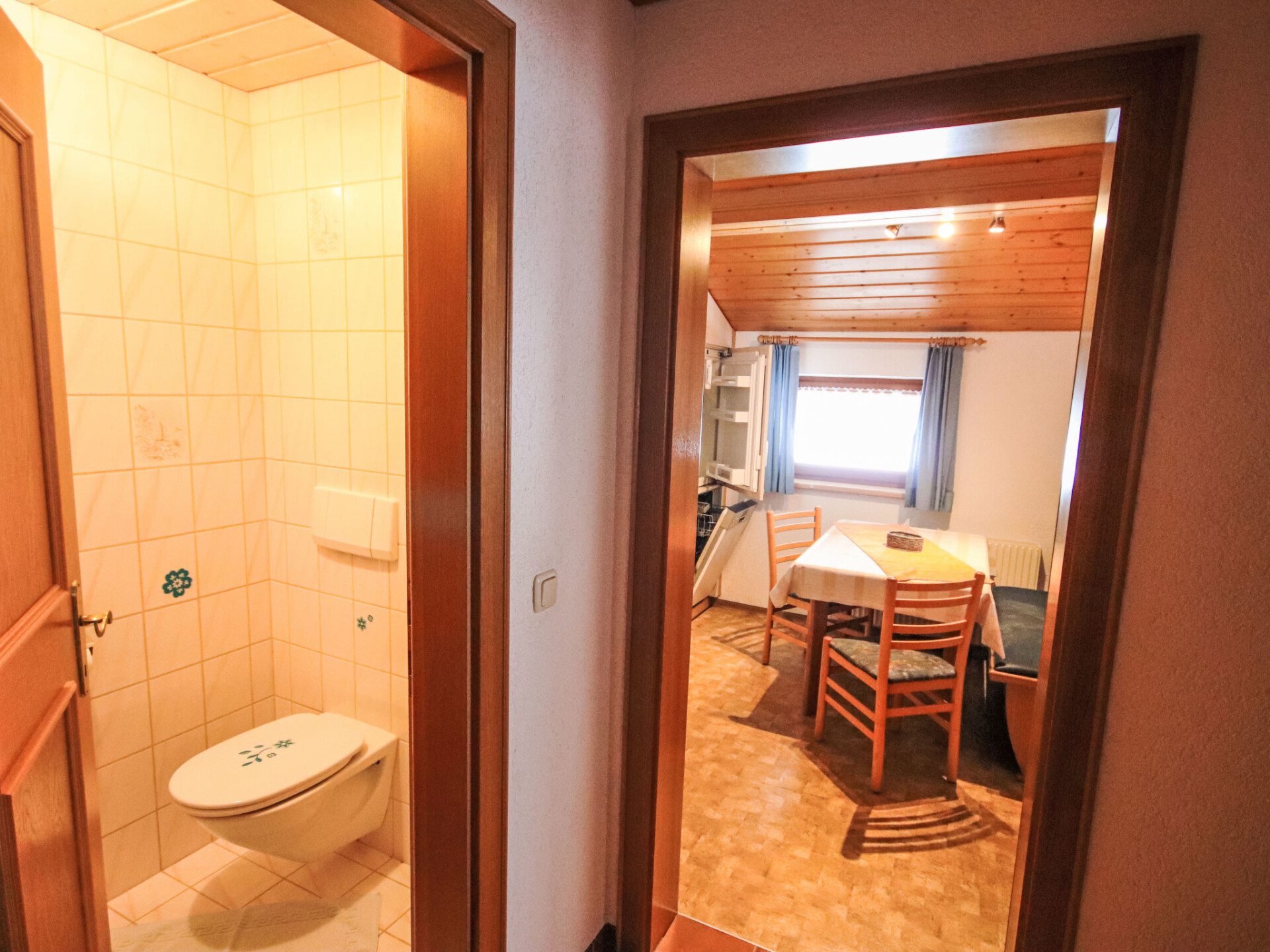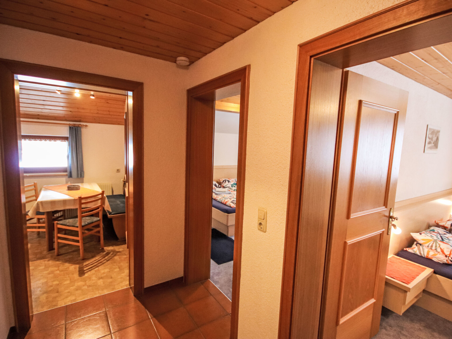 "Brandl", appartement 3-kamers 50 m2 op de 1e verdieping. Rustiek ingericht: 1 2-pers. kamer met wastafel en Sat-TV. Uitgang naar het balkon. 1 kamer met afgeschuinde daken met 1 bed, 1 2-pers bed, wastafel en Sat-TV. Kleine woonkeuken (oven, afwasmachine, 4 keramische glas kookplaten, waterkoker, magnetron, elektrische koffiemachine) met eettafel. Douche, aparte WC. Verwarming. Ter beschikking: kinderstoel, kinderbed. Internet (WiFi, extra). Niet rokers woning. Maximaal 1 huisdier/hond toegestaan.