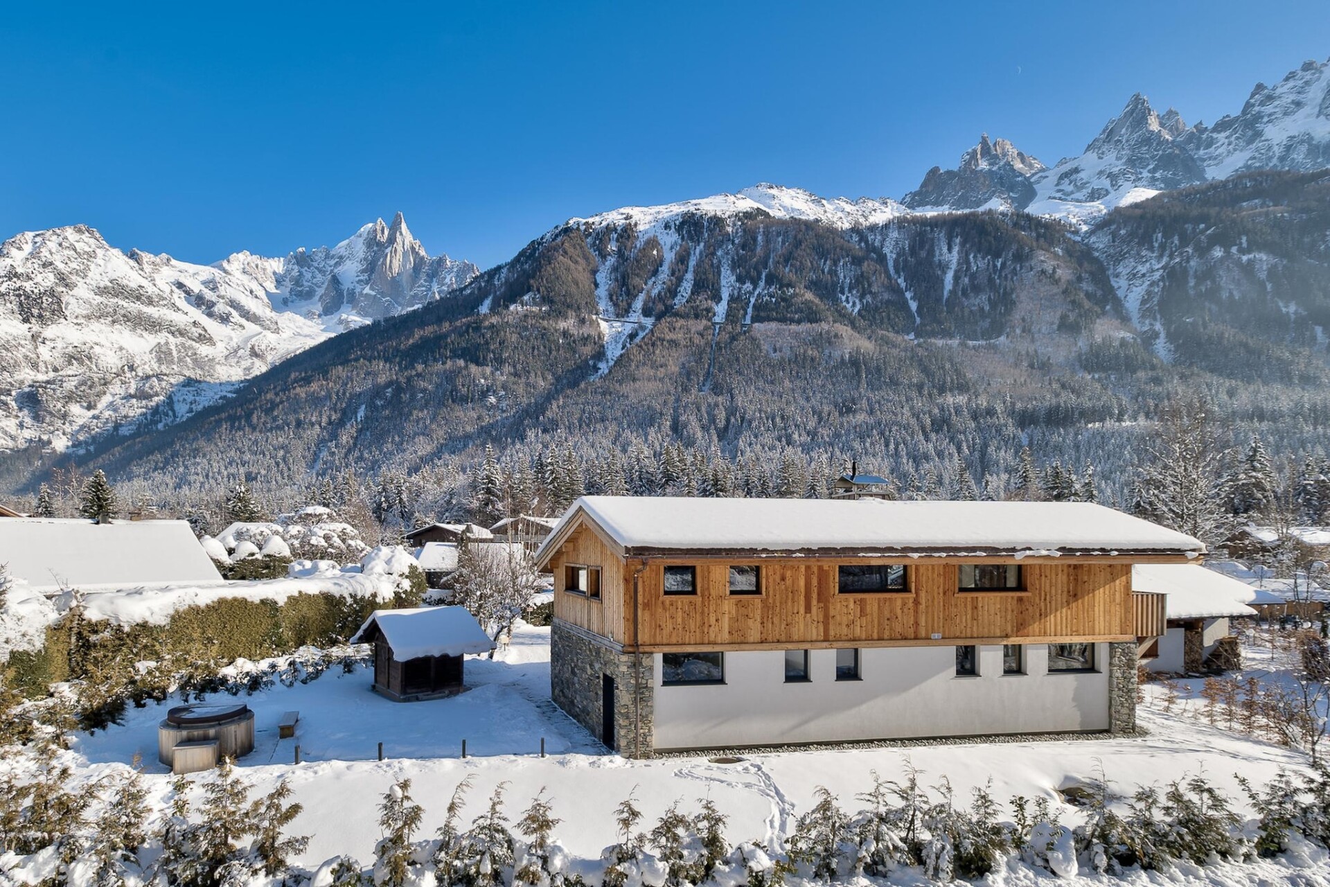 Chalet Breitalps is gebouwd in 2021 en is een prachtige mix van modern alpine design en tijdloos comfort. De open woonkamer baadt in natuurlijk licht en biedt een adembenemend uitzicht op de Mont Blanc door de grote ramen, waardoor een naadloze verbinding tussen binnen en buiten ontstaat. Het chalet ligt in de rustige wijk Les Rosières, tussen La Flégère en Le Brévent, op loopafstand van zowel het centrum van Chamonix als Les Praz.