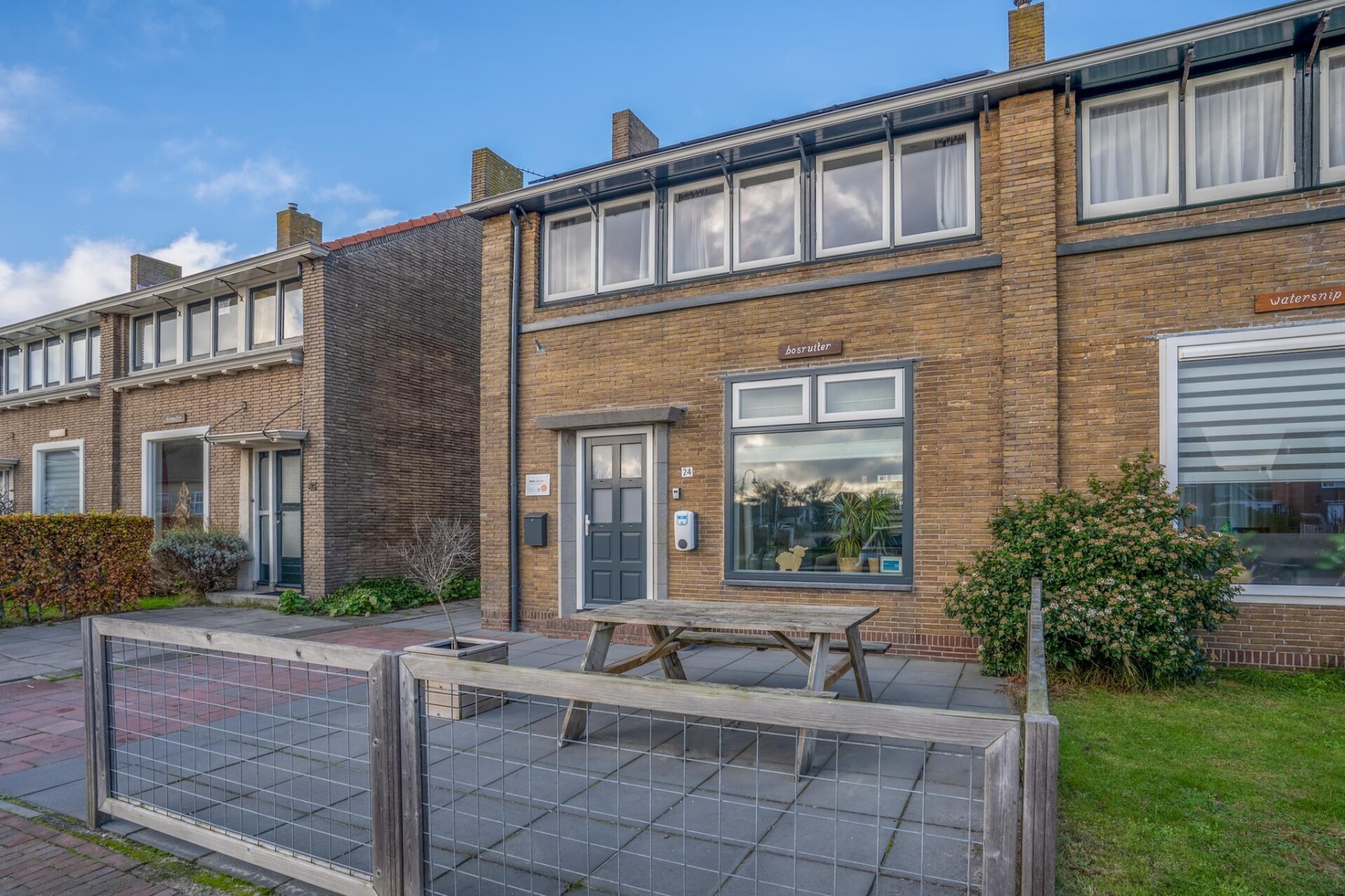 In de voortuin en achtertuin kan je beiden heerlijk vertoeven. De achtertuin is geheel omheind en is voorzien van tuinmeubilair, een parasol en een schuurtje waar je de fietsen in kan plaatsen.