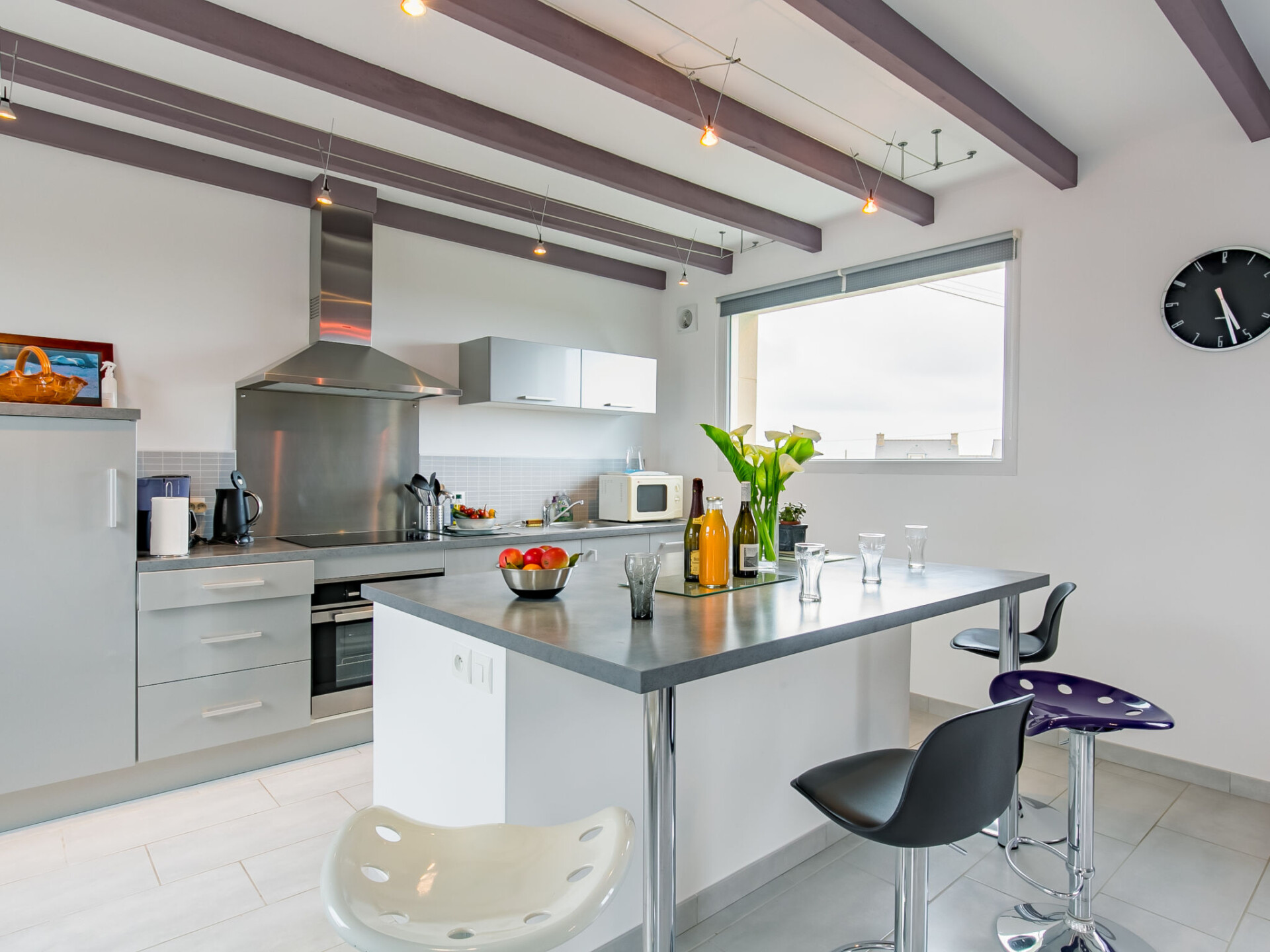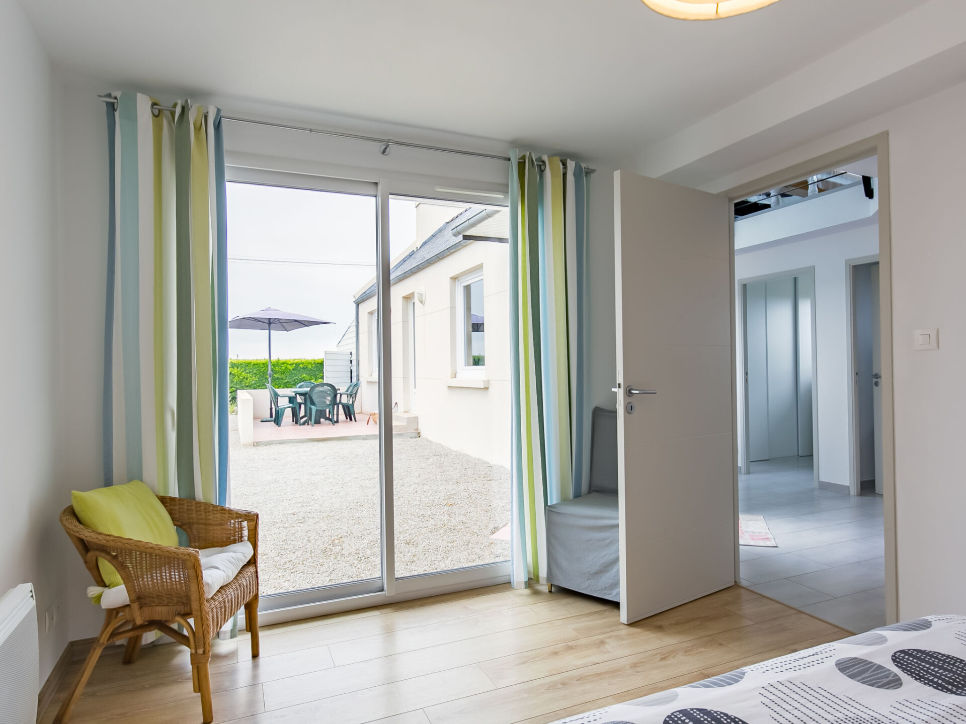 "Brise Marine", huis 4-kamers 110 m2 op 2 verdiepingen. Licht, mooi ingericht: eetkamer met open haard (alleen decoratie), eettafel. Uitgang naar de tuin, naar het terras. 1 kamer met 1 2-pers bed (160 cm, lengte 200 cm). Uitgang naar de tuin. Open keuken (oven, afwasmachine, 4 inductiekookplaten, broodrooster, waterkoker, magnetron, diepvriezer, elektrische koffiemachine) met eettafel. Douche, aparte WC. Elektrische verwarming. Bovenverdieping: woonkamer met afgeschuinde daken met Sat-TV (Flatscreen TV). 1 kamer met afgeschuinde daken met 1 2-pers bed (140 cm, lengte 190 cm). (steile trap), 1 kamer met afgeschuinde daken, hoogte van het plafond 190 cm met 2 bedden (90 cm, lengte 190 cm). Parketvloeren. Terras, op het zuiden gelegen. Terrasmeubelen, barbecue (verrijdbaar), ligstoelen (6). Uitzicht op zee. Ter beschikking: wasmachine, droger, strijkijzer, kinderstoel, kinderbed. Internet (Internet (WiFi), gratis). Rookvrij huis. Rookmelders. 29030 000051 DN