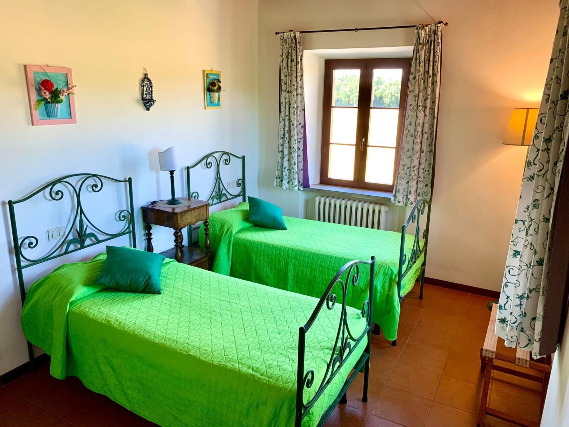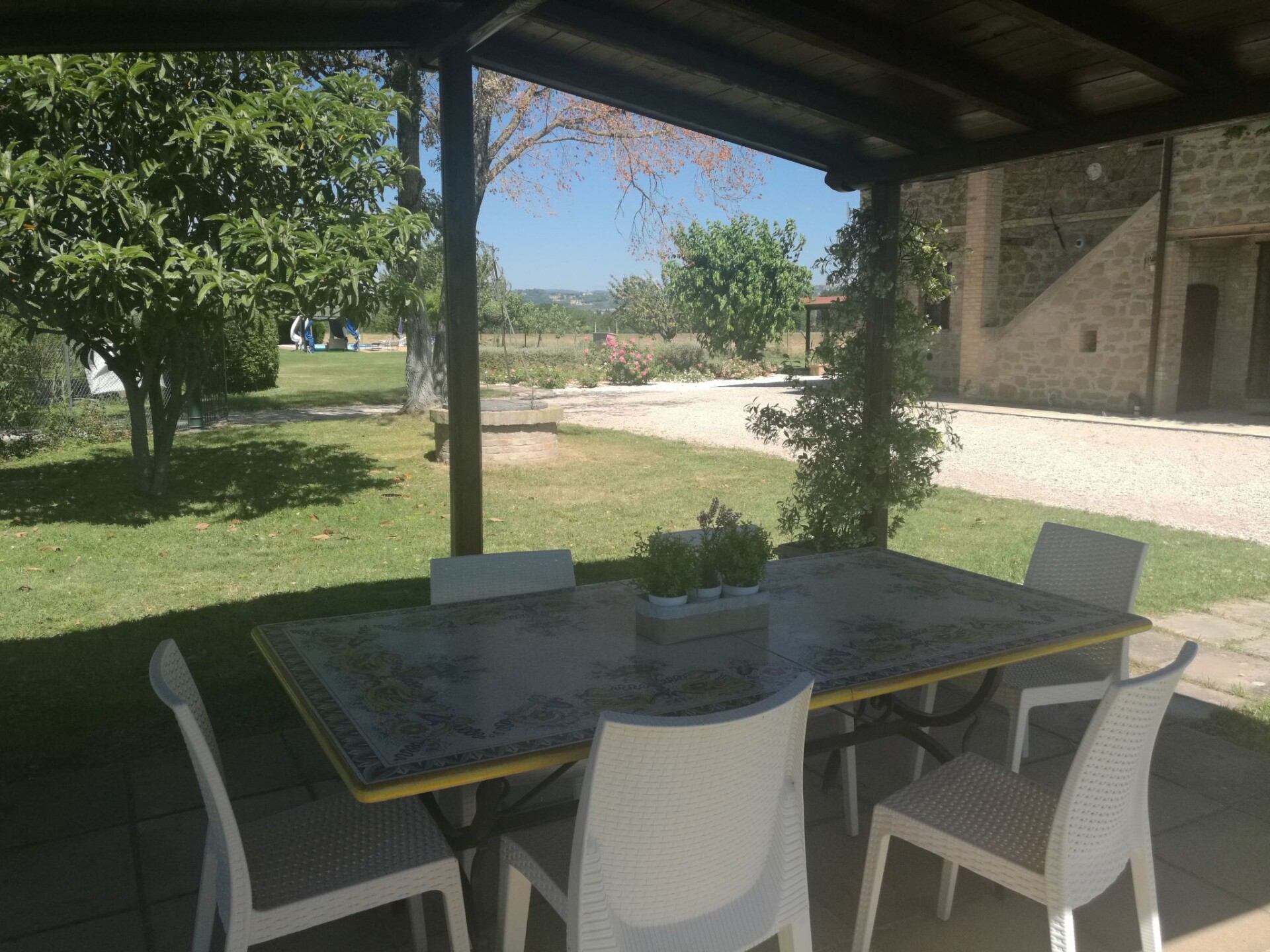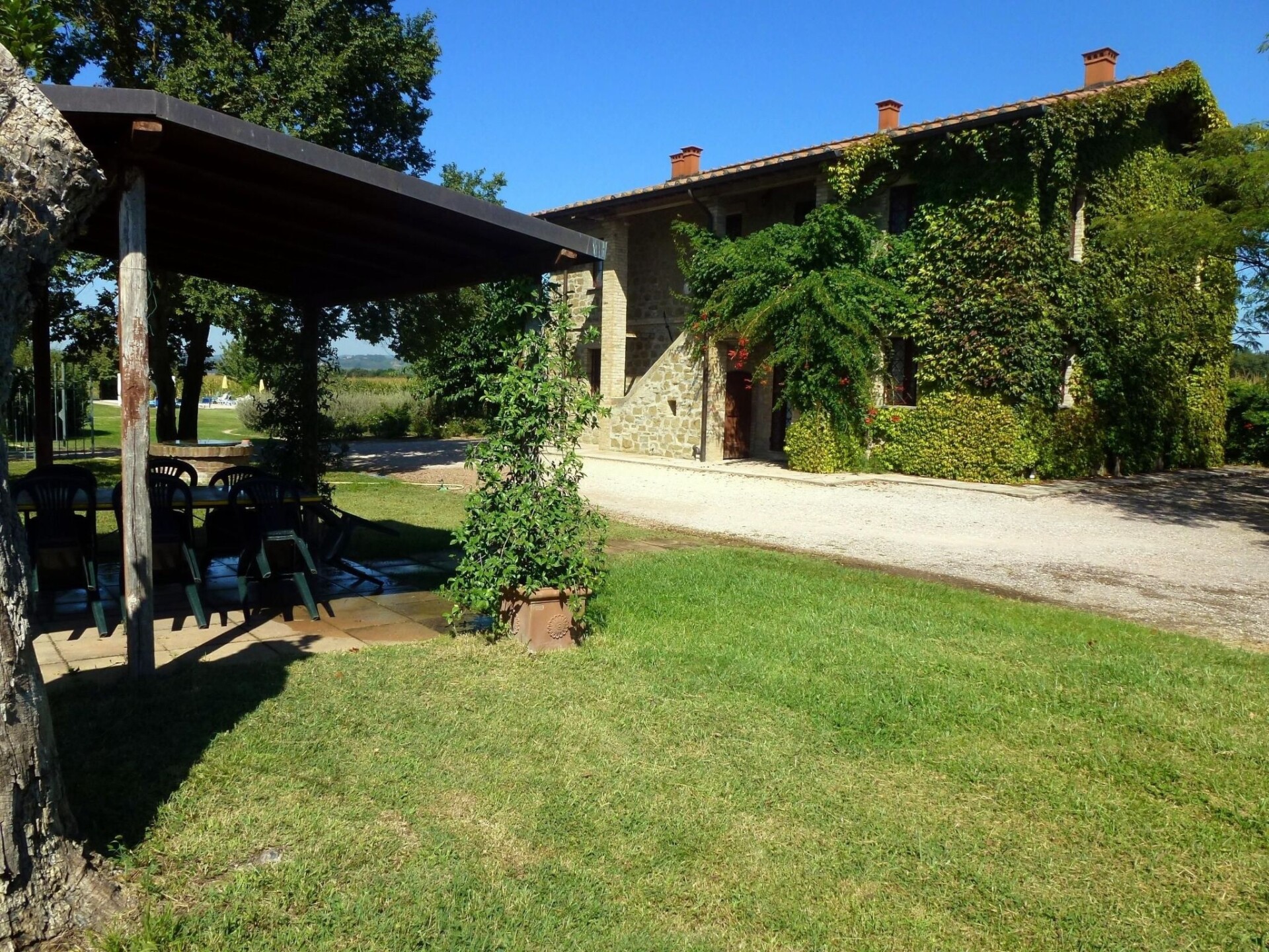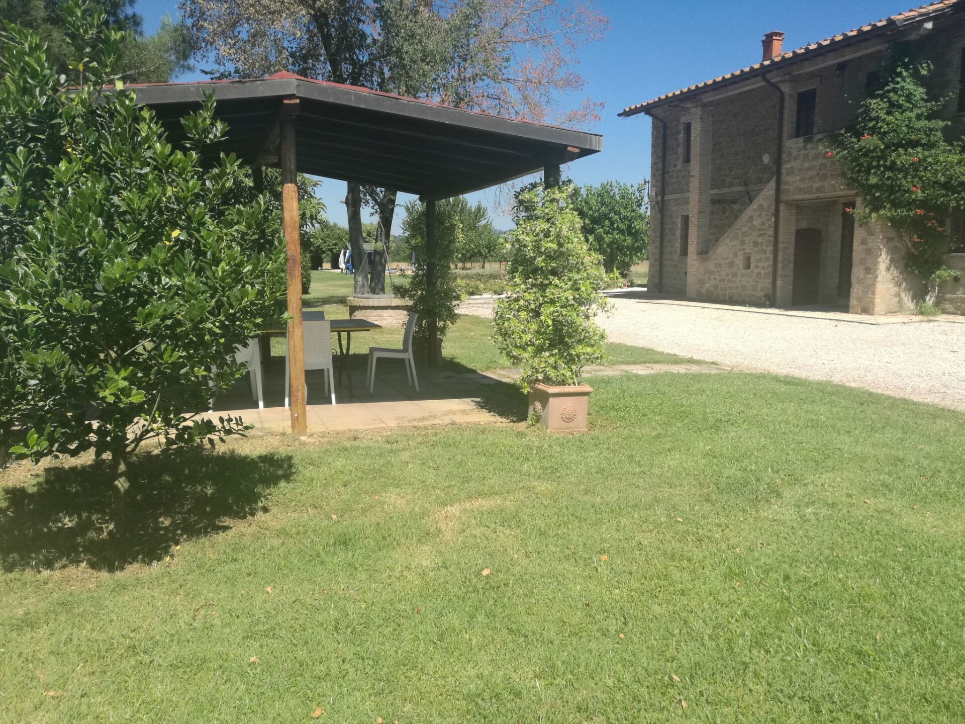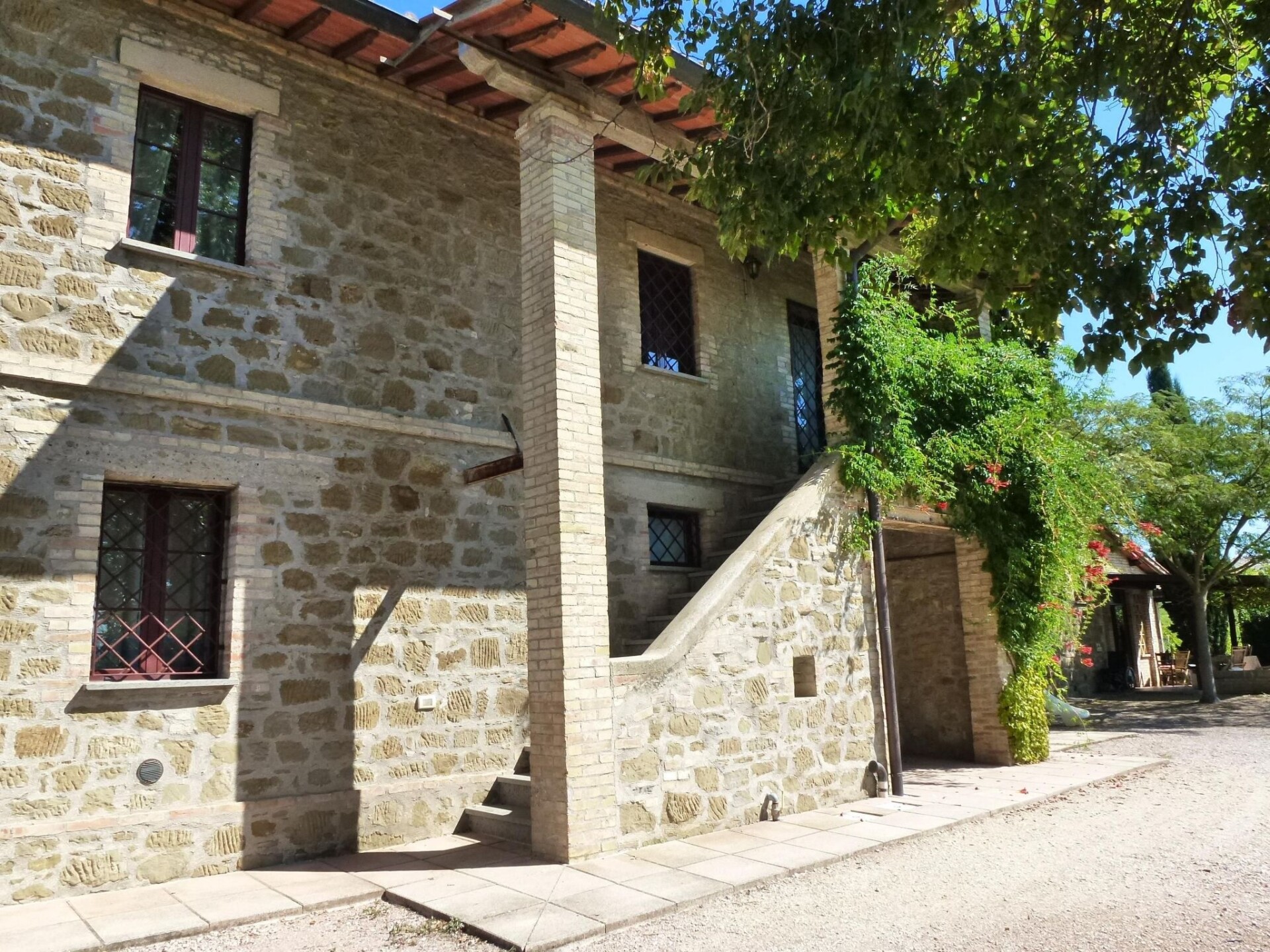 Maximaal 3 huisdieren/honden toegestaan. Discover the green heart of Umbria by staying at the Agriturismo I MORI GELSI, located less than a kilometre from Torgiano, one of Italy's most beautiful villages. Nestled in the rolling hills of vineyards that offer an enchanting view of the Fattoria Spinola vineyards and the distant towns of Perugia and Torgiano, our agriturismo is the perfect retreat for those seeking peace and tranquillity without sacrificing the convenience of connections to the region's major artistic and historical attractions.The farmhouse offers two spacious and comfortable flats of 140 sqm each, ideal for families or groups of friends. Skilfully restored, the main farmhouse dating back to 1900, together with its annexe, has on the ground floor a spacious dining/kitchen and sitting area, a bedroom with two beds, and a bathroom with shower. On the first floor there is a large and bright living room with a cast-iron stove and fireplace, a double room with a cot, a room with two beds, and a bathroom with bath and shower unit. Equipment such as an iron, a safe, a washing machine, and all the conveniences of a modern kitchen are at guests' disposal.Outside, each flat enjoys its own private space under a large, illuminated pergola, furnished with a hand-decorated Deruta table and chairs, perfect for relaxing and dining al fresco. A private brick barbecue and an outdoor shower complete the offer, surrounded by a large enclosed private garden with swimming pool, fruit trees and flowering plants, allowing guests to fully enjoy the serenity and beauty of the surroundings.This incredible agritourism is not just a place to stay, but an all-round experience in the Umbria region, with easy access to art cities such as Assisi, Perugia, Deruta, and many others. Thanks to its strategic location, guests have the opportunity to explore the local culture and traditions, go cycling or hiking, and discover the rich gastronomy of the area. And for those who want an even more authentic experience, the agriturismo is surrounded by a Fauna Venatorial Farm, offering the chance to spot wildlife such as pheasants and hares.Choose the Agriturismo I MORI GELSI for an unforgettable holiday in Umbria, where tradition, nature, comfort and hospitality come together to offer you a dream stay. With a warm welcome that includes a welcome basket filled with breakfast items and two bottles of excellent wine, your journey into the beauty and flavours of Umbria begins here. IT054053B501005985