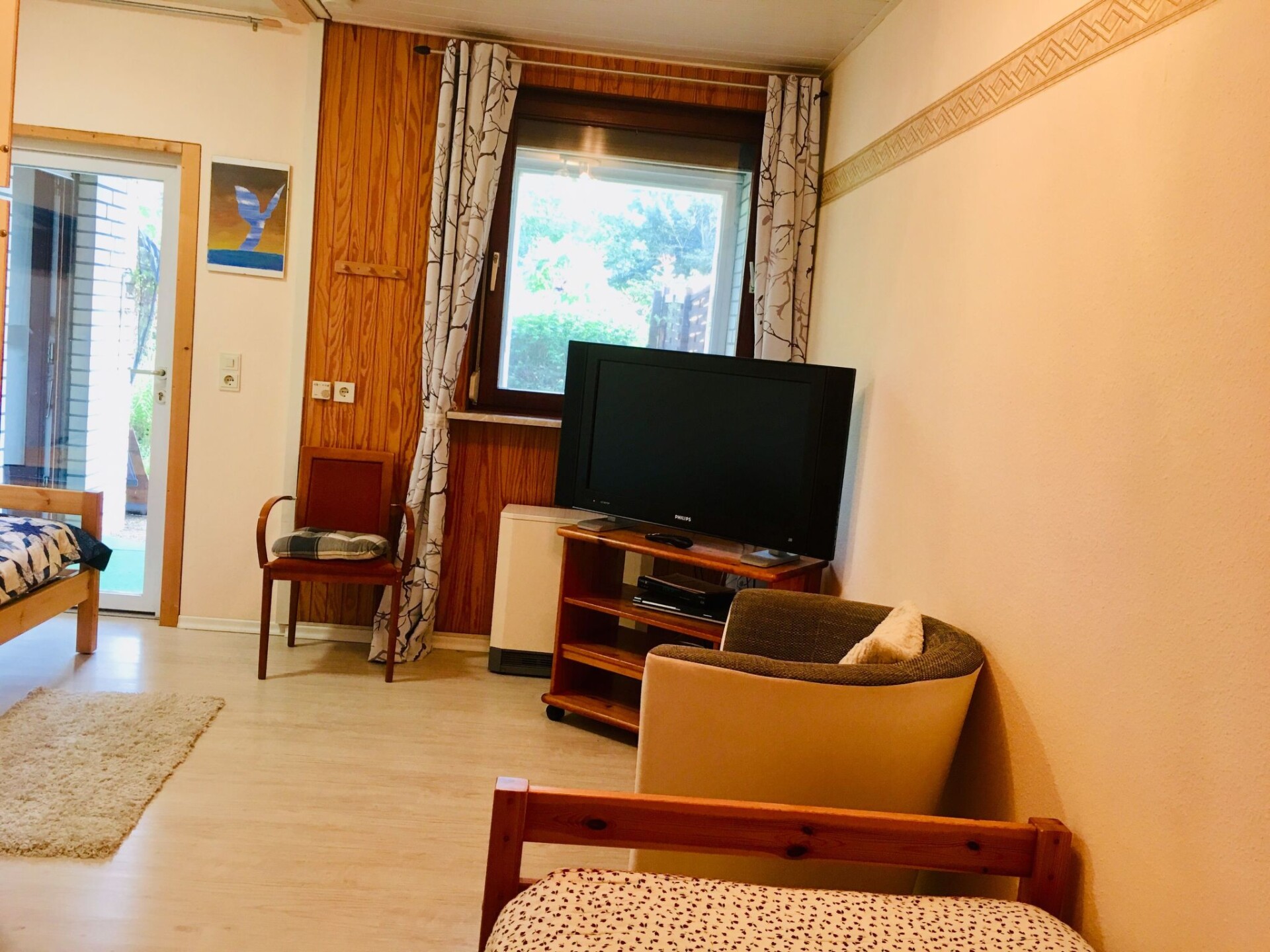 Maximaal 2 huisdieren/honden toegestaan. Experience unforgettable moments in the charming holiday bungalow, located in the peaceful and idyllic countryside between Hamburg and Cuxhaven, in the heart of Cuxland. This ground-floor holiday home with its wonderful garden in the North Sea region promises a carefree and relaxing stay thanks to its extensive facilities and the option of contactless travel. Ideal for up to 4 adults plus 2 children, this cosy temporary home offers everything a holidaymaker's heart desires. The house has 3 bedrooms, one with a double bed (180 x 200) and one bedroom with two single beds. The third bedroom is equipped with a bunk bed and an extra bed for children.Inside, the bungalow impresses with its loving and more than functional furnishings, which include the cosy 3 bedrooms, a spacious living room with a wood-burning stove for chilly days and a modern bathroom with a bath and shower option. The fully equipped fitted kitchen invites you to cook together - here you will find everything from a dishwasher and oven to a microwave. The large flat-screen TVs in the living room, children's room and bedroom promise relaxing evenings, while the internet connection and free phone calls to the German landline network ensure your connection to the outside world.The outdoor area impresses with a south-facing garden that invites you to linger and relax. A covered terrace and high-quality garden furniture provide the perfect setting to wind down in the evenings. A small decorative pond blends charmingly into the garden landscape. For barbecue lovers, a barbecue is available for a deposit, complemented by the convenience of being able to park right outside the front door.The idyllic village of Hechthausen with its quiet location away from mass tourism awaits you in the vicinity of the holiday home. Nestled between meadows and a small forest, in a traffic-calmed side street, the house offers the ideal starting point for nature lovers. The surrounding Oste landscape with its idyllic river course encourages discovery tours. For a day at the beach, we recommend a trip to Krautsand, while the varied marshland landscape, elongated Geest hills and unspoilt moorland invite you to take long walks and cycle tours. The North Sea resort of Otterndorf can be reached in around 35 minutes by car.Look forward to an unforgettable holiday in this lovingly furnished holiday bungalow, which leaves nothing to be desired. From the extensive interior to the idyllic garden and the unique location in the North Sea region - here you will find the perfect base for a relaxing family holiday or a break from everyday life. Discover the beauty of Cuxland and enjoy the privacy and comfort of our house - your home away from home.