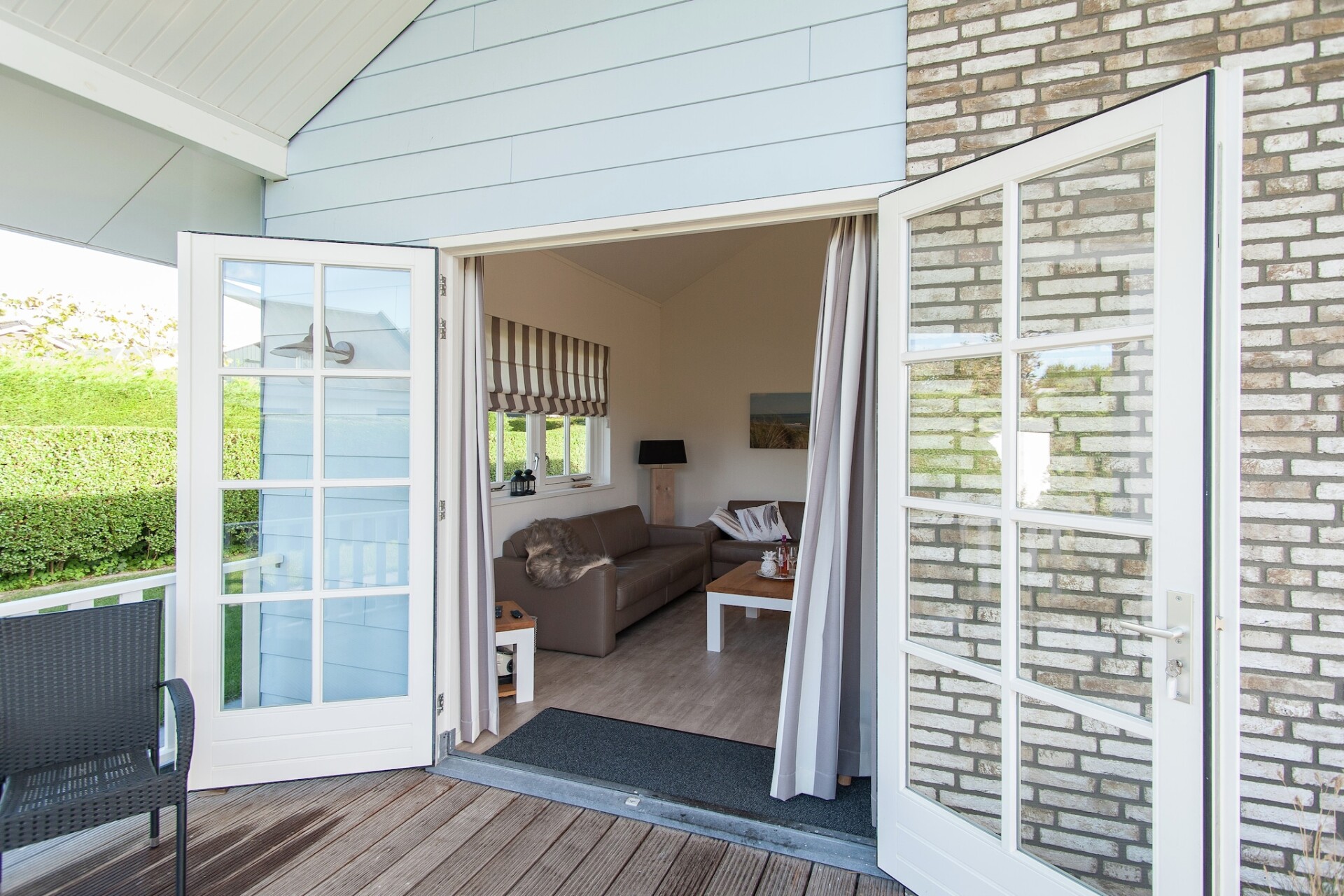 Buiten kunnen gasten genieten van een privétuin met tuinmeubilair en een veranda of serre – ideaal om te dineren of te ontspannen in de frisse lucht. Een wasmachine en droger zijn beschikbaar in de berging voor extra gemak. Of u nu op zoek bent naar een rustig uitje of een strandavontuur met het hele gezin: dit vakantiehuis biedt alles wat u nodig heeft voor een onvergetelijk verblijf.