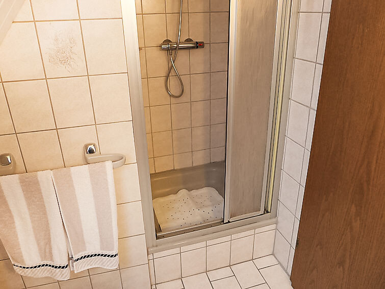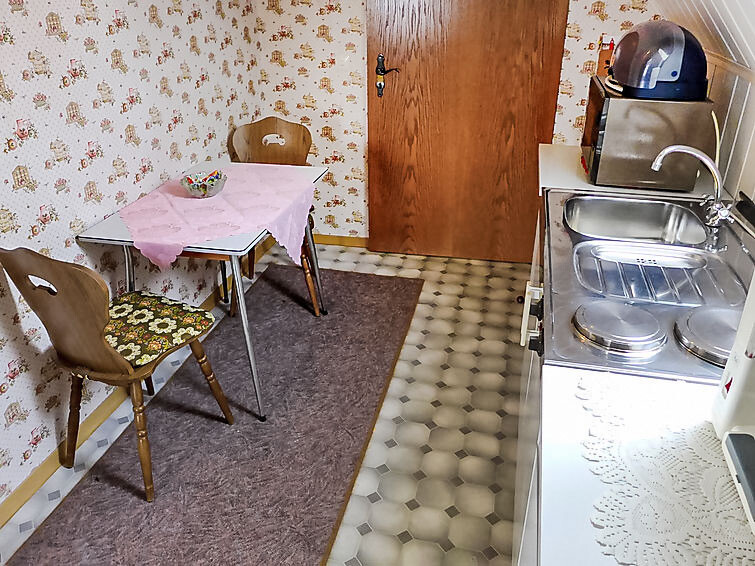 Appartement 2-kamers 30 m2, op de bovenverdieping. Gedeeltelijk afgeschuinde daken: woonkamer 6 m2 met Sat-TV (Flatscreen TV). 1 kamer 12 m2 met 1 2-pers bed (2 x 100 cm, lengte 200 cm). Kleine keuken (2-pits kookplaat, magnetron, elektrische koffiemachine) met eettafel. Douche/WC. Terras. Terrasmeubelen, ligstoelen (2). Ter beschikking: Internet (Internet (WiFi), gratis). Garage bij het huis. Niet rokers woning. Maximaal 1 klein huisdier/hond toegestaan. Rookmelders.