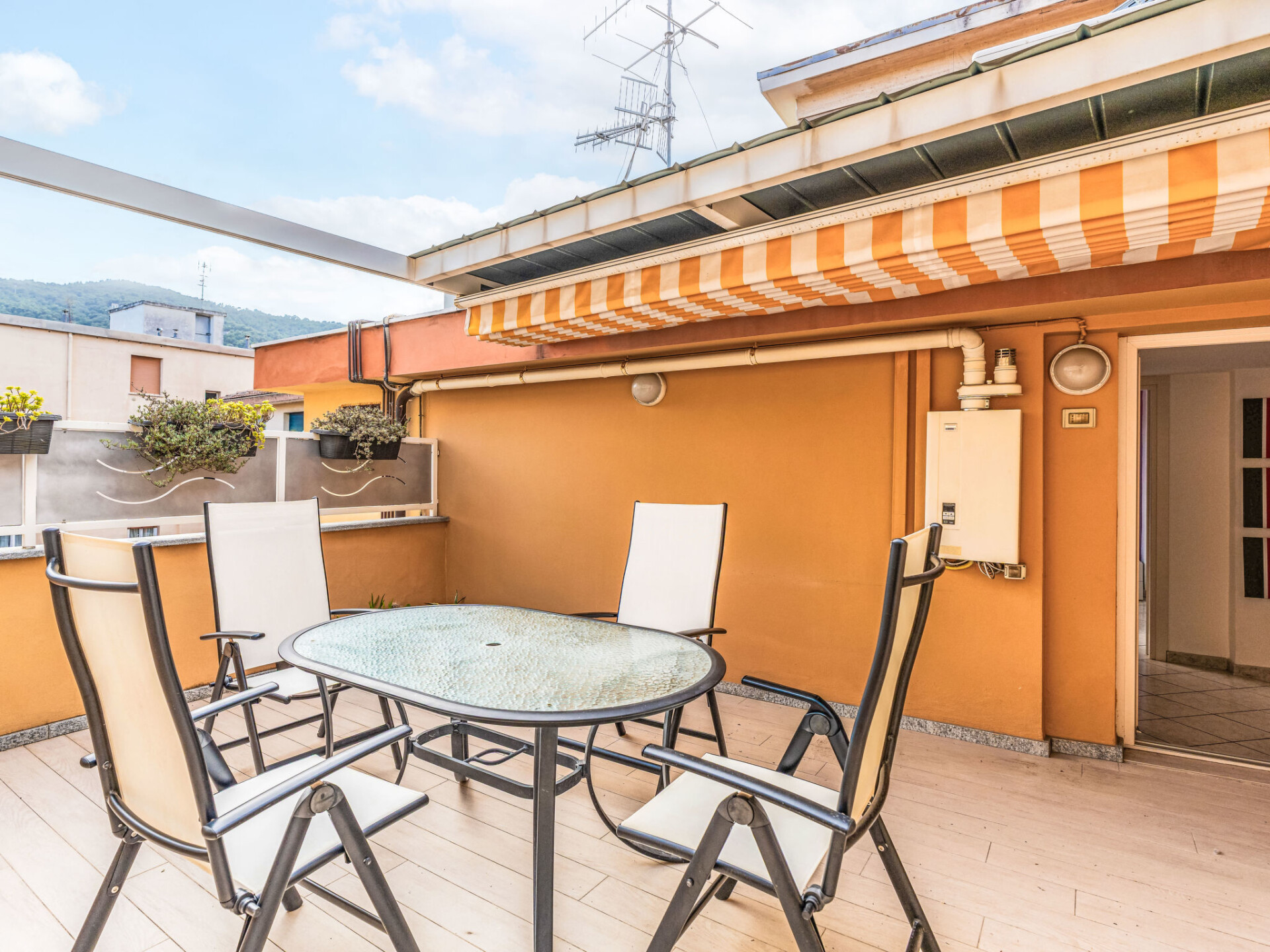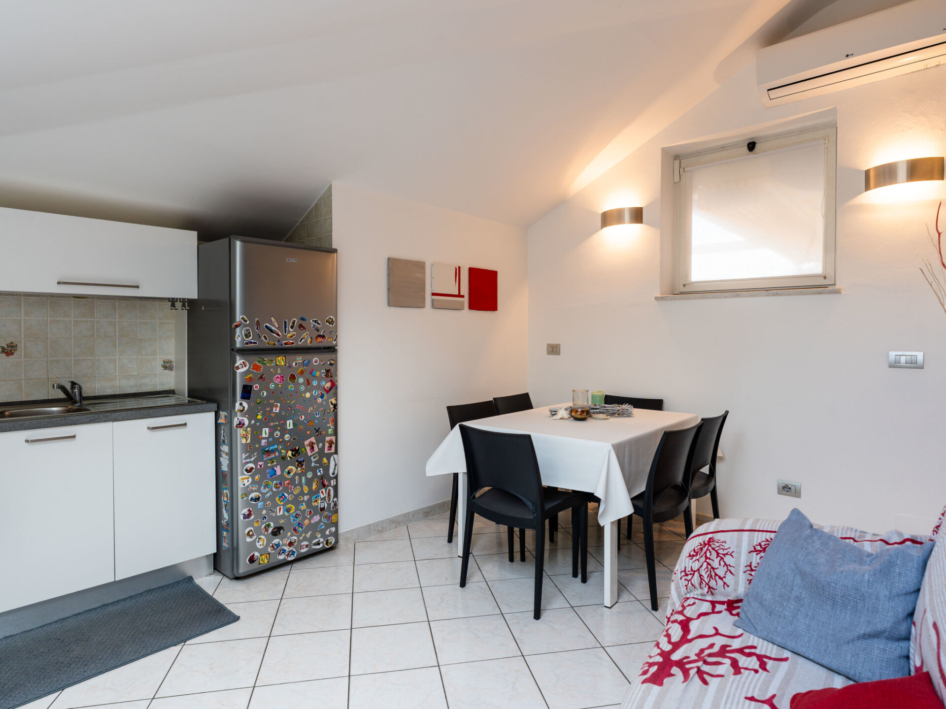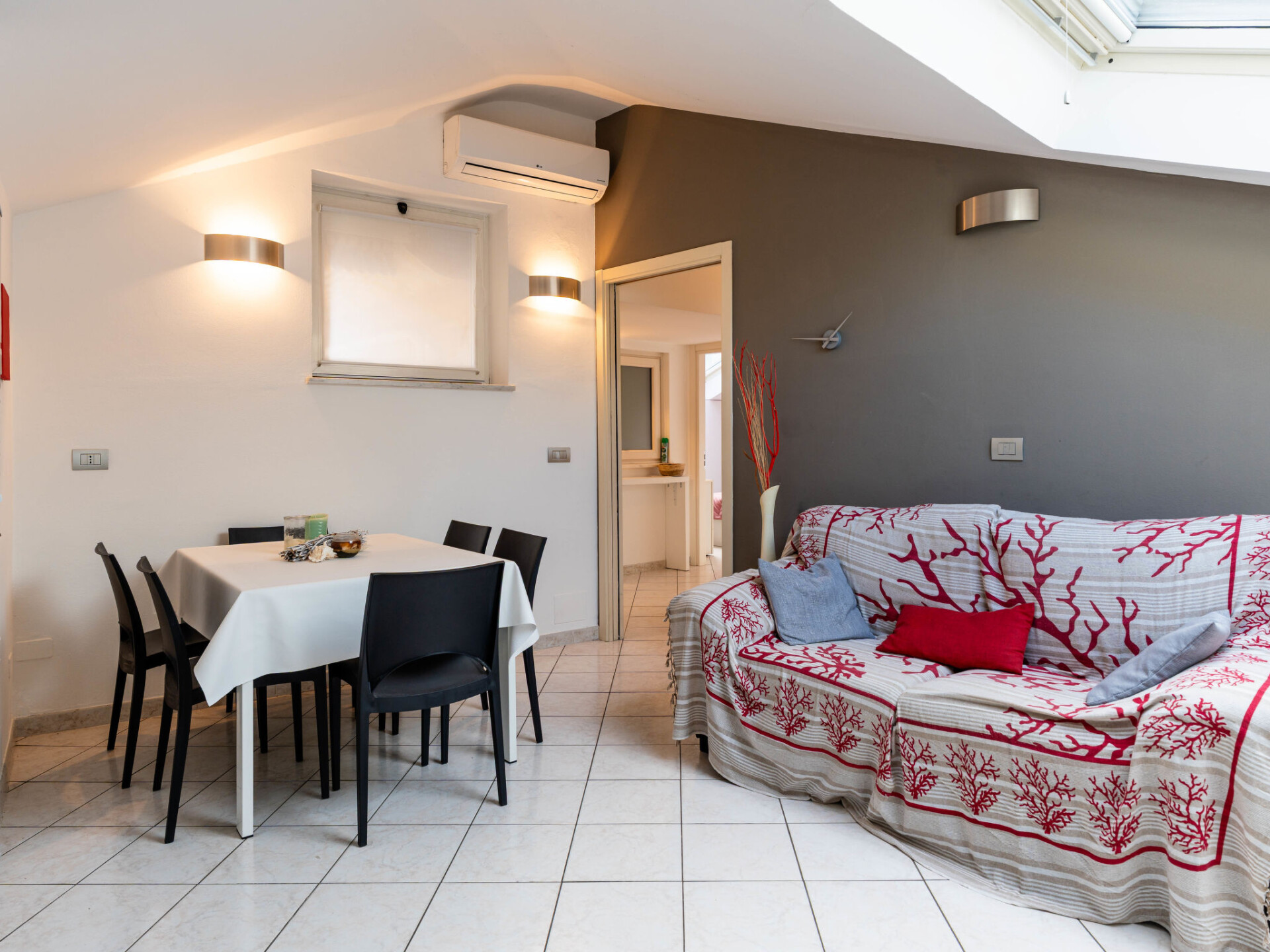 "By Center and Sea", penthouse 3-kamers 80 m2 op de 3e verdieping. Afgeschuinde daken, comfortabel en smaakvol ingericht: woon-/eetkamer (120 cm, lengte 200 cm). 1 2-pers. kamer met dakraam. 1 2-pers. kamer met dakraam. Kookhoek (oven, 4 kookpitten (vlammen), broodrooster, waterkoker, magnetron, elektrische koffiemachine). Bad/bidet/WC, douche/bidet/WC. Air-conditioning, heteluchtverwarming. Verwarming alleen beschikbaar van 01.11. tot 15.04. Groot terras. Terrasmeubelen. Uitzicht op de plaats. Ter beschikking: wasmachine, strijkijzer, kinderstoel, kinderbed tot 2 jaar, haardroger. Internet (WiFi, gratis). Parkeerplaats (extra, omheind, 1 Auto) op 450 m. Rookvrij huis. Rookmelders, brandblusser. IT009001B43A3O4WMG