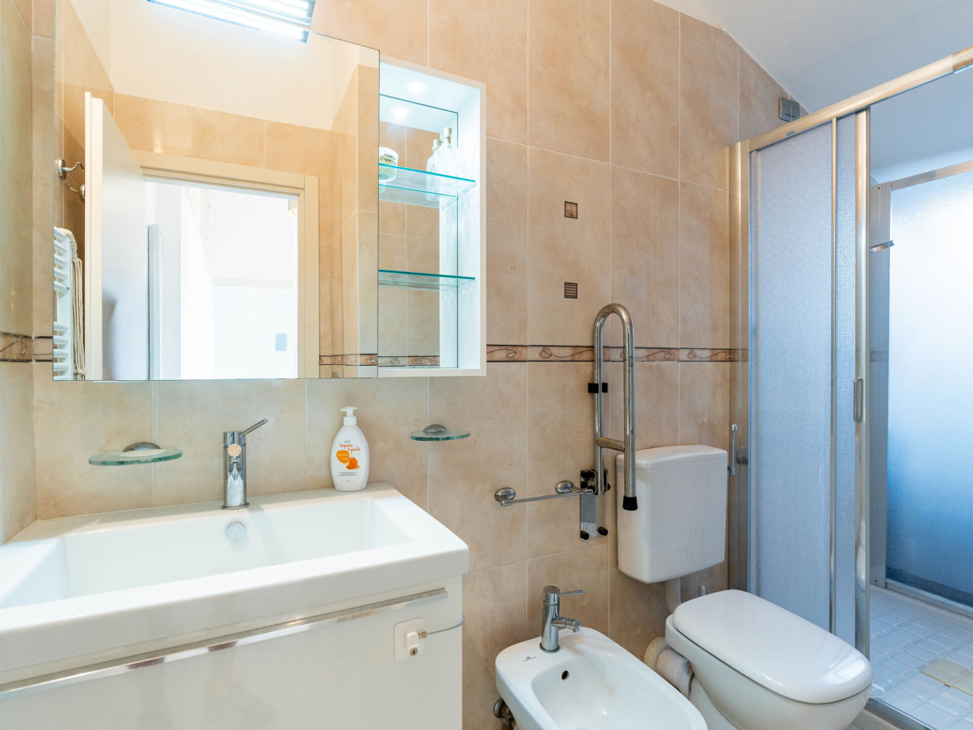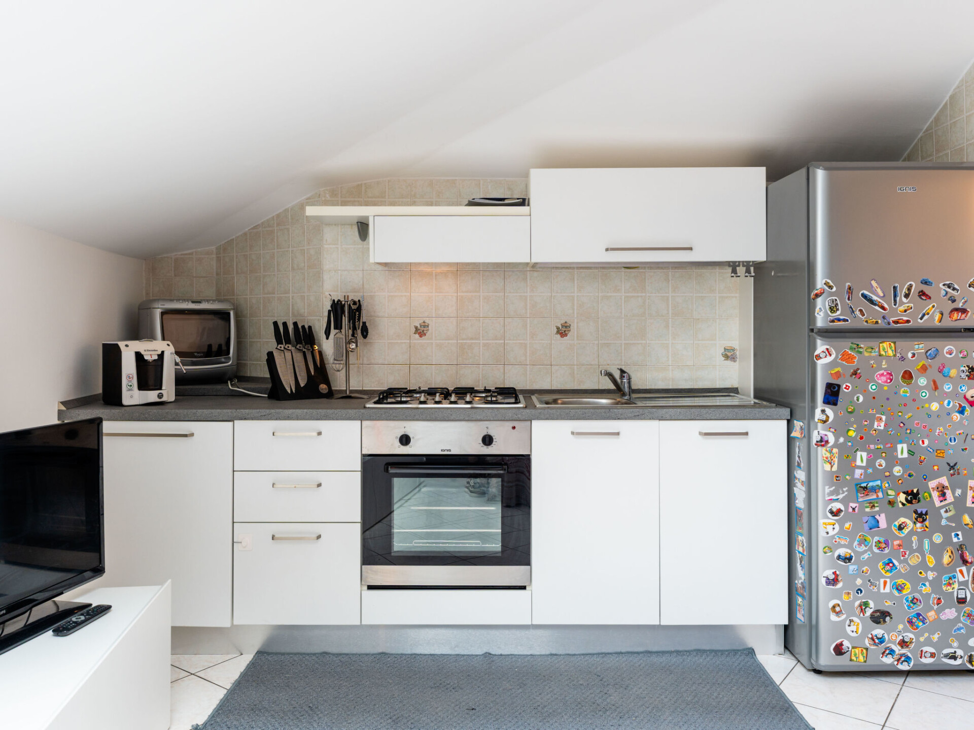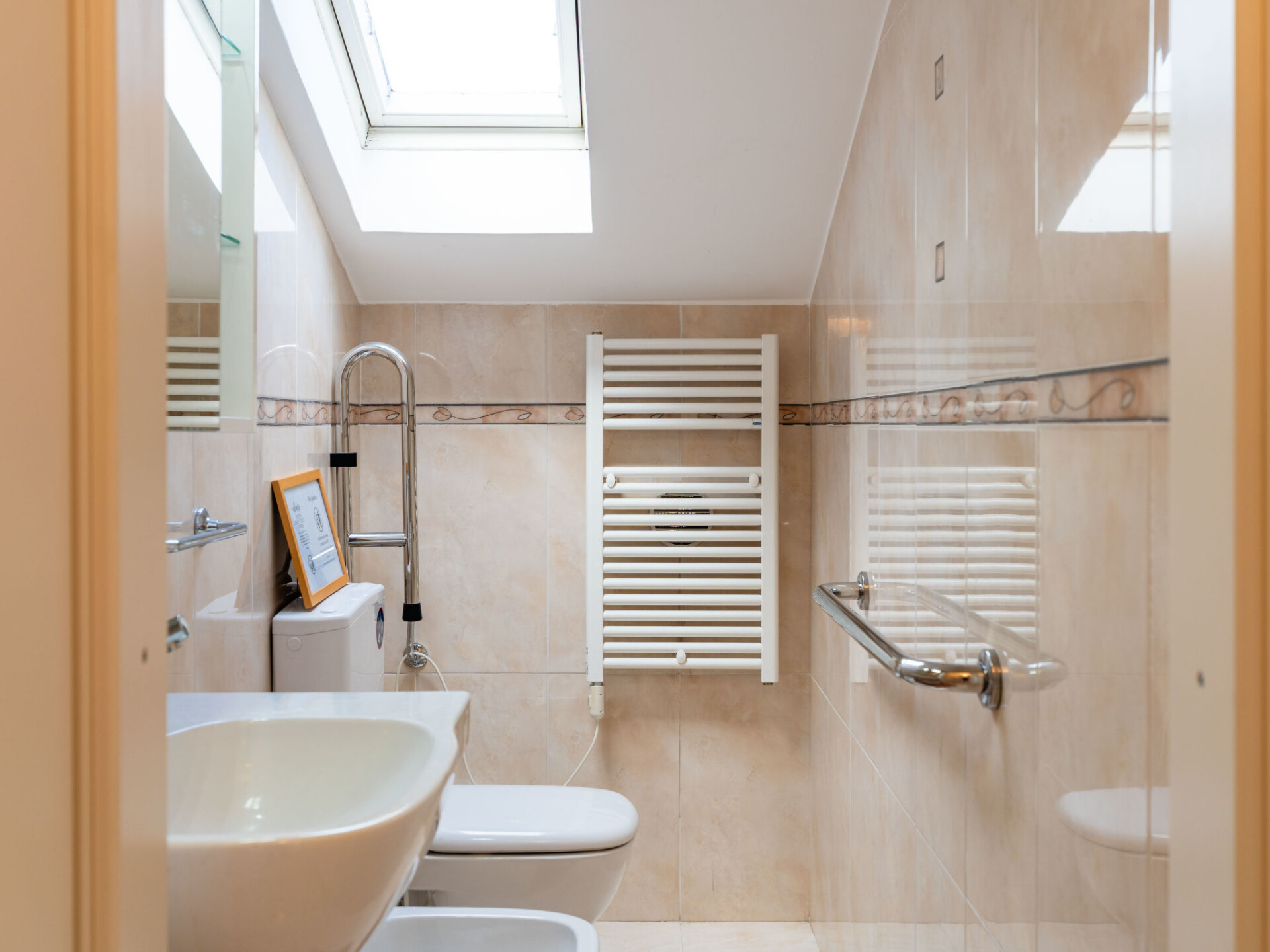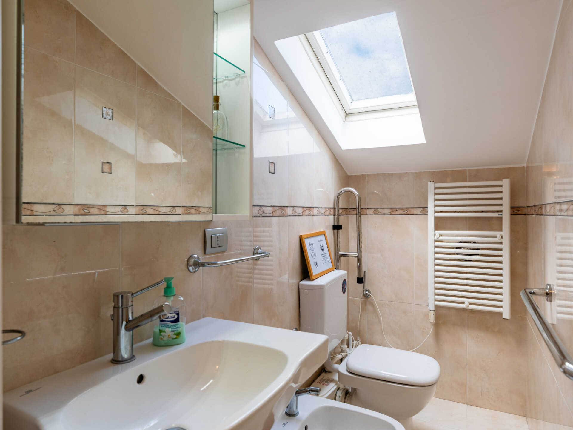 "By Center and Sea", penthouse 3-kamers 80 m2 op de 3e verdieping. Afgeschuinde daken, comfortabel en smaakvol ingericht: woon-/eetkamer (120 cm, lengte 200 cm). 1 2-pers. kamer met dakraam. 1 2-pers. kamer met dakraam. Kookhoek (oven, 4 kookpitten (vlammen), broodrooster, waterkoker, magnetron, elektrische koffiemachine). Bad/bidet/WC, douche/bidet/WC. Air-conditioning, heteluchtverwarming. Verwarming alleen beschikbaar van 01.11. tot 15.04. Groot terras. Terrasmeubelen. Uitzicht op de plaats. Ter beschikking: wasmachine, strijkijzer, kinderstoel, kinderbed tot 2 jaar, haardroger. Internet (WiFi, gratis). Parkeerplaats (extra, omheind, 1 Auto) op 450 m. Rookvrij huis. Rookmelders, brandblusser. IT009001B43A3O4WMG