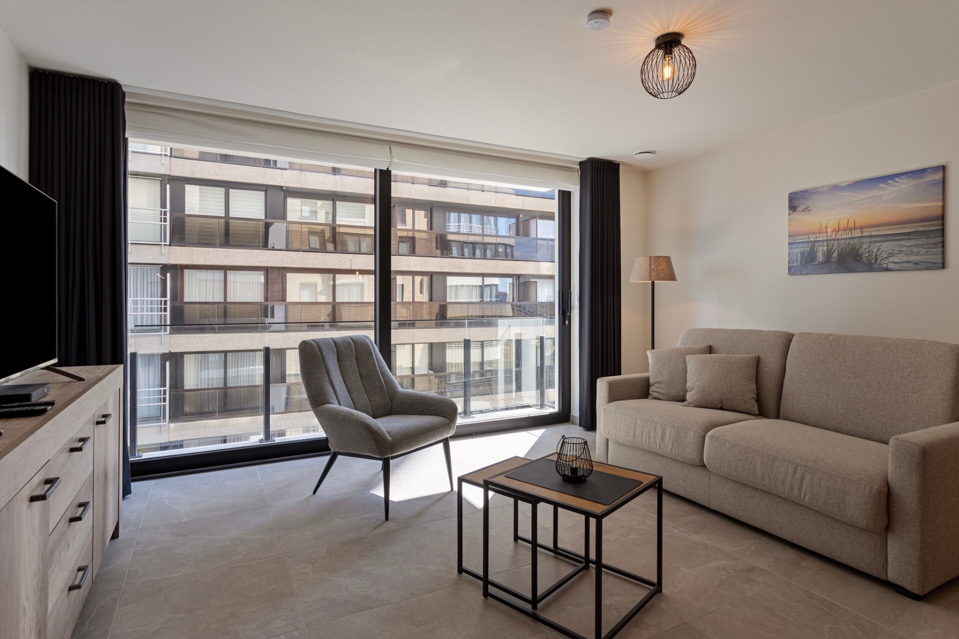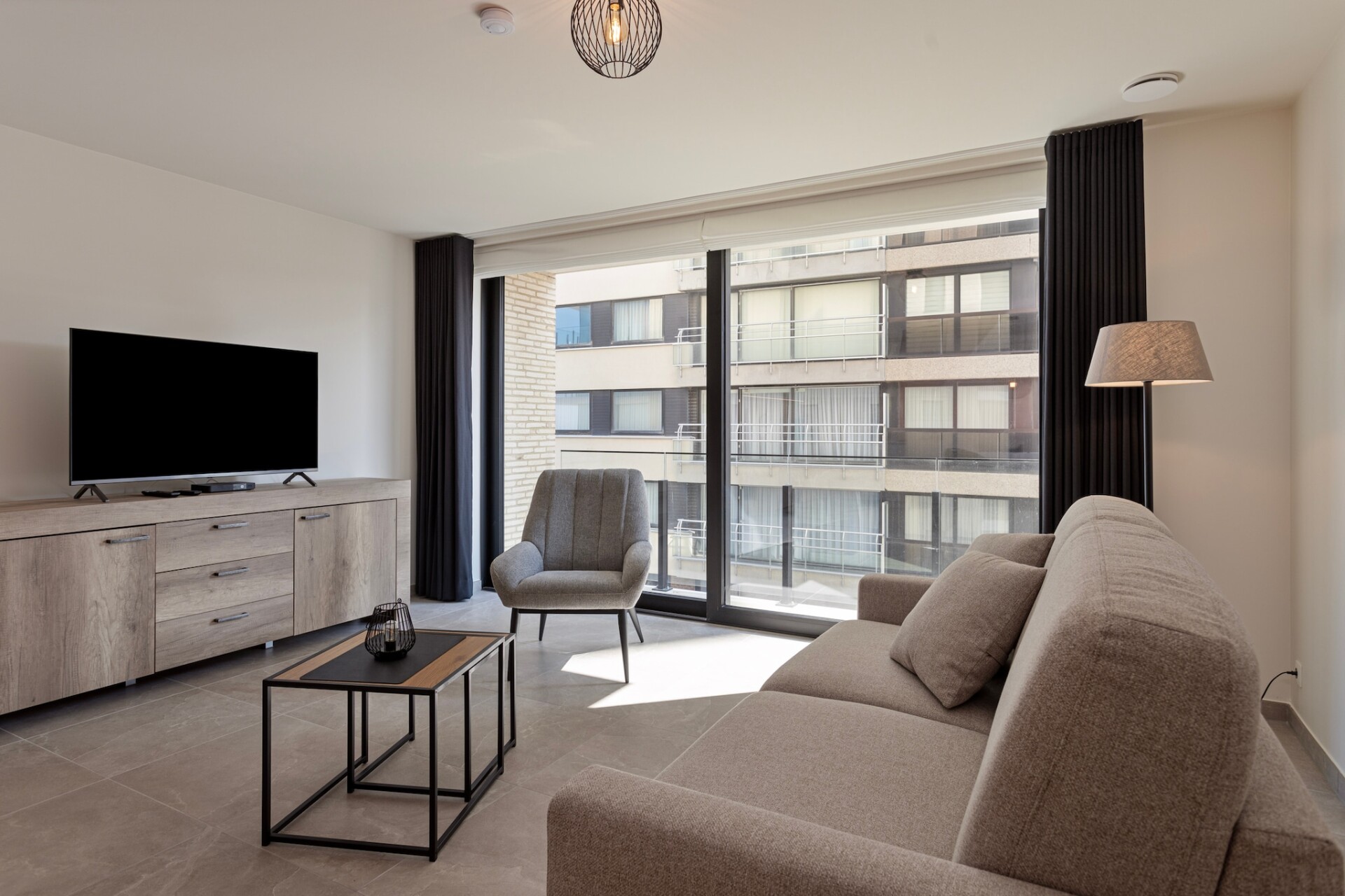 Dit appartement op de begane grond biedt plaats aan vier gasten en biedt een gezellige en functionele ruimte. De woonkamer beschikt over een een- en tweezitsbank, een smart-tv met digitale Telenet-kanalen en een eettafel met vier stoelen. Een slaapbank biedt extra slaapruimte voor twee gasten. Een balkon aan de voorzijde met terrasstoelen biedt een ontspannende buitenruimte. Het appartement heeft individuele gasverwarming en hoewel roken verboden is, is er wifi beschikbaar. Huisdieren zijn niet toegestaan.