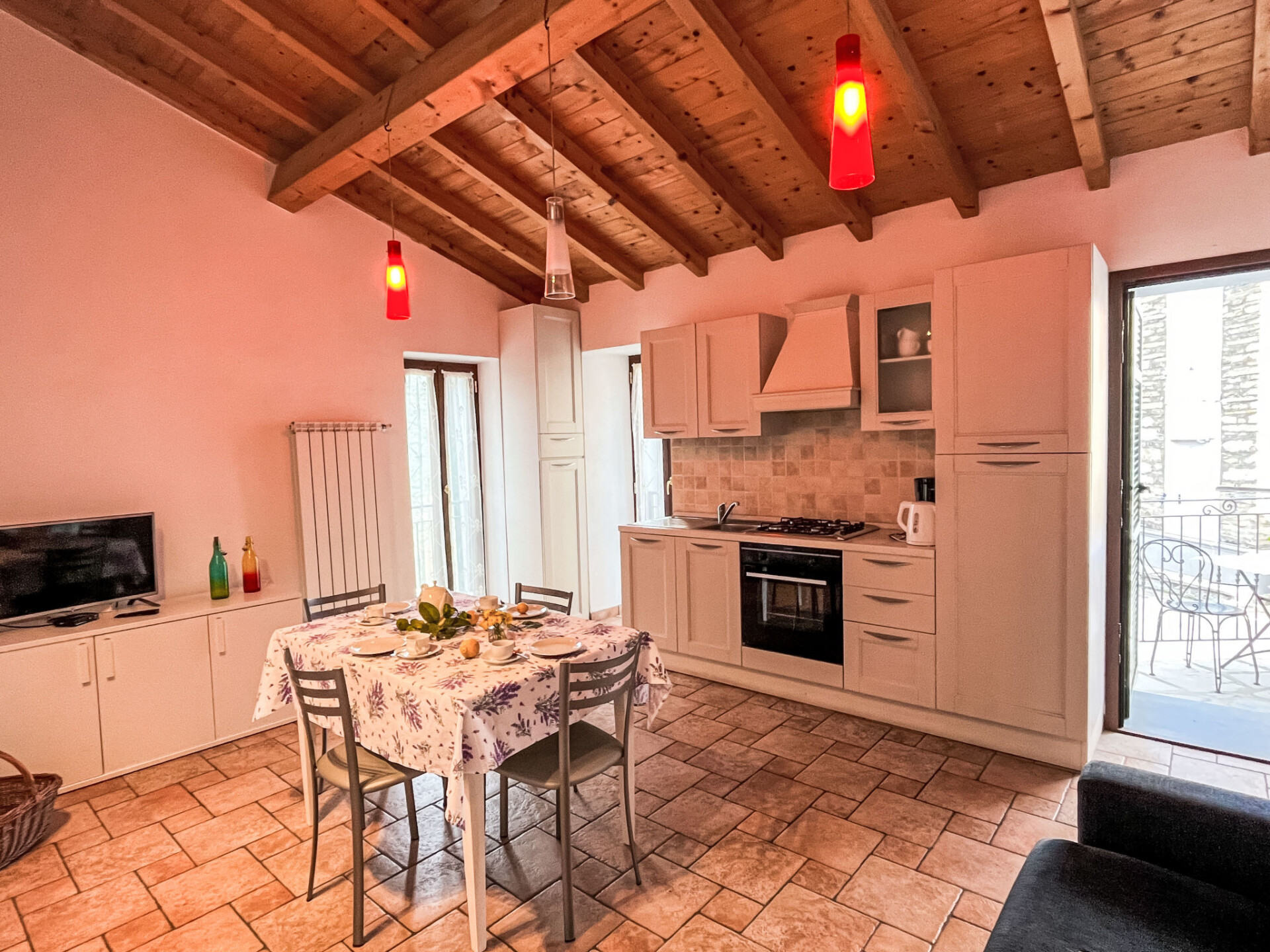 "Ca' da Ciassa (VLO130)", huis 2-kamers 45 m2. Stijlvol en gezellig ingericht: woon-/slaapkamer met 1 2-pers divanbed (125 cm), eettafel en Sat-TV. Uitgang naar het balkon. 1 kamer met 1 2-pers bed (160 cm), douche/WC. Open keuken (oven, 4 kookpitten (vlammen), broodrooster, waterkoker, diepvriezer, elektrische koffiemachine). Gas-verwarming. Verwarming alleen beschikbaar van 05.10. tot 02.05. Natuurstenen vloeren. Klein balkon. Balkonmeubilair. Mooi uitzicht op de plaats. Ter beschikking: wasmachine, kinderbed. Internet (WiFi, gratis). Maximaal 2 huisdieren/honden toegestaan. Privé ingang, rookmelders, brandblusser. IT008047B588IMG3Z6