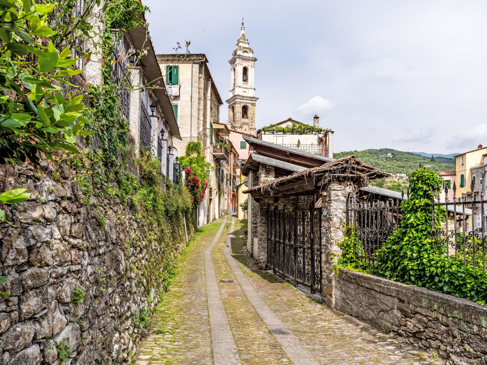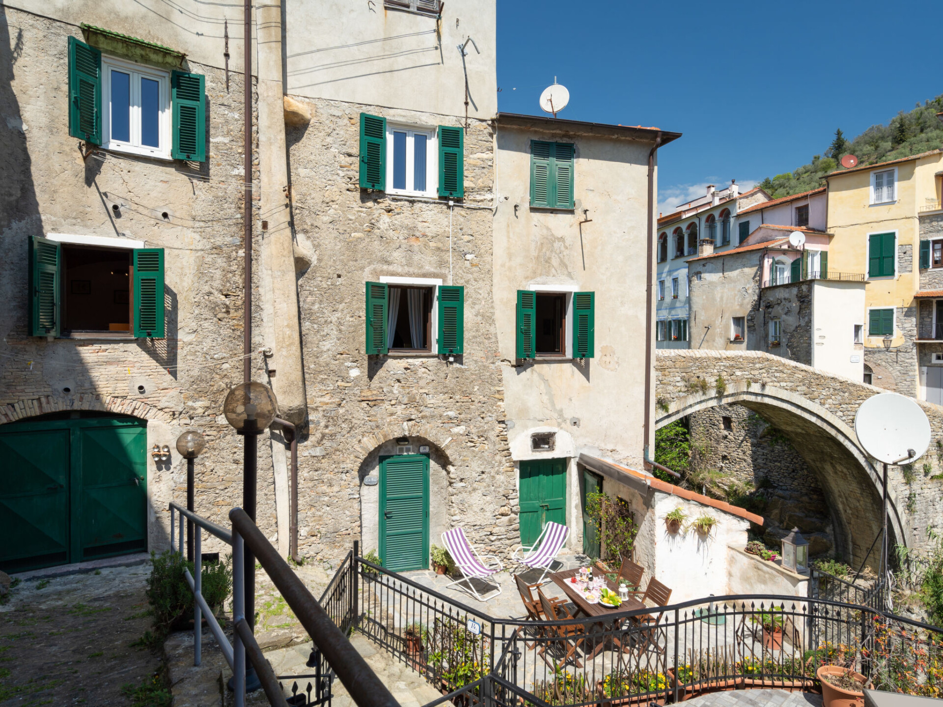 Historisch Huis met 2 woningen. In de plaats Dolcedo, 9 km van het centrum van Imperia, 23 km van het centrum van Alassio, centrale, zonnige ligging, perfecte locatie: in het centrum en toch rustig gelegen, 9 km van zee, in een voetgangerszone. Openbare parkeerplaatsen 20 m in de straat. Winkel 50 m, supermarkt 7 km, restaurant 50 m, bar 10 m, bakkerij 200 m, café 50 m, bushalte 50 m, treinstation "Imperia" 12 km, kiezelstrand 9 km, meer (zwemmen) 5 km.