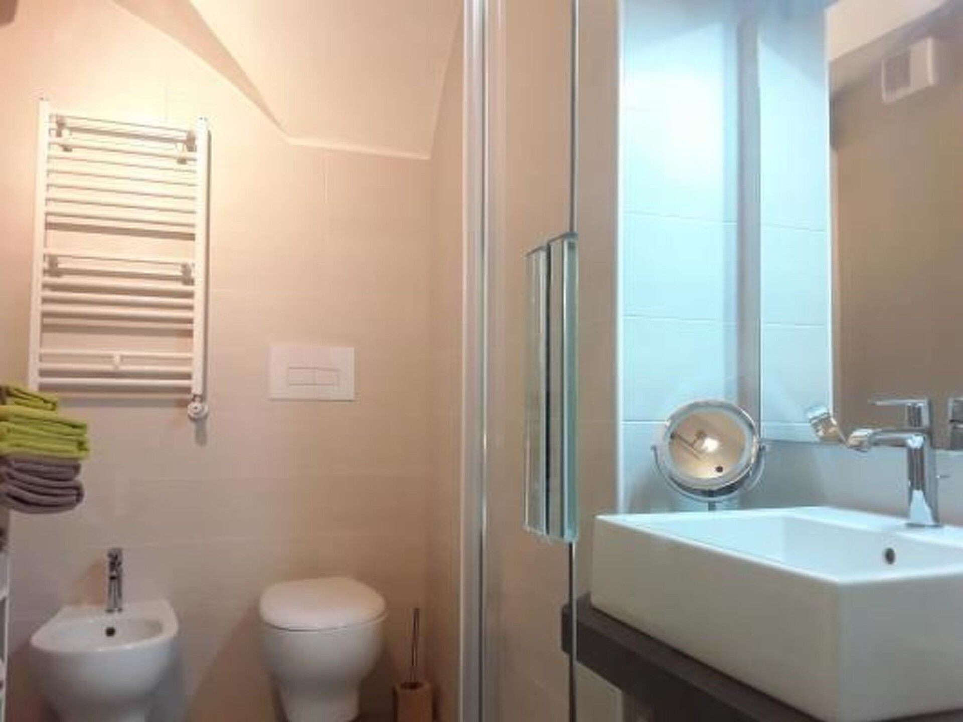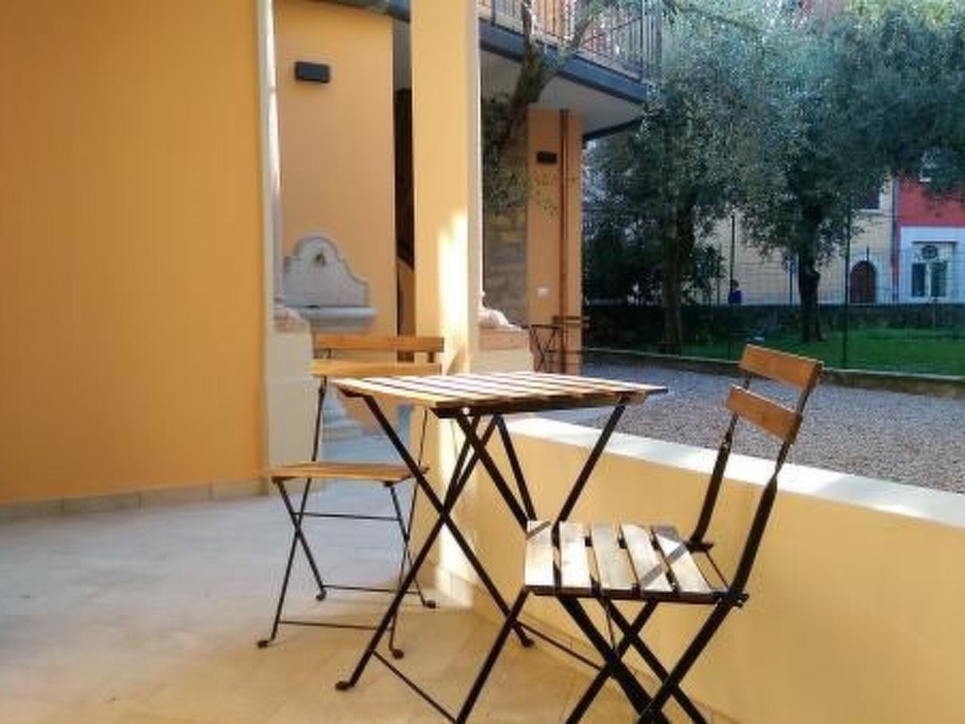Ca'due Olivi - holiday home with 5 comfortable flats, terrace, courtyard and mountain views in the historic centre of Maderno. The Ca' due Olivi is located in the historic centre of Maderno, only 500 metres from the lake, in a central and quiet location. The guesthouse has been completely renovated. The flats are bright and modern. They all have a private terrace/balcony and offer beautiful views of the historic centre and the mountains. Free Wi-Fi is available in the entire building. Air conditioning and heating. Bicycle parking is available. Just a few minutes' walk from bars, restaurants and supermarkets and from the lake with its many beautiful beaches. Ca' due Olivi is the ideal starting point for many activities such as water sports, mountain biking, trekking and visits to the many attractions in the surroundings.Each flat has its own outdoor seating area. The holiday home offers an idyllic setting: a beautiful courtyard with seating and a barbecue. A pavilion as a social meeting place in both good and bad weather. The large terrace invites you to linger and relax, with deck chairs, sun loungers and an umbrella. The property is fenced off and therefore also suitable for children. Free public parking is available in the immediate vicinity.Each flat has air conditioning and heating, a fully equipped kitchenette (with induction hob, refrigerator, dishwasher, combined microwave oven, kettle, etc.), a dining and living area with flat-screen satellite TV and a bathroom with shower, sink and bidet.Within a few minutes walk you can reach bars, restaurants, supermarkets and the lake with its many beautiful beaches. Toscolano-Maderno is worth a visit at any time of the year. Especially between October and January the temperatures are mild and ideal for hiking, trekking or mountain biking in the surrounding mountainous regions. The historic centre offers small shops, services, restaurants and bars. The bakery and butcher's shop are open daily and are just across the street. A small, well-maintained wellness centre with a beauty parlour and hairdresser is also nearby. A bicycle shop rents bicycles and offers guided cycling and walking tours. In the vicinity you will also find numerous restaurants and bars, small souvenir and clothing shops, as well as numerous offers for recreational activities and water and sports in general. A few kilometres away you will also find golf courses and horse riding opportunities. The guesthouse is therefore the ideal starting point for numerous activities such as water sports, mountain biking, hiking and visits to the many attractions in the surroundings.We only use environmentally friendly and anti-allergy cleaning and washing products. Cot available. IT017187B4DWMRELOX