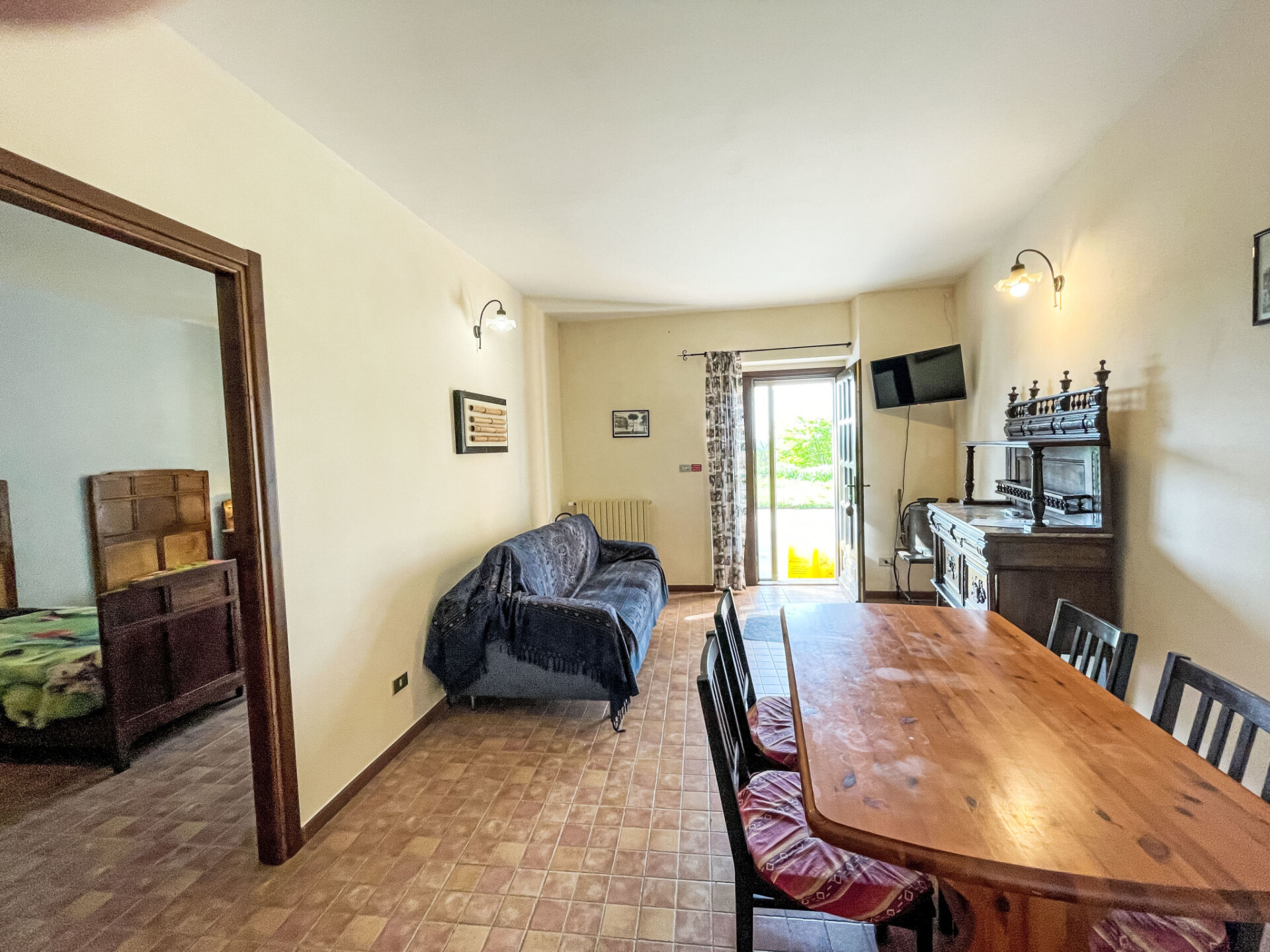 "Narcisio", appartement 3-kamers 85 m2, op de begane grond. Doelmatig en rustiek ingericht: woon-/slaapkamer met 1 2-pers divanbed en TV. 1 kamer met 2 bedden. 1 2-pers. kamer. Kookhoek (oven, Gasfornuis, 4 kookpitten (vlammen), broodrooster, waterkoker, elektrische koffiemachine). Uitgang naar de tuin. Bad/WC. Verwarming alleen beschikbaar van 01.10. tot 30.04. Natuurstenen vloeren. Klein terras 15 m2, ruime zithoek in de tuin. Mooi panoramazicht op het landschap. Ter beschikking: kinderstoel, kinderbed tot 2 jaar. Internet (WiFi, gratis). Rookmelders, brandblusser. IT005005B56JM69RP4