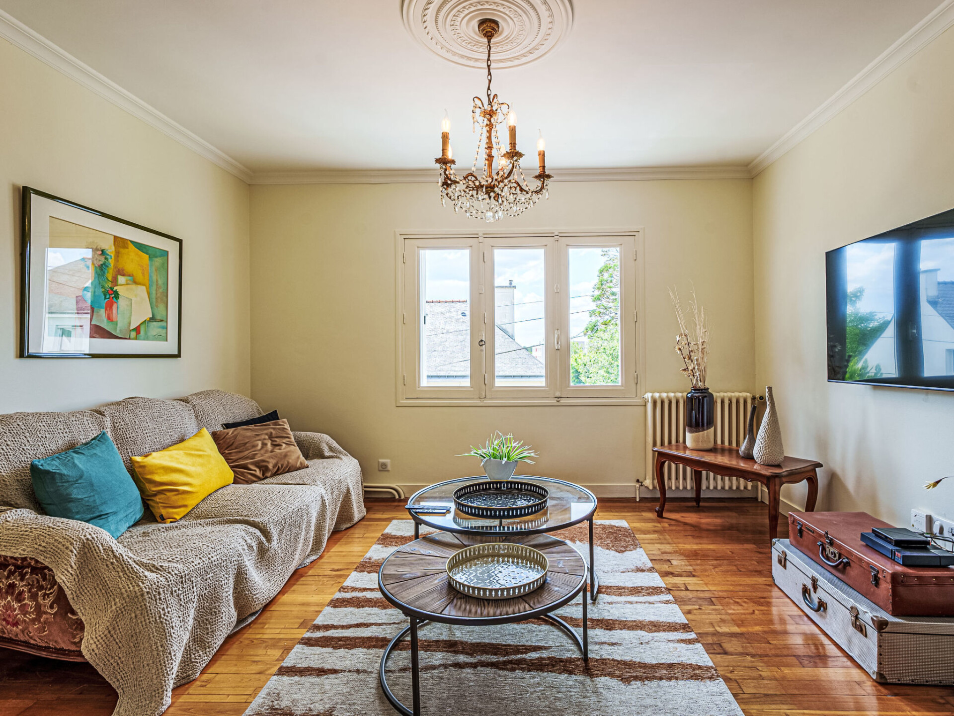Huis "Calloch", van 2 verdiepingen. In het centrum van Auray, 12 km van zee, 12 km van het strand, 5 km van de rivier. Parkeerplaats. Levensmiddelenwinkel 3 km, supermarkt 5 km, restaurant 2 km, bakkerij 2 km, café 2 km, bushalte "Auray Gare" 1.5 km, zandstrand "Grande Plage Carnac" 15 km. Golfterrein (18 holes) 10 km. Attracties in de buurt: Port de Saint-Goustan 2 km, Port de La Trinité sur Mer 13 km, Presqu'ile de Quiberon 16 km, Vannes 18 km, Lorient 40 km, Belle Ile en Mer.