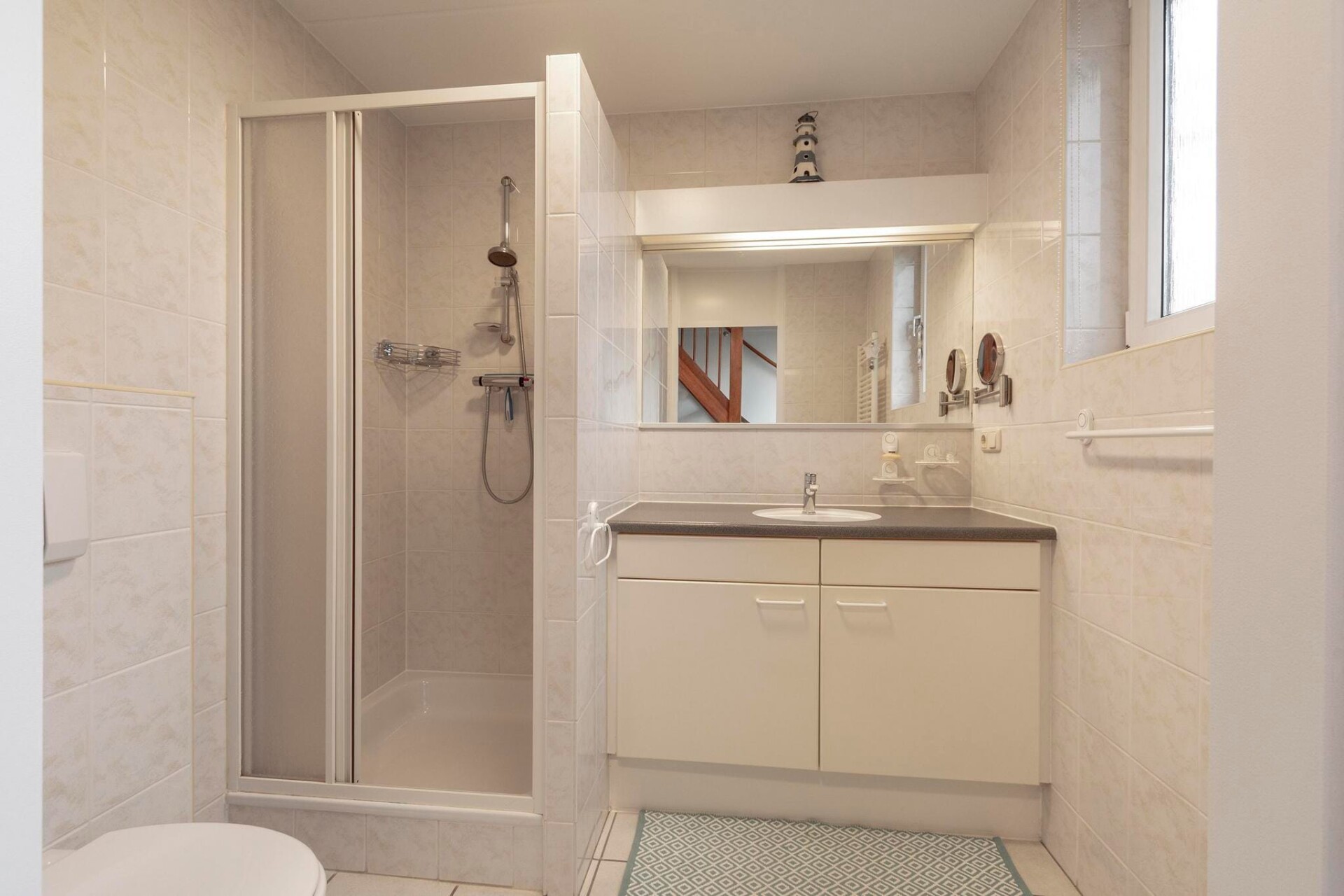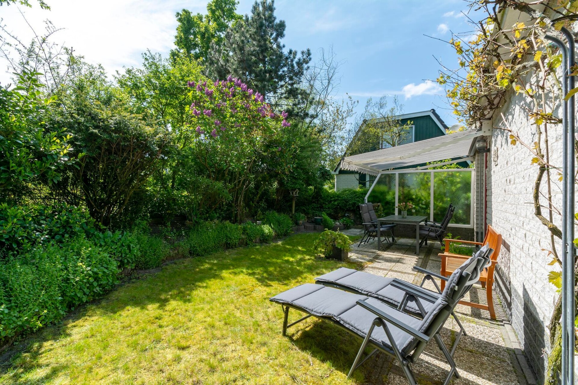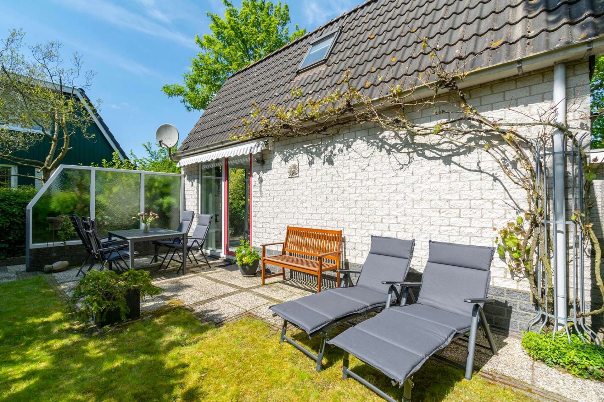 Het huis heeft drie slaapkamers met vier comfortabele bedden en een ruime badkamer met een toilet op de begane grond, plus een extra toilet op de bovenverdieping. De privétuin heeft een zonnig terras op het zuiden, perfect om te ontspannen.