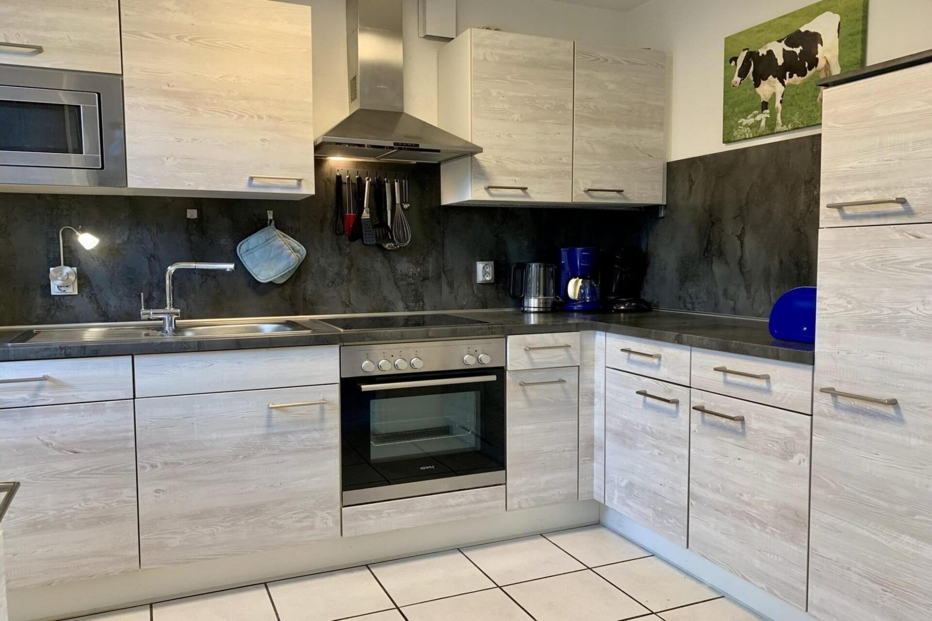 De ruime woonkamer op de begane grond baadt in natuurlijk licht dankzij grote ramen en biedt een gezellige zithoek met een smart-tv met Nederlandse en Duitse zenders. De open keuken nodigt uit om samen te koken en is uitgerust met een vaatwasser, een 4-pits kookplaat, een koel-vriescombinatie, een magnetron, een wafelijzer en handige mixers voor uw favoriete recepten. De betegelde begane grond is voorzien van vloerverwarming, waardoor het in elk seizoen extra comfortabel is. Boven vindt u drie slaapkamers: één met een tweepersoonsbed en twee met twee eenpersoonsbedden, evenals een tweede toilet voor extra gemak. De moderne badkamer op de begane grond is voorzien van een ruime douche, wastafel en toilet.