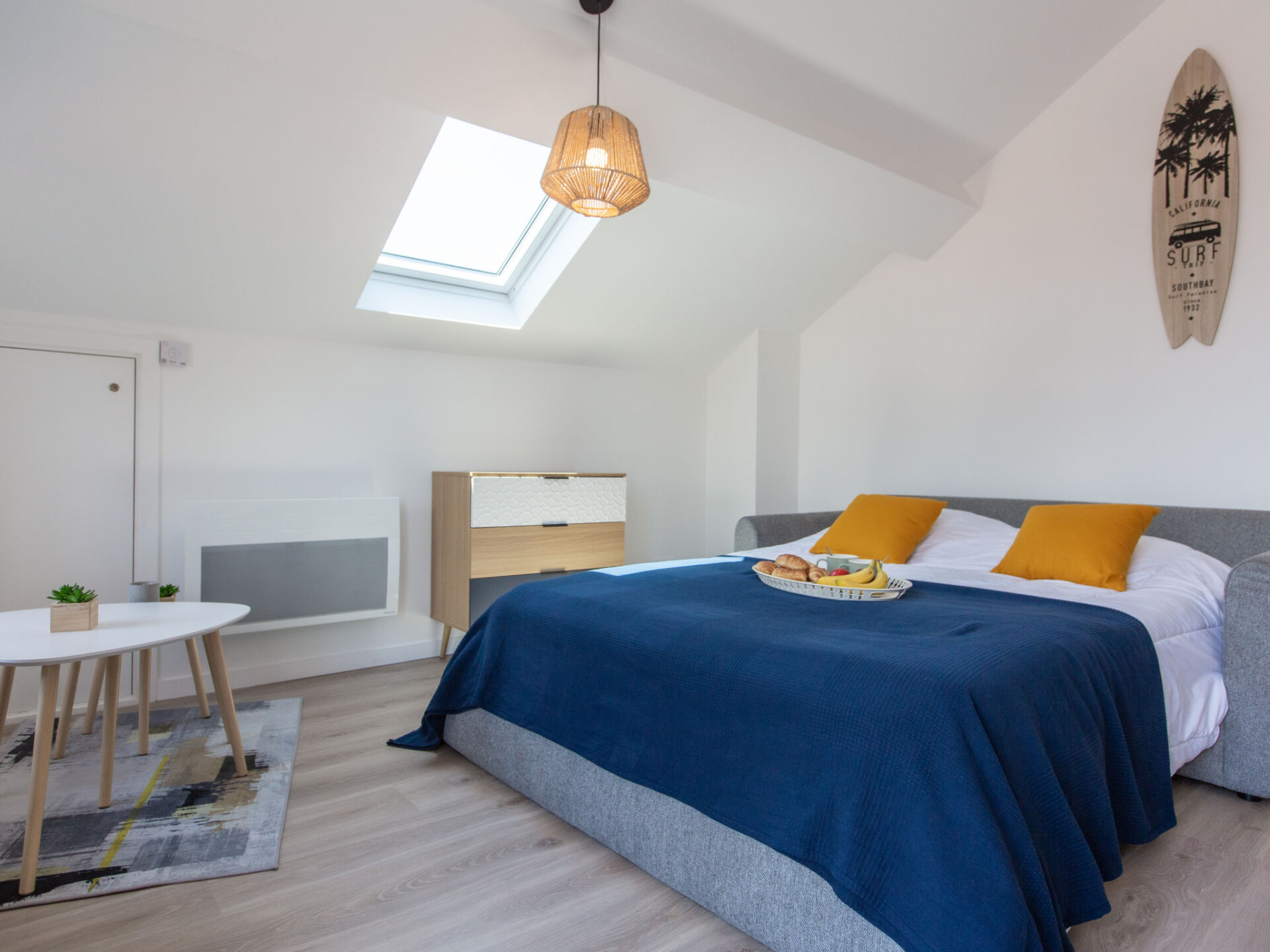 Appartement 2-kamers 27 m2 op de 2e verdieping. Licht, gedeeltelijk afgeschuinde daken, modern en gezellig ingericht: woon-/eetkamer met TV (Flatscreen TV). Uitgang naar het balkon. 1 kamer met 1 2-pers bed (140 cm, lengte 190 cm). Open keuken (oven, afwasmachine, 2 inductiekookplaten, broodrooster, waterkoker, magnetron, elektrische koffiemachine). Douche/WC. Klein balkon 4 m2. Balkonmeubilair. Ter beschikking: haardroger. Internet (Internet (WiFi), extra). Niet rokers woning. Aanbod door een particulier volgens art. 155, IV van CGI. 40065001459OQ