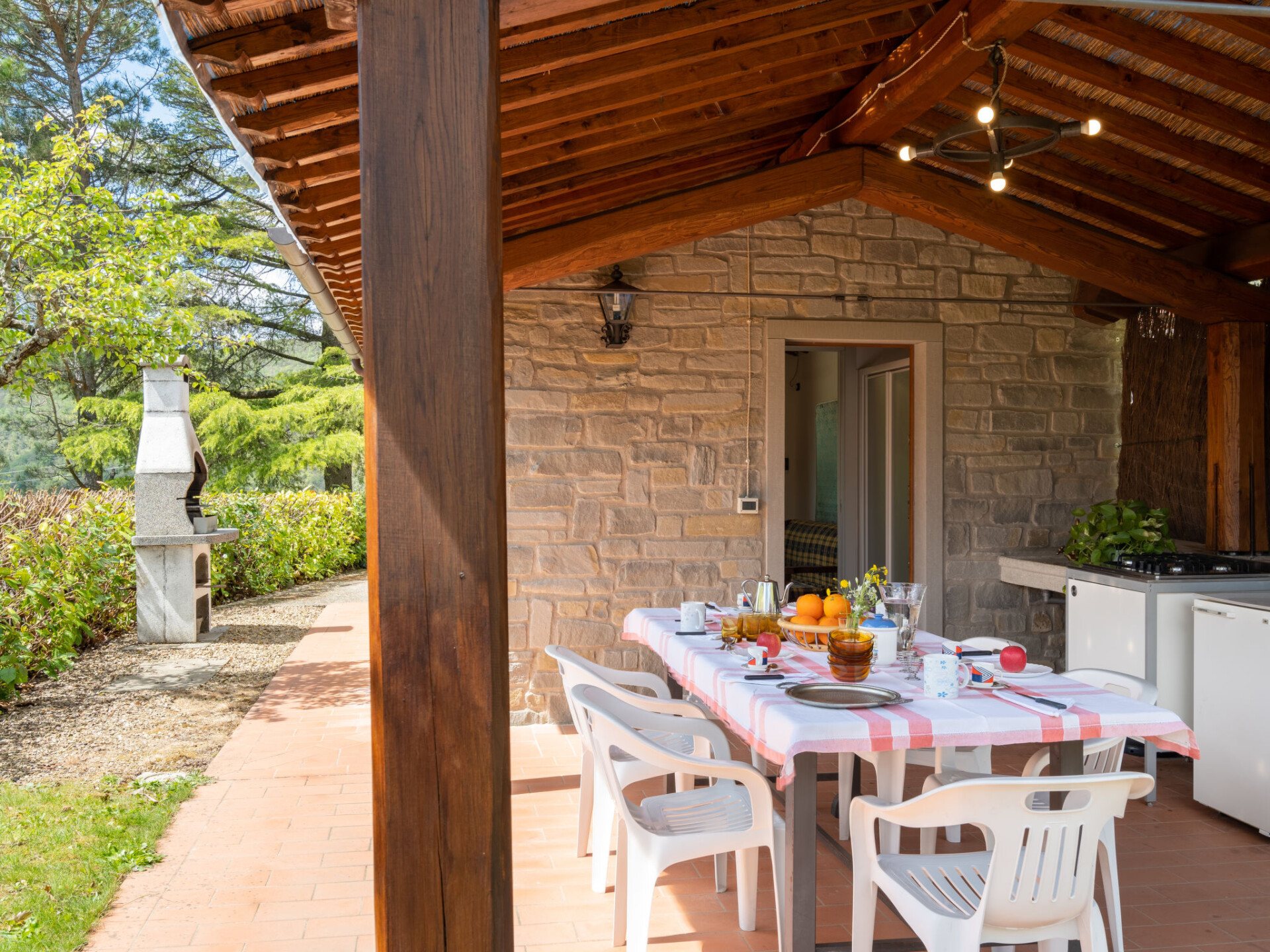 Huis 5-kamers 120 m2 op 2 verdiepingen. Gedeeltelijk afgeschuinde daken, rustiek en gezellig ingericht: woon-/eetkamer met open haard, eettafel en Sat-TV. Uitgang naar de tuin. Woon-/slaapkamer met 1 2-pers divanbed, open haard en Sat-TV. Uitgang naar het terras. Kleine, open keuken (afwasmachine, 4 kookpitten (vlammen), elektrische koffiemachine). Douche, aparte WC. Bovenverdieping: (wenteltrap) woon-/slaapkamer met 1 2-pers divanbed. Uitgang naar het terras. (wenteltrap), 2 2-pers. kamers. 2 douche/bidet/WC's. Olie-verwarming (extra). Natuurstenen vloeren. Ter beschikking: wasmachine, kinderbed tot 2 jaar. Parkeerplaats (omheind, 2 Auto's) bij het huis. Rookvrij huis. Geen interne verbinding tussen de aparte wooneenheden. Er hoeven geen verplichte extra kosten ter plaatse te worden betaald, behalve de lokale belasting. Bedindeling is flexibel. Er zijn meer slaapmogelijkheden beschikbaar dan het maximaal toegestane aantal personen dat echter niet mag worden overschreden. IT051020C2VJFIVZOT