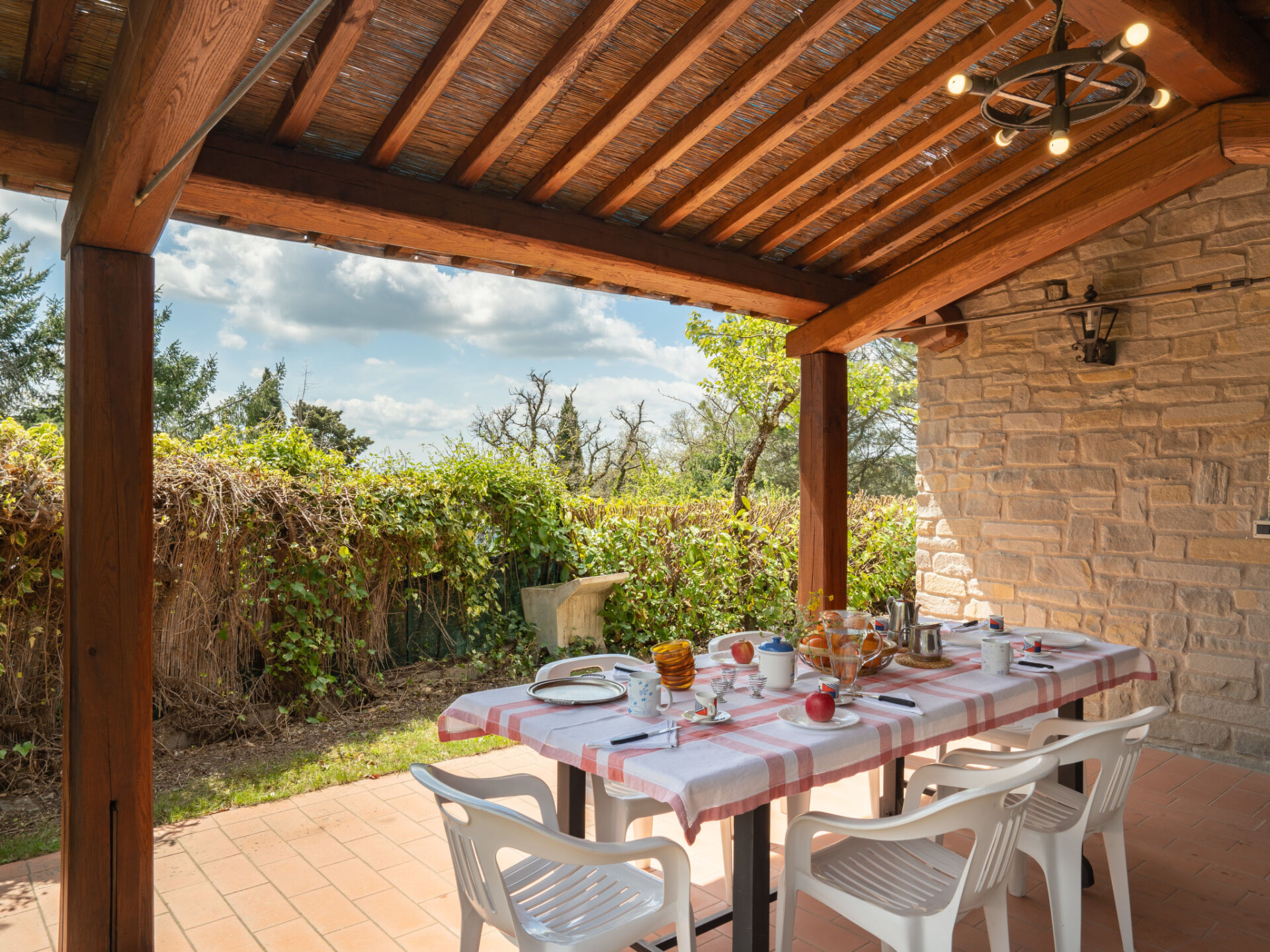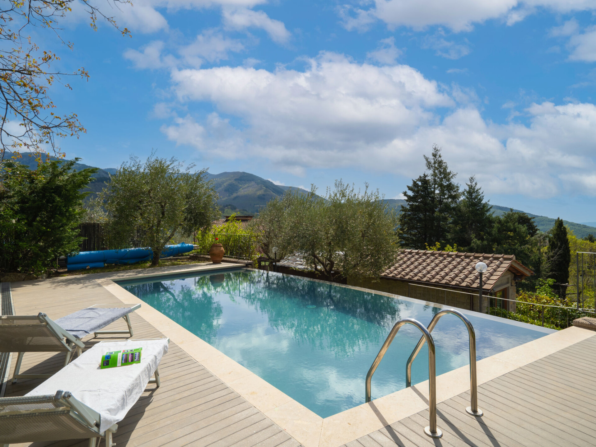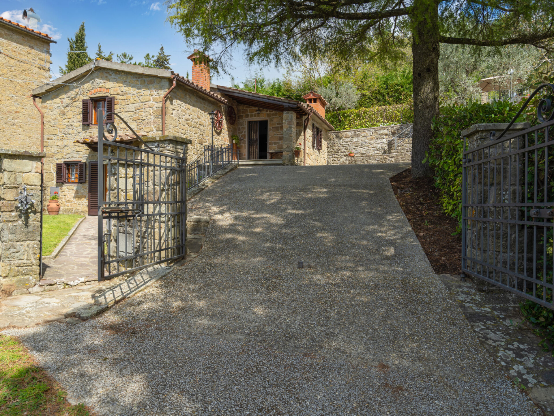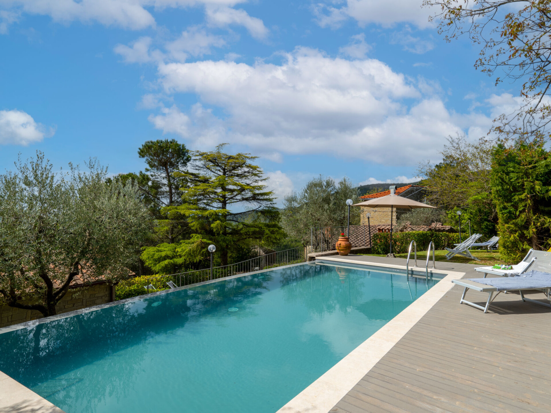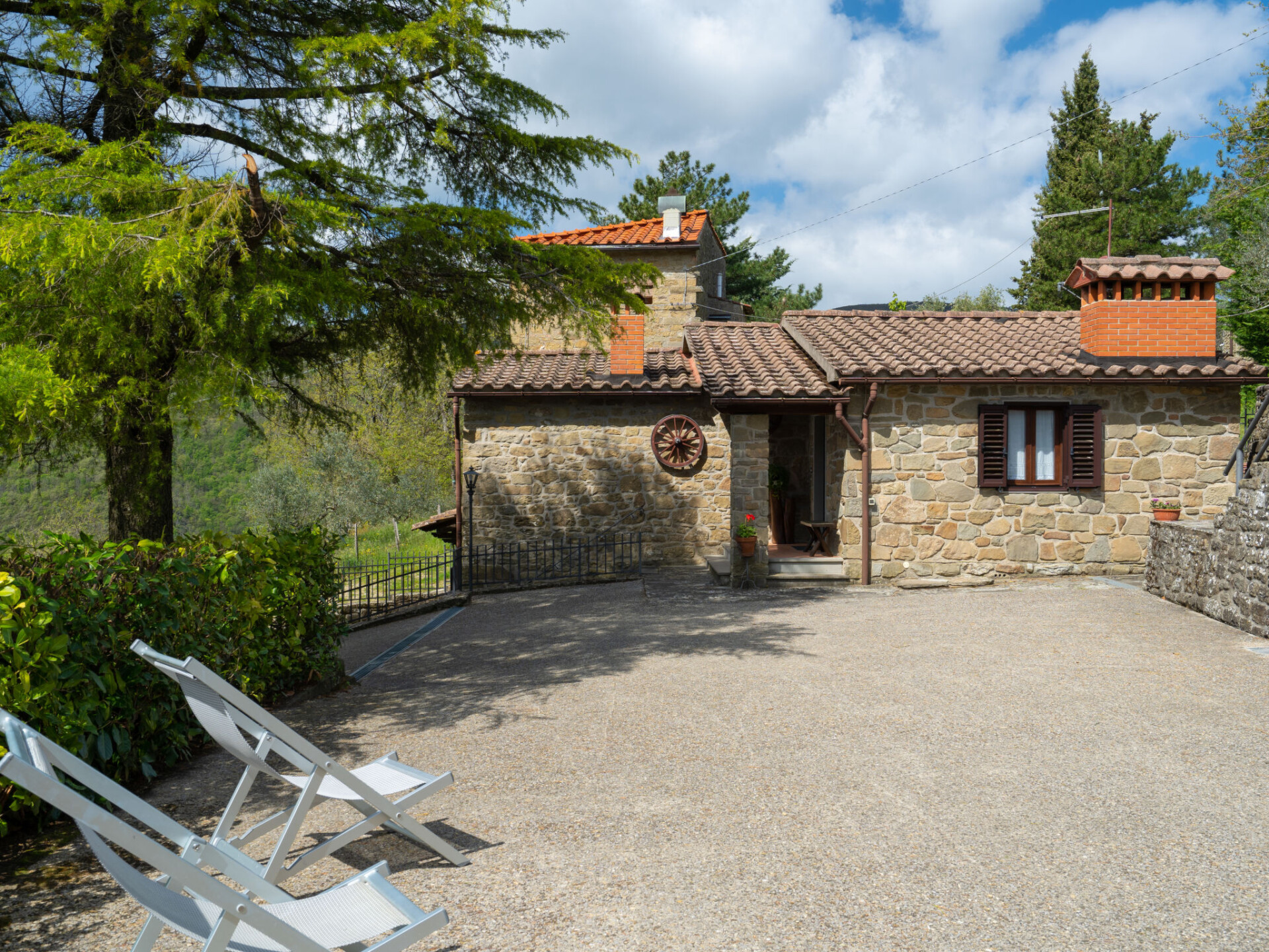 Rustieke woning "Capanna", 650 m boven zeeniveau. Huurobject bestaande uit hoofd-/ bijgebouw, in het gehucht Poggio di Loro met 20 huizen, 4 km van het centrum van Loro Ciuffenna. Voor alleengebruik: terrein 1.500 m2 (omheind), tuin op verschillende niveaus gazon en bomen, weide, openluchtzwembad (8 x 4 m, seizoensgebonden beschikbaarheid: 01.Mei. - 30.Sep.). Buitendouche, poolhouse met fornuis, terras (18 m2), tuinmeubelen, barbecue. 50 m lange smalle toegangsweg (onverharde weg). Parkeerplaats (voor 2 auto's) op het terrein. Supermarkt 6 km, bushalte 5 km, treinstation "Montevarchi" 20 km. Attracties in de buurt: Arezzo 35 km, Firenze 60 km, Siena 65 km. Auto noodzakelijk.