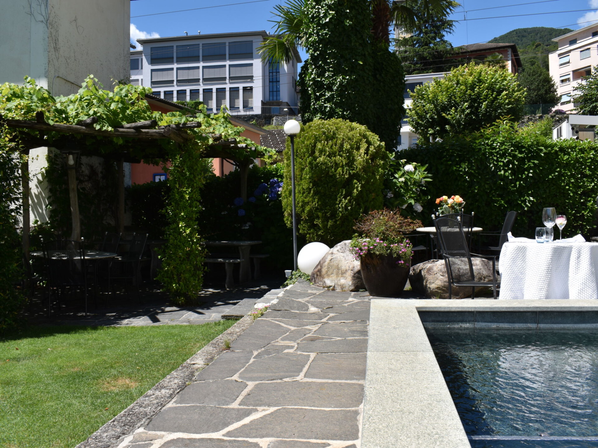 Intragna 10 km van Locarno: Moderne, comfortabel flatgebouw "Capriccio", 340 m boven zeeniveau, van 2 verdiepingen. 3 appartementen in de woning. In de plaats Intragna, in het district Centovalli, rustige, zonnige ligging, aan een doodlopende weg. Voor medegebruik: mooie tuin ter ontspanning, openluchtzwembad hoekig (2 x 10 m, seizoensgebonden beschikbaarheid: 20.Mei. - 20.Okt.) met trap. Patio, prieel, terras, tuinmeubelen. In het complex: receptie, restaurant, ontbijtruimte, centrale verwarming. Ontbijt op verzoek op aanvraag (extra). 30 m lange toegangsweg tot aan het huis. Parkeerplaats op het terrein. Restaurant 10 m, bakkerij 500 m, fietsverhuur 10 m, bushalte "Intragna, Stazione" 30 m, treinstation "Centrovalli Expres FART Intragna" 50 m. Wandelroutes 5 m vanaf het huis. Attracties in de buurt: Ascona, Locarno, Ronco sopra Ascona, Isole di Brissago, Falconeria, Locarno, Madonna del Sasso, Orselina, Mercato Cannobio IT, Mercato Luino IT. Bekende meren kunnen gemakkelijk worden bereikt: Lago Maggiore, Lago di Lugano, Lago di Como. Wandelgebied Centovalli, Vallemaggia, Valle Verzasca, Cardada, Monte Tamaro- Splash &SPA. Baby uitrusting. Vergelijkbare accommodaties kunnen worden geboekt. Object referentie: CH6655.55 is gelegen op hetzelfde terrein.