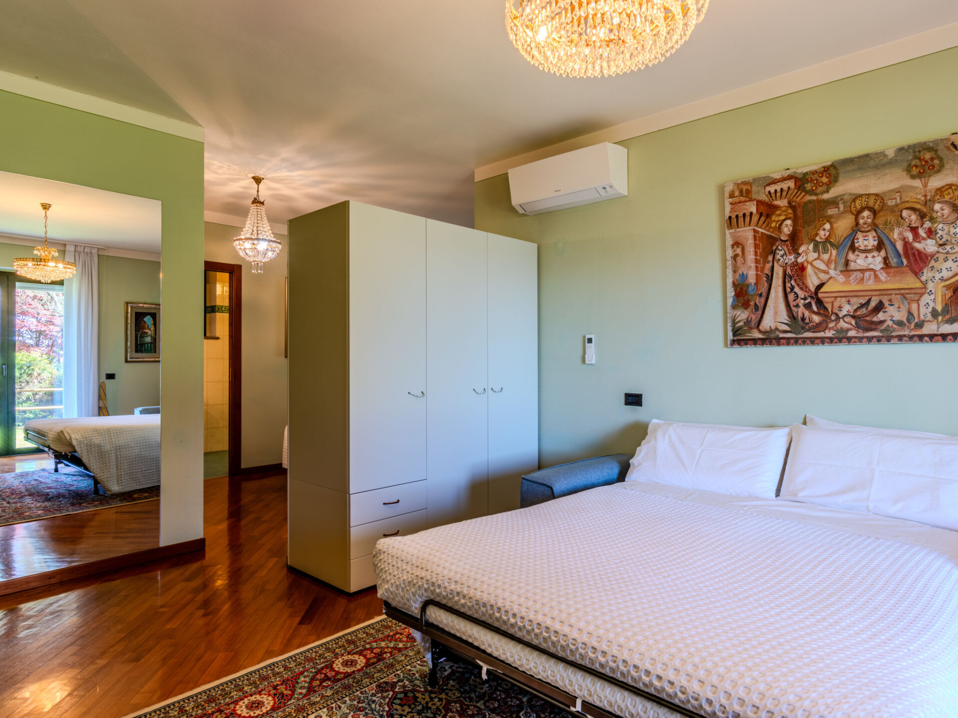 Groot, comfortabel Huis met 2 woningen "Cardana", van 3 verdiepingen. 2 km van het centrum van Besozzo, op een heuvel, 5 km van het meer. Voor medegebruik: terrein (omheind) met gazon en bomen. Toegangsweg tot aan het huis. Supermarkt 2.5 km, restaurant 2 km, bar 2 km, bushalte 1 km, treinstation "Besozzo" 3 km. Attracties in de buurt: Santa Caterina del Sasso 8 km, Laveno 9 km, Ispra 9 km. Bekende meren kunnen gemakkelijk worden bereikt: Maggiore 5 km, Varese 6 km, Monate 9 km. Auto noodzakelijk. Gesloten residentie met een elektrische deur. De eigenaar woont in hetzelfde huis.