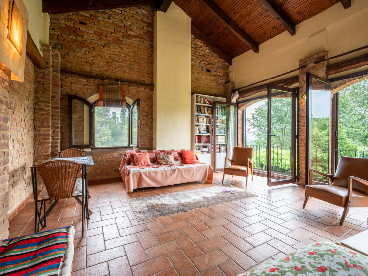 Zeer gezellige, rustieke cottage "Carla", eenzijdig aangebouwd, omgeven door weiden en velden. 2 km van het centrum van Cortazzone, 23 km van het centrum van Asti, op een heuvel, te midden van groen. Voor alleengebruik: terrein 2.000 m2, tuin met planten en bomen, weide, boomgaard, ligweide, openluchtzwembad (10 x 5 m, 140 - 270 cm diepte, seizoensgebonden beschikbaarheid: 01.Mei. - 15.Okt.) met zout-elektrolyse. Patio, prieel, tuinmeubelen, barbecue, onderhoud zwembad door de eigenaar/tuinman. Parkeerplaats bij het huis op het terrein. Winkel 3 km, supermarkt 13 km, bushalte 1 km, treinstation "Asti" 23 km. Attracties in de buurt: Turin 45 km, Alba 35 km. Eigenaar woont in apart huisgedeelte.