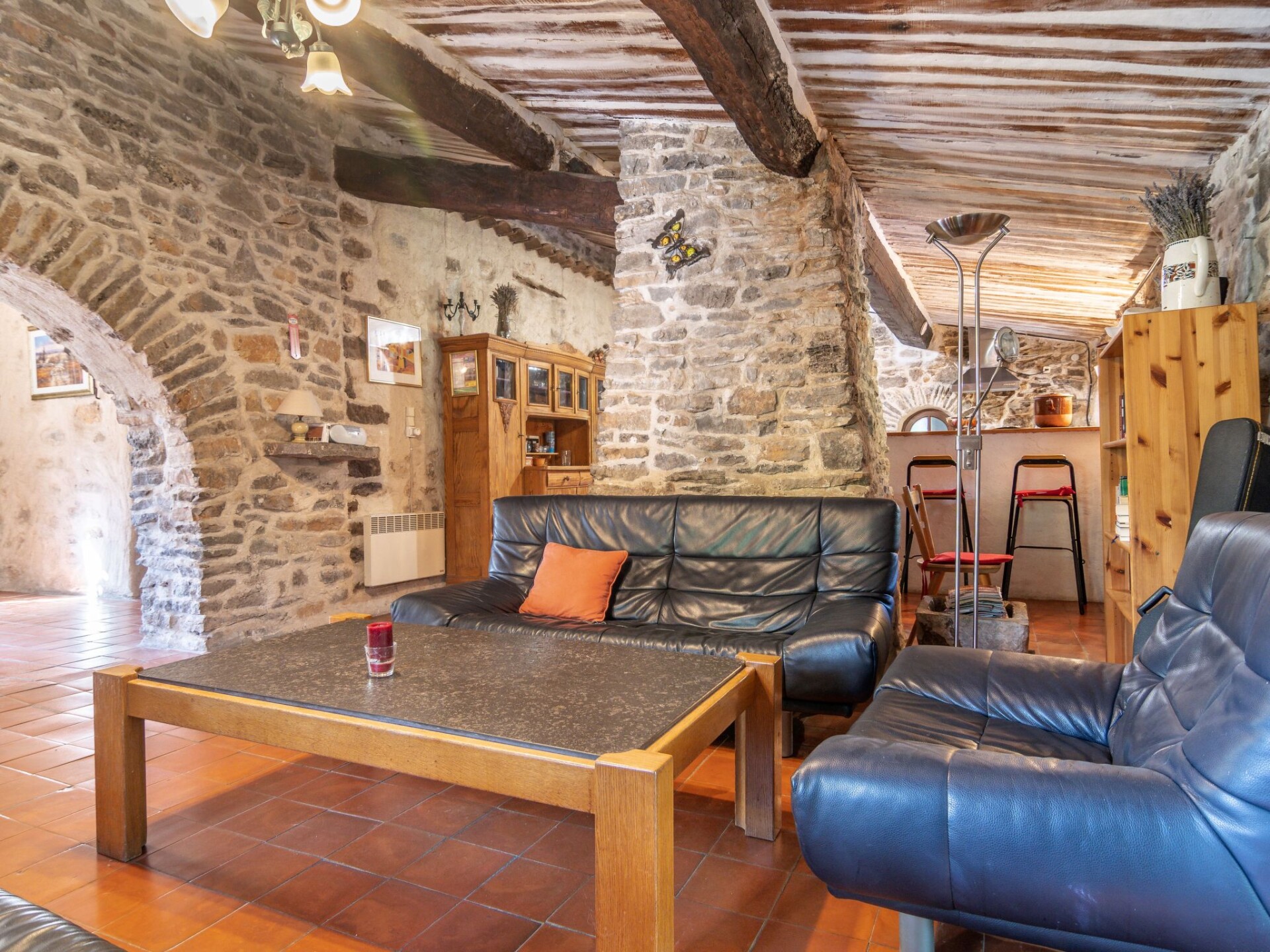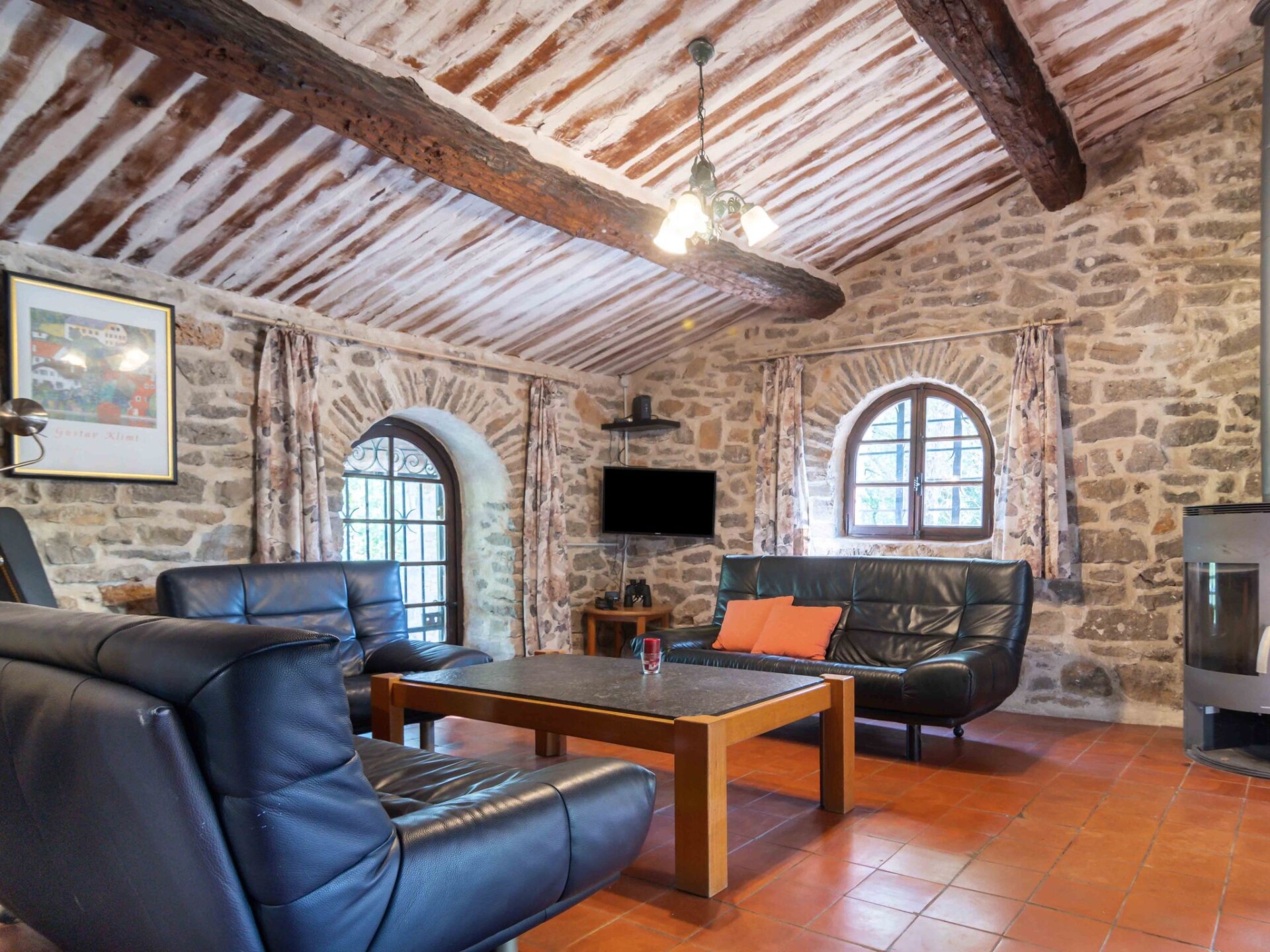 "Carpanel", huis 5-kamers 140 m2 op 2 verdiepingen. Rustiek en smaakvol ingericht: woonkamer met TV en houtkachel. Open eetkamer met eettafel. Uitgang naar het terras. 1 kamer met 2 bedden (90 cm, lengte 200 cm). 1 kamer, op 2 verdiepingen met 1 bed (90 cm, lengte 200 cm), 1 slaapplaats (90 cm, lengte 200 cm). 1 kamer met 1 2-pers bed (2 x 90 cm, lengte 200 cm), douche/WC. Open keuken (4-pits kookplaat, oven, afwasmachine, broodrooster, waterkoker, magnetron, diepvriezer, elektrische koffiemachine). Douche/WC, dubbele wastafels. Elektrische verwarming. Bovenverdieping: (steile trap), 1 kamer met 2 bedden (90 cm, lengte 200 cm). 2 terrassen gedeeltelijk overdekt. Terrasmeubelen, barbecue, ligstoelen (8). Ter beschikking: wasmachine. Internet (WiFi, gratis). Maximaal 1 huisdier/hond toegestaan.