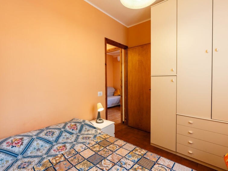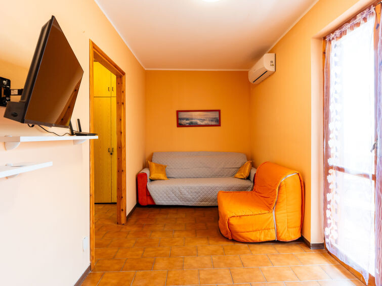 "Casa Anna", appartement 2-kamers 70 m2, op de begane grond. Doelmatig en gezellig ingericht: woon-/eetkamer met 1 divanbed (90 cm, lengte 200 cm), 1 2-pers divanbed (110 cm, lengte 200 cm), TV. Uitgang naar de tuin, naar het balkon. 1 2-pers. kamer. Kookhoek (mini-oven, 4 kookpitten (vlammen), broodrooster, waterkoker). Bad/WC. Air-conditioning, heteluchtverwarming. Verwarming alleen beschikbaar van 01.11. tot 15.04. Balkon 6 m2, tuin. Balkonmeubilair. Mooi uitzicht op zee en de plaats. Ter beschikking: wasmachine, klamboe, kinderbed tot 2 jaar, haardroger. Internet (WiFi, gratis). Rookvrij huis. Maximaal 1 huisdier/hond toegestaan. Privé ingang, rookmelders, brandblusser. IT008044B4FXSQISEA