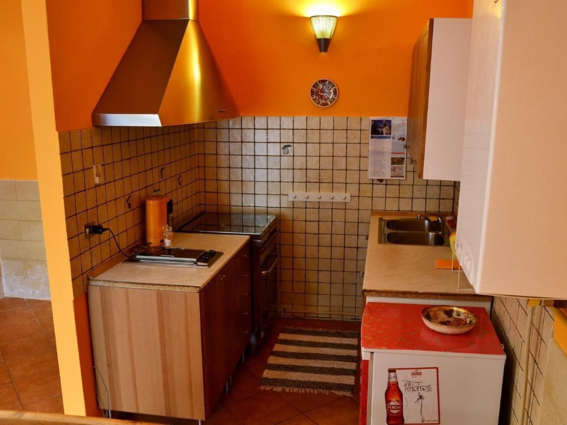 We rent in the picturesque old town of Canosa di Puglia (Barletta-Andria-Trani) in Puglia, Italy our holiday home for 5 persons. The house has 100 m2 and extends over two floors + roof terrace. At the ground floor there is the spacious kitchen (fully equipped) and a small bathroom (with bath tub and washing machine). On the first floor there are three bedrooms (two bedrooms for two persons and one bedroom for one person) and a bathroom (with shower). The second floor invites with his large roof terrace (30 m2 and exclusive use), to enjoy the surroundings and the panorama and enjoy wonderful summer evenings outdoors. In the immediate vicinity of the holiday home there are located a restaurant and a small grocery store (2 min walk), supermarket, pharmacy, fruit and vegetable shop and various other shops in the town center (5 min walk). You can explore historical sights on foot (from roman times). Leisure options: sea, beach, water sports (15 minutes by car), mountains, hiking (30 minutes by car), cycling, div. relics from the roman period (directly from the house). Castel del Monte is 20 minutes away by car, Trani in 25 minutes. Bari Airport in 45 minutes, Naples in less than 2 hours.Short descriptionOther : Non-smoking houseShort description 1Number of kitchens : 1SurroundingNearby sports facilities : Bike tours, Diving, Mountain climbing, Mountainbiking, Rowing, Sailing, Surfing, Tennis, Water skiing.