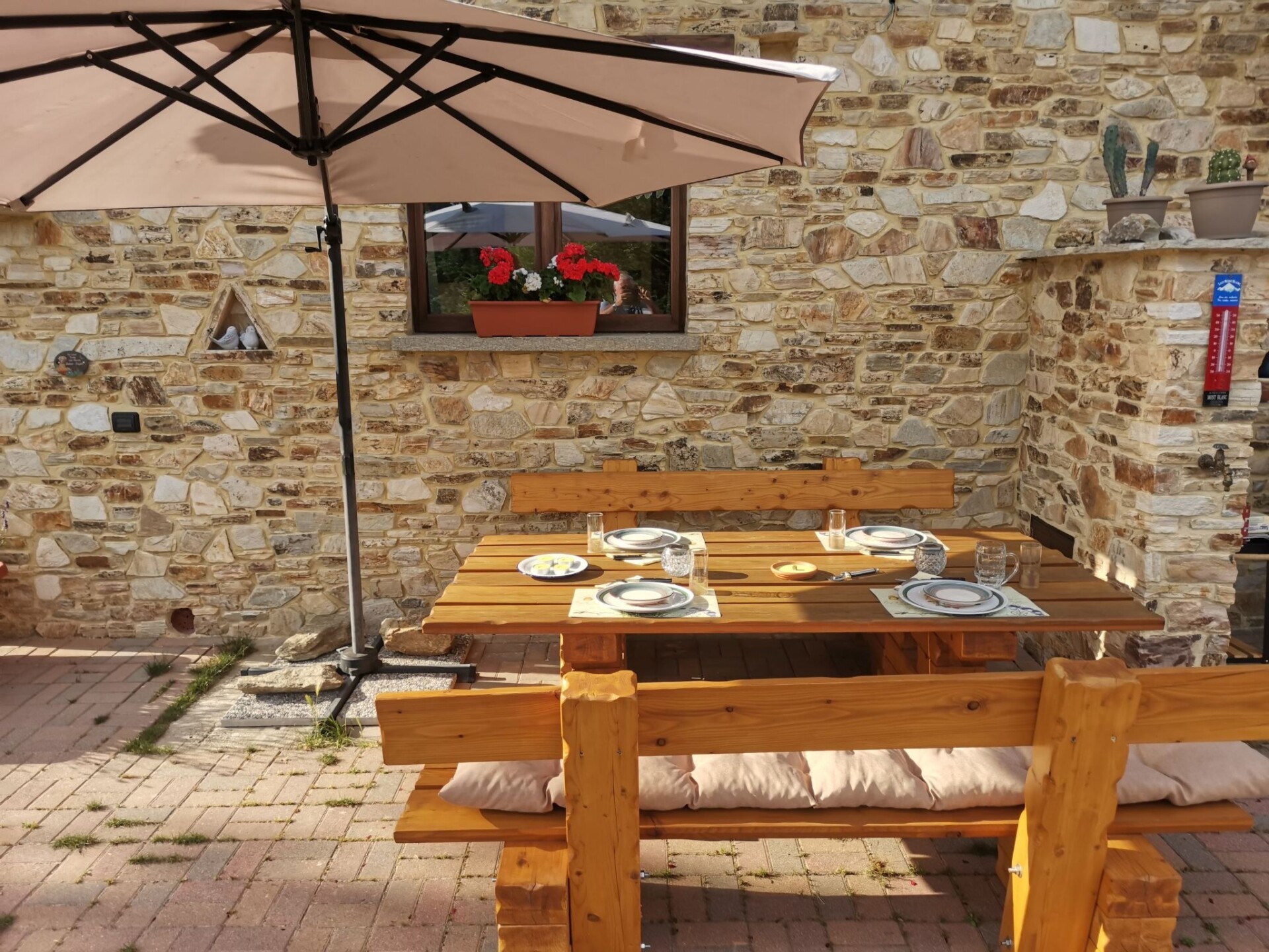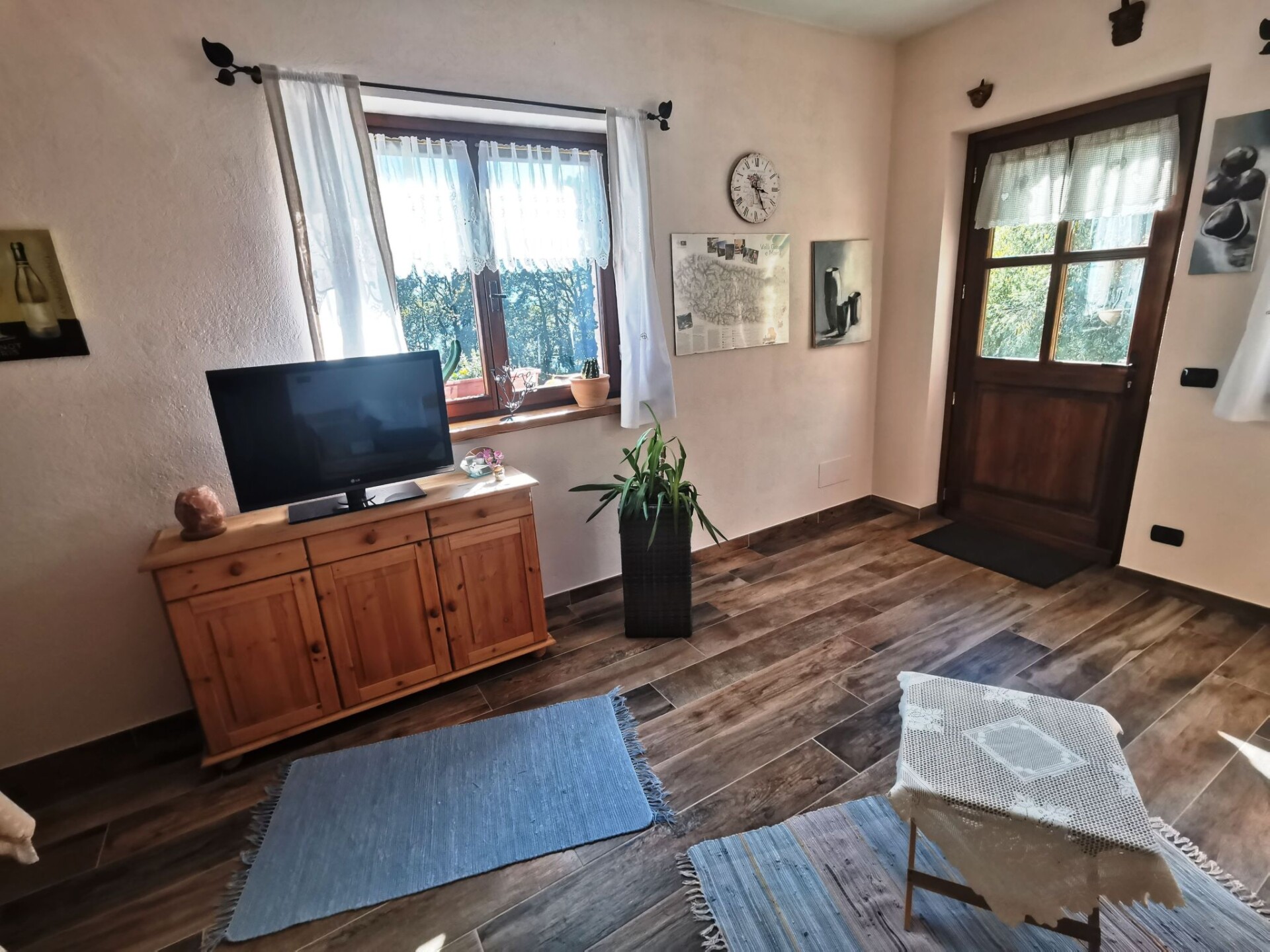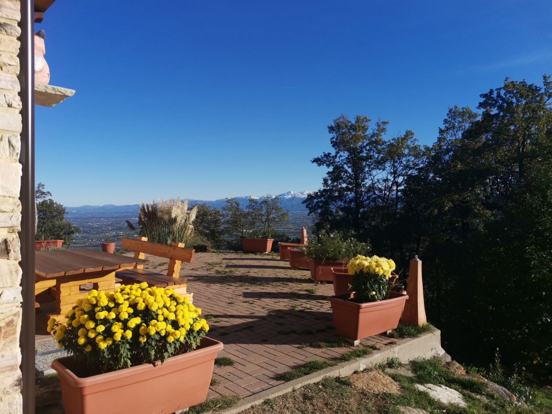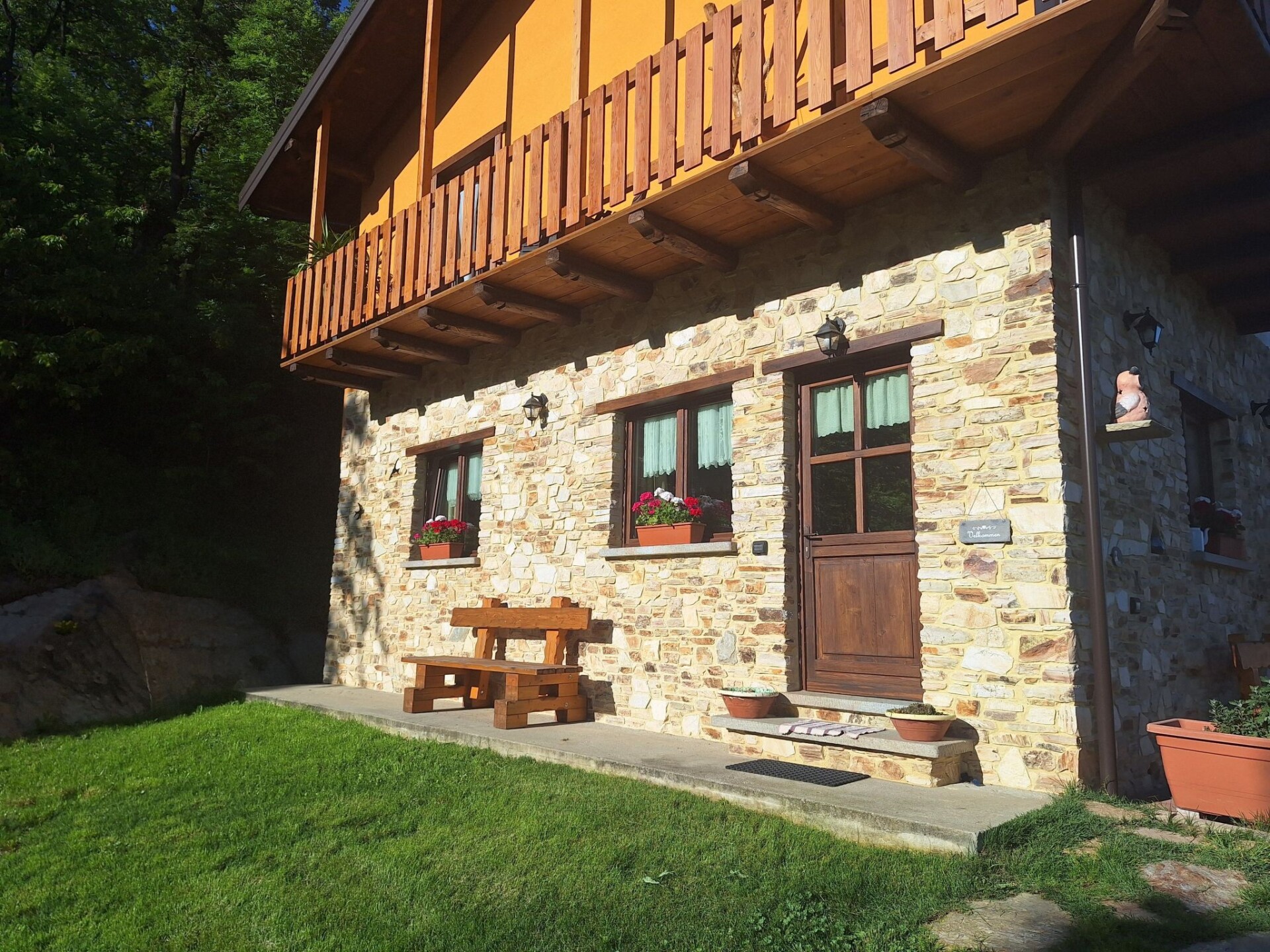 Our house is situated approx. 930 metres above sea level in an absolutely secluded location with a fantastic view of the Cuneo plain and the surrounding three thousand metre peaks of the Piedmont Alps. The south-facing location means we have glorious sunshine all day long. The holiday flat with approx. 45 sqm is located on the ground floor with its own entrance. W-Lan (WIFI) is available free of charge throughout the property and parking is available directly at the house. Access from Morra del Villar on a tarmac mountain road, the last approx. 150 m on a gravel road that is easy to drive on. Even in winter the road is cleared of snow up to the house. Our house is located at the entrance to the Valle Maira. As every season has its charm, here are just a few possibilities for an entertaining holiday. The Ligurian coast is about 100 km away with the famous beaches of Alassio, Sanremo or Monaco. For wine lovers and truffle connoisseurs, the Langhe is approx. 50 km away with the famous towns of Barolo and Alba not far away. In autumn we have chestnuts for tasting on our own property. In the snow-free season you can go on wonderful hikes or mountain bike tours in the valleys, the famous Percorsi Occitani hiking trail in our valley can be reached directly from the house. For the more sporty guests, we have several via ferratas and challenging high-altitude trails and climbing routes of all levels of difficulty in the valley (via ferrata equipment or snowshoes can be hired from us in winter). The take-off point for paragliders can be reached on foot. In winter, the valley is known for its wonderful ski tours. Thanks to the many hours of sunshine we have in the Southern Alps, ski tours can be undertaken in December even at suitable LWS levels. Our surrounding ski areas are also within easy reach (ski season in the ski areas from the end of November to the end of April depending on snow conditions), snowshoe hikes and ski tours can also be started directly from the house if the snow conditions are suitable. For everything worth knowing (including where to eat/shop) we are always at our guests' disposal. We would be delighted to welcome you (benvenuto) Your hosts Claudia & PeterThe apartment has a large living room with integrated fully equipped kitchen (extractor fan, induction hob, oven, fridge with freezer compartment, espresso machine, etc.). In the living room there is a TV/radio with German and Italian channels and a sofa bed for two people for our guests. A hallway with wardrobe leads to the bathroom with WC, bidet, washbasin and a large walk-in shower. Next door is the bedroom with wardrobe and a double bed for two people, a cot can be added if required. Our house is heated by an environmentally friendly pellet/solar heating system. There is underfloor heating throughout the flat and German electrical sockets are also available.Around the house is a large terrace with barbecue and pizza house, as well as a 5,000 square metre natural plot with an old tree population that provides shade in summer. The entire property can be used by our holiday guests to relax.Your host is a long-time mountain and ski tourer and will be happy to help you choose the most beautiful tours. IT004247C287JHGS24