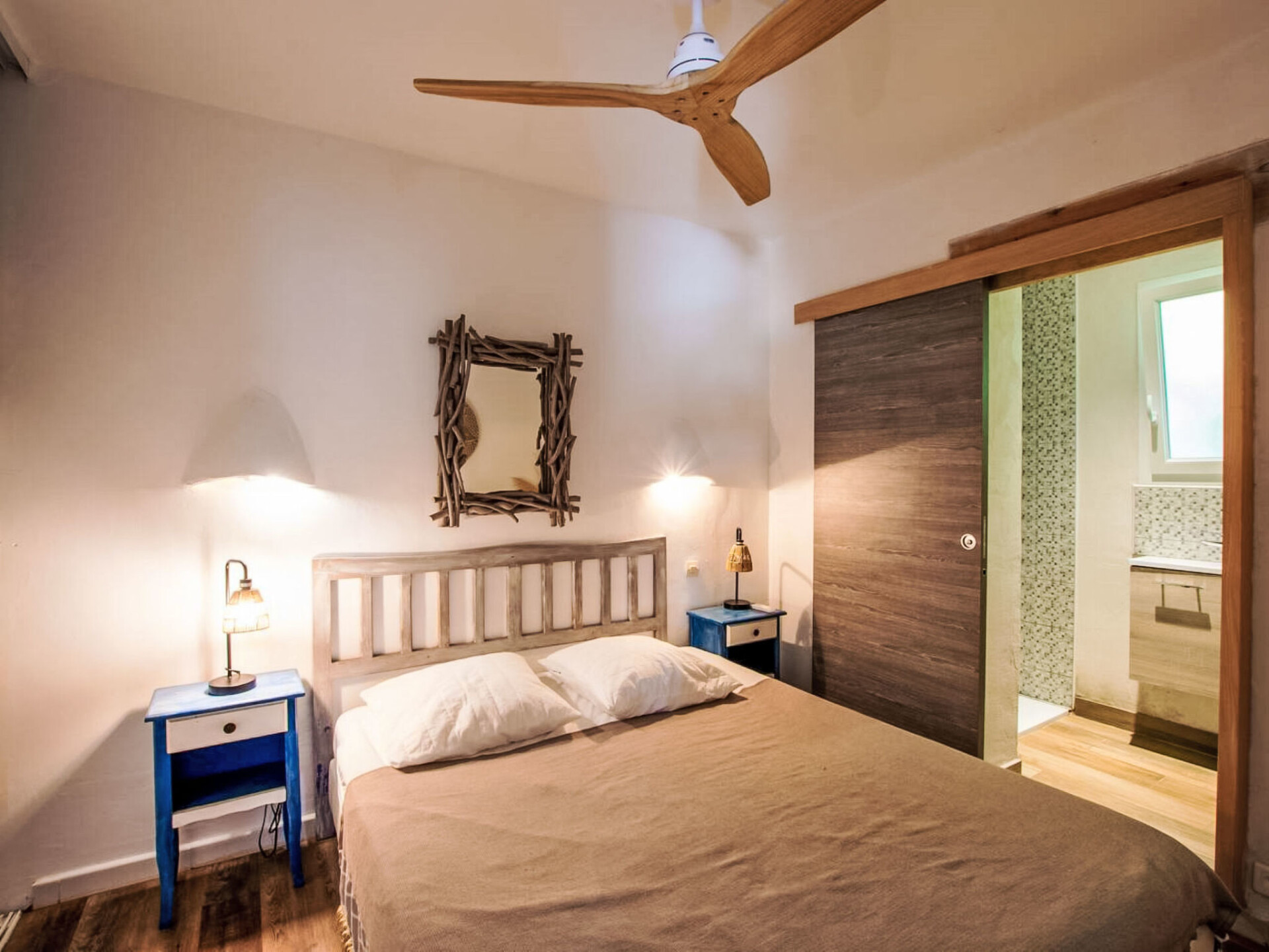 Huis met 2 woningen "Casa Blue". In de wijk Olmucciu, 30 m van zee, 30 m van het strand, directe toegang tot het strand. Voor alleengebruik: terrein (omheind), parkeerplaats bij het huis. Supermarkt 6 km, restaurant 50 m, bakkerij 6 km, bushalte 6 km, zandstrand "Plage des Americains" 30 m. Zeilschool 8 km. Attracties in de buurt: Plage des Américains 30 m, Plage de Pinarellu 8 km, Porto-Vecchio 21 km, Bonifacio 49 km. Wandelgebied Piscine Cavu 12 km, Aiguilles de Bavella 59 km. Auto noodzakelijk.