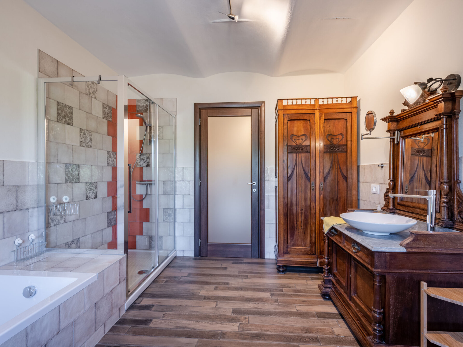 "Casa Chiara (SIC400)", huis 10-kamers 400 m2 op 3 verdiepingen. Comfortabel en smaakvol ingericht: woon-/eetkamer met open haard, eettafel, TV en stereo-installatie. Open keuken (oven, afwasmachine, 6 kookpitten (vlammen), broodrooster, waterkoker, diepvriezer, elektrische koffiemachine). Uitgang naar het terras. Douche/WC. Bovenverdieping: woonkamer met open haard. Uitgang naar het balkon. 4 kamers, elke kamer heeft 1 2-pers bed. Uitgang naar het balkon. Douche/WC, bad/douche/WC. Zolderverdieping: woonkamer met afgeschuinde daken. 3 kamers met afgeschuinde daken, elke kamer heeft 1 2-pers bed. Douche/WC. Gas-verwarming, air-conditioning. Natuurstenen vloeren. 3 balkons, terras terras 25 m2, overdekt. Terrasmeubelen, balkonmeubilair, barbecue (verrijdbaar). Panoramazicht. Ter beschikking: wasmachine, droger, kinderstoel, kinderbed. Internet (Internet (WiFi), gratis). Rookvrij huis. Als er minder dan het maximale aantal gasten in de accommodatie verblijft, is één verdieping niet beschikbaar voor gebruik. IT006135C2GDCHX5YM