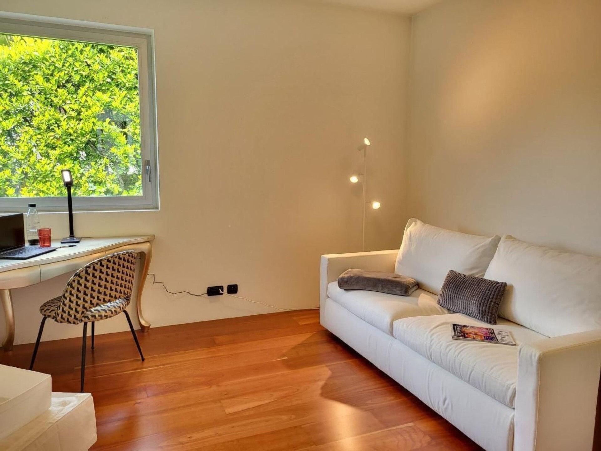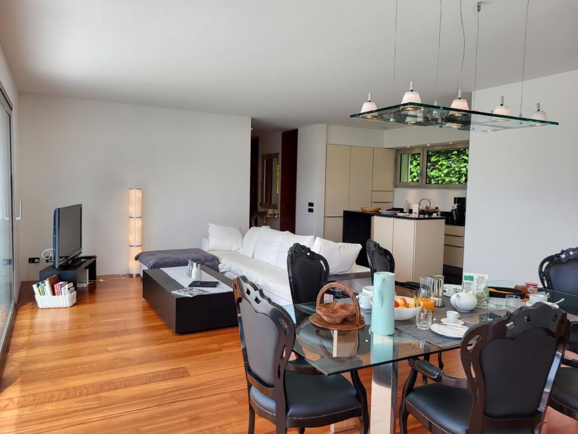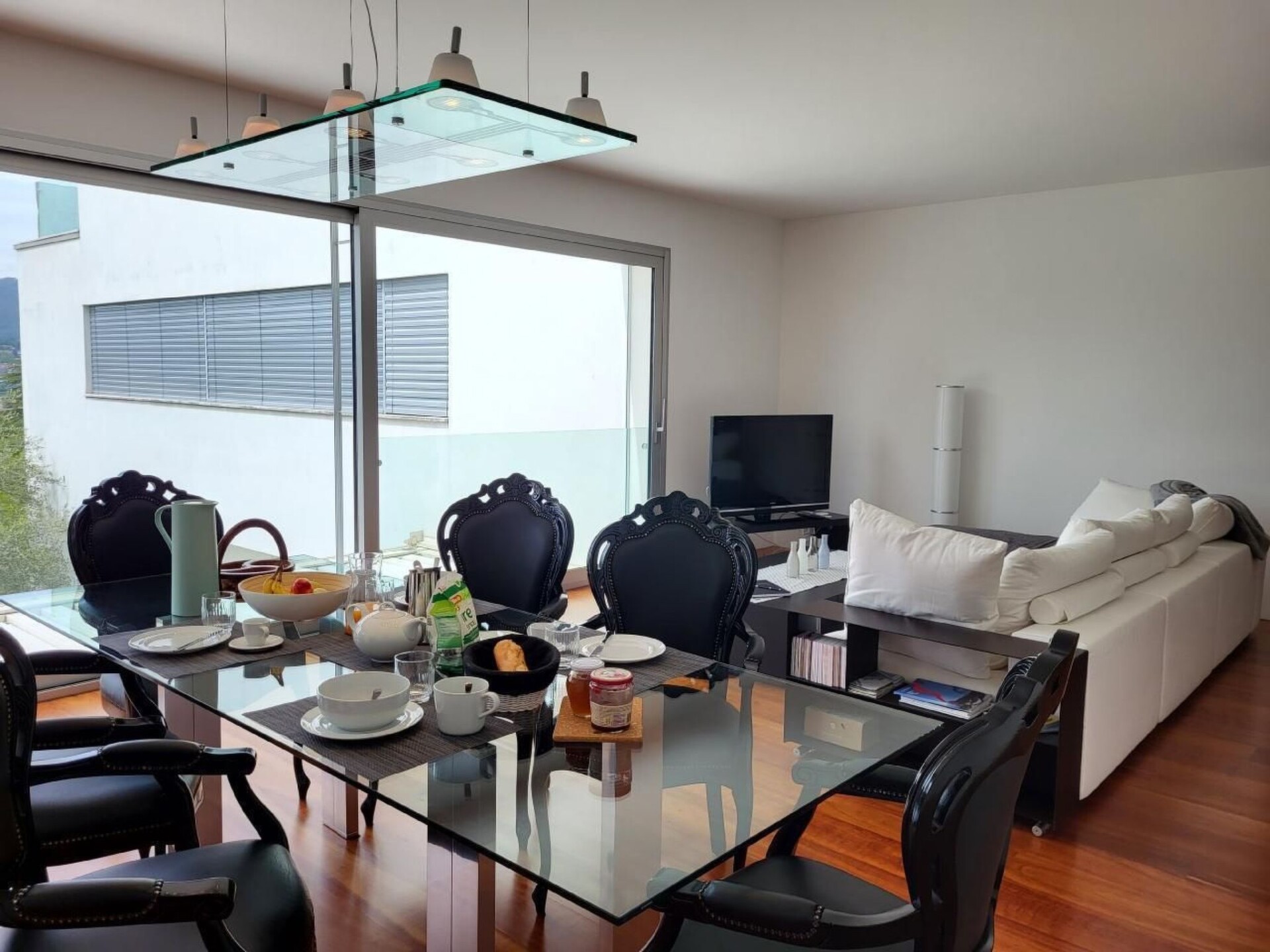 Immerse yourself in the pleasure of a breathtaking holiday in Ruvigliana and enjoy the wonderful view and quiet moments of relaxation on the large, spacious roof terrace of the "Casa Cröevi" holiday flat. This accommodation is a dream for up to 4 people who are looking for idyllic holiday moments between the city and nature without having to forego the luxury of modern living facilities.The interior of the flat is an oasis of peace and relaxation. The open-plan bedroom, which flows seamlessly into the living room, creates an airy and inviting atmosphere. An additional bedroom with a comfortable sofa bed offers further space for two people. The kitchen, skilfully integrated into the living room, is fully equipped and leaves nothing to be desired - perfect for enjoying culinary evenings with a view of Lugano. Further amenities such as free WiFi, a Smart TV and not forgetting a Nespresso coffee machine complete the upscale offer.The spacious, covered roof terrace with its lounge feel is sure to be the highlight of your stay. Here you can experience unforgettable sunsets and enjoy the breathtaking view of Lake Lugano and the surrounding mountains. You will find a convenient parking space in the underground car park, which adds to the comfort.The area surrounding the holiday flat offers a perfect blend of central location and quiet retreat. Located right next to the Monte Bre station, you can easily reach the city of Lugano and all the sights by public transport. For those interested in culture, museums and other cultural highlights are within easy reach. The proximity to international airports such as Milan/Malpensa also makes travelling uncomplicated.Don't miss out on this unique holiday experience at "Casa Cröevi". Whether you are looking for peace and quiet on the roof terrace, high-quality interior design or the wonderful surroundings with a wide range of leisure activities such as the Lido di Lugano, sailing club or the surrounding mountains - here you will find everything you need for an unforgettable holiday. We look forward to welcoming you to our little paradise soon. NL-00009208