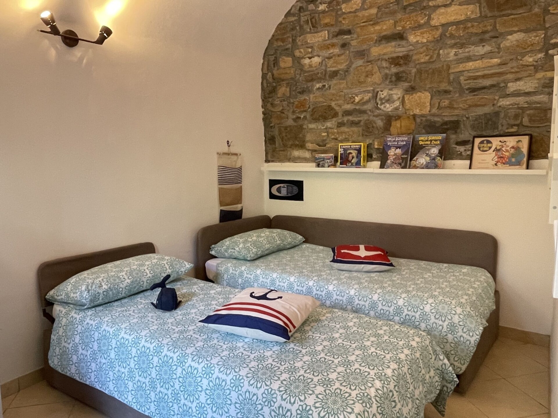 Appartement 3-kamers 64 m2, op de begane grond. Comfortabel en smaakvol ingericht: 1 kamer met 1 2-pers bed (1 x 160 cm, lengte 200 cm). 1 kamer met 3 bedden (80 cm). Uitgang naar de tuin. Keuken (oven, 4 kookpitten (vlammen), broodrooster, waterkoker, magnetron, diepvriezer, elektrische koffiemachine, pads voor de koffiemachine (Nespresso)) met eettafel. Douche/WC. Gas-verwarming. Verwarming alleen beschikbaar van 15.10. tot 15.04. Natuurstenen vloeren. Zithoek in de tuin. Terrasmeubelen, barbecue. Mooi uitzicht in de verte op zee. Ter beschikking: wasmachine, droger. Internet (WiFi, gratis). Rookmelders, brandblusser. IT008021C2VD4OTB3H