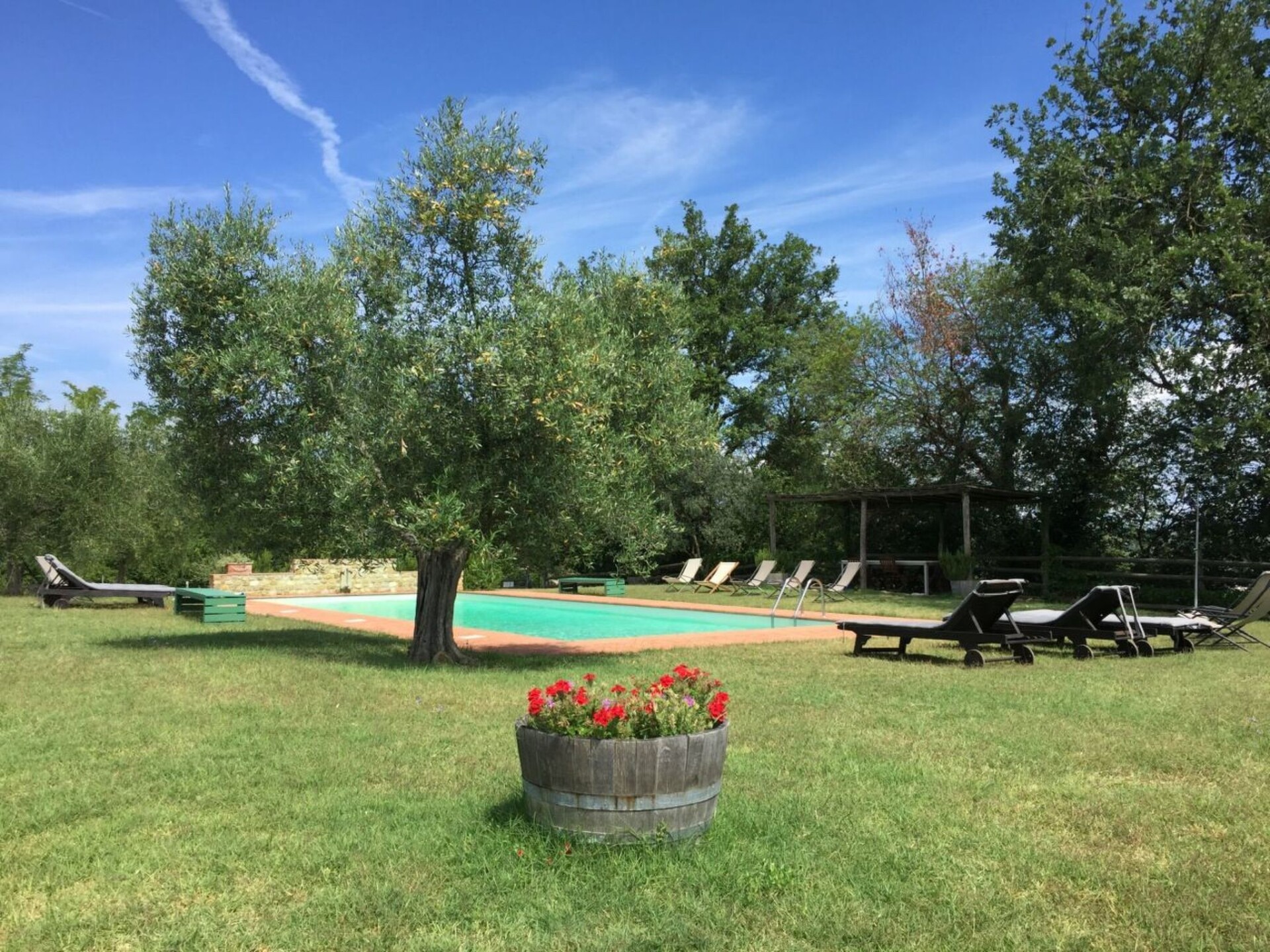 Fallocchio is a spacious house divided into five large apartments with one or two bedrooms, kitchenette, living room, bathroom with bath and shower. In the restoration of the house, the beamed ceilings and large rooms have been preserved. On the ground floor there is a large and well-equipped kitchen with fireplace available for communal use. The house is surrounded by a garden with a covered patio and barbeque and views across the surrounding valleys.ERTA and FALLOCCHIO share a swimming pool with panoramic views.first floor, tastefully furnished with large double room, living room with sofa, dining area with kitchen corner (fridge, 2 hotplates, sink), bathroom Apartment Verde. IT048038B5ZYVG4BYT