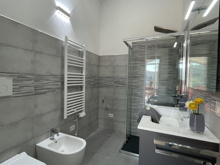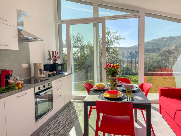 "Casa Luca", huis 2-kamers 55 m2, op de begane grond. Ruim en licht, modern en smaakvol ingericht: 1 kamer met 1 2-pers bed (1 x 160 cm). Uitgang naar de tuin, naar het terras. Woonkeuken (oven, afwasmachine, 4 inductiekookplaten, broodrooster, waterkoker, magnetron, diepvriezer, elektrische koffiemachine, pads voor de koffiemachine (Lavazza)) met eettafel, 1 2-pers divanbed (1 x 160 cm), Sat-TV, air-conditioning en elektrische rolluiken. Uitgang naar de tuin, naar het terras. Douche/bidet/WC. Air-conditioning, heteluchtverwarming. Groot terras 20 m2. Terrasmeubelen, barbecue (verrijdbaar), ligstoelen (2). Mooi panoramazicht op het dal. Ter beschikking: wasmachine, strijkijzer, kinderstoel, kinderbed, haardroger. Internet (Internet (WiFi), gratis). Parkeerplaats (omheind). Privé ingang. IT008031C22IDL9B37