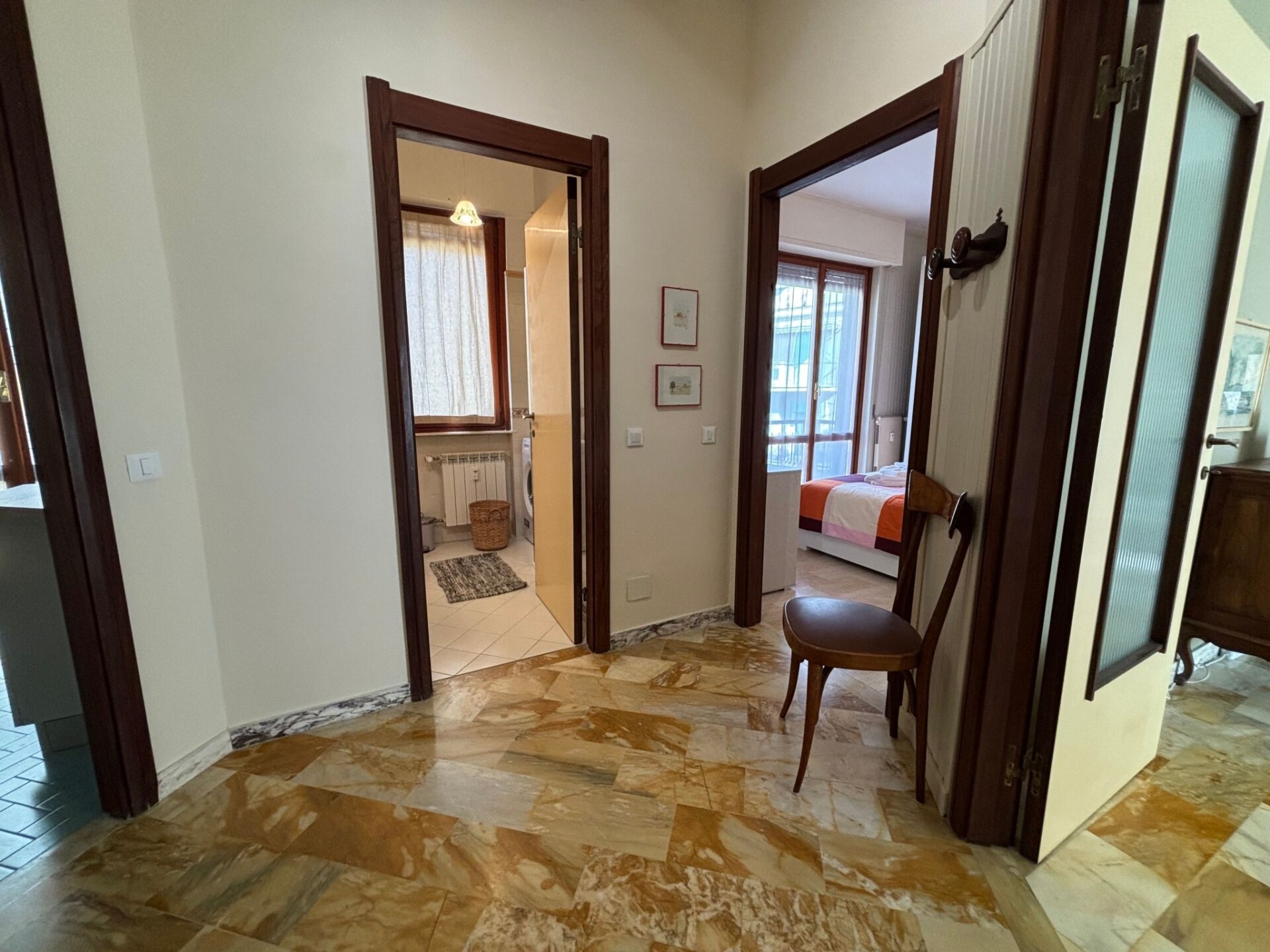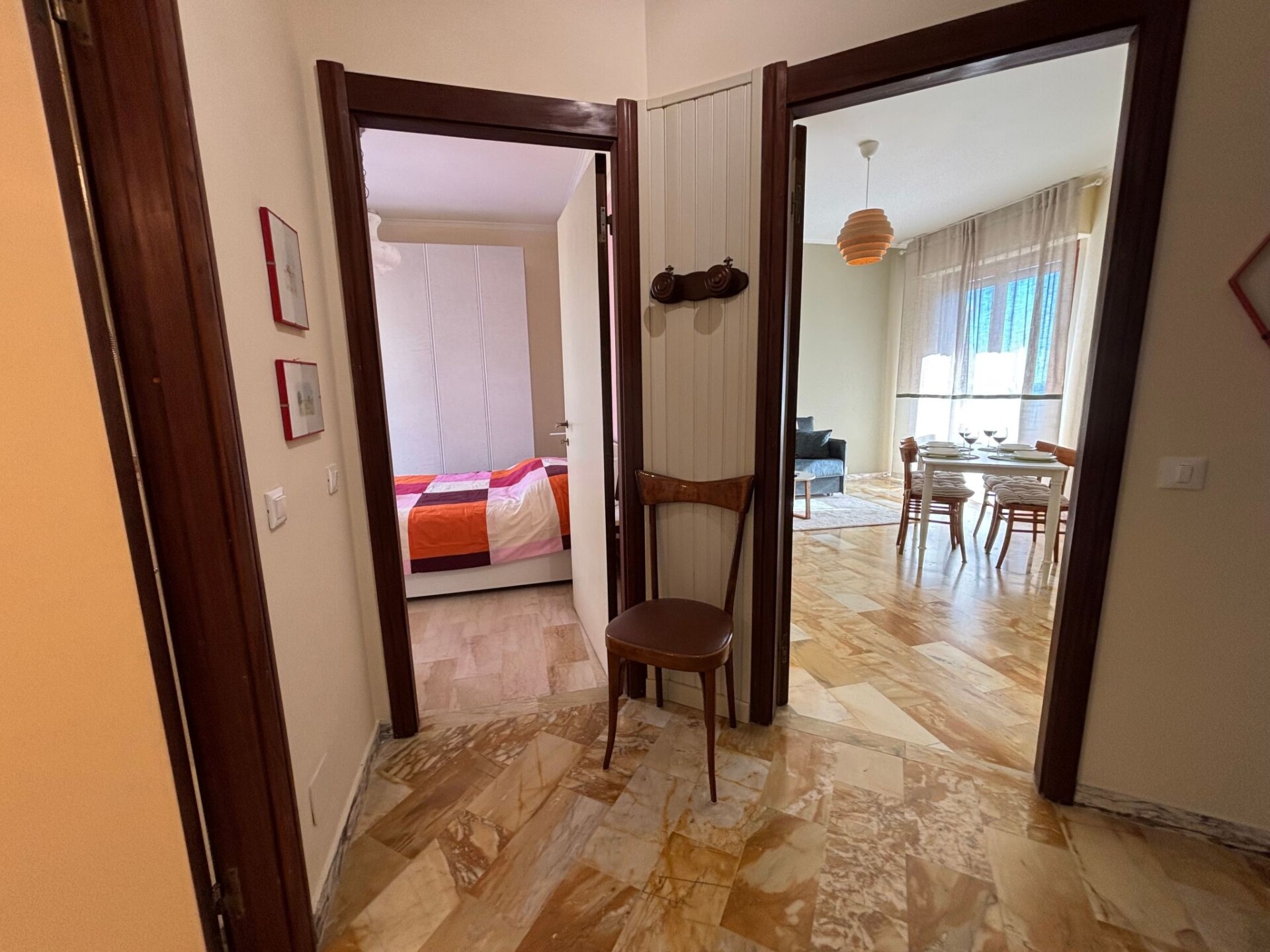 A few steps from the historic centre of Chiavari is Casa Nina, a comfortable and cosy flat composed of an entrance hall, a fully equipped kitchen with a small peninsula, and a living room with a sofa bed and dining area, with a splendid sea view, ideal for excellent moments of relaxation. The sleeping area offers a spacious and comfortable double bedroom. There is a bathroom complete with shower and bidet. All rooms overlook spacious terraces with sea and hill views. Equipped with every comfort, Casa Nina is the perfect starting point for visiting Chiavari and its surroundings in total relaxation.Chiavari is one of the gems of the Riviera Ligure di Levante, an elegant and authentic city that combines the charm of the sea with the beauty of its historic centre. It is a perfect destination for those seeking a holiday of relaxation, culture and nature. You can get lost among the narrow alleys, known as the caruggi di Chiavari, on a route of about 3 km embellished by medieval porticoes, ancient churches, monuments and historical buildings. Discover the colourful craft workshops, historic places that offer the opportunity to get to know some unique aspects of the city, such as the 16th-century waxworks or the workshop of a carver who still makes figureheads for boats. As you stroll through the town centre, through arcades and over mosaic-painted floors, you will also come across many old business premises, such as a 19th-century jewellery shop with perfectly preserved wooden doors. Leaving the town centre, via a stepped ascent, one can reach Chiavari Castle, located on a hill near the northern section of the ancient walls. It has been privately owned since 1913, but it is possible to admire it from the outside. Parallel to the beach, a charming promenade runs along the seafront for about 2 km. It is an ideal place for walking, jogging and taking pleasure breaks in one of the typical local restaurants. This scenic promenade connects Chiavari with the marina. In the surroundings of Chiavari, you can also visit Camogli, a beautiful and romantic village overlooking Paradise Gulf in a natural setting. IT010015B47AZNNGZJ