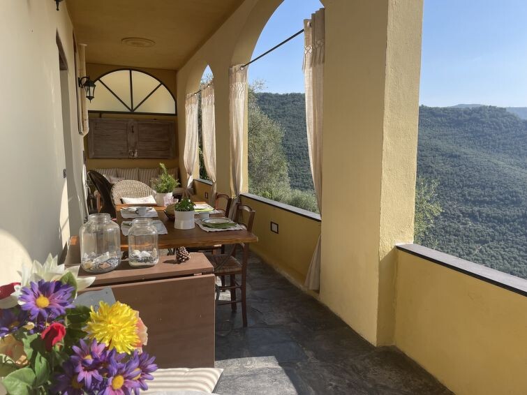 Mooi, gezellig huis "Casa Norvegia", gerenoveerd, omgeven door bomen en weiden. In de plaats Valloria, 14 km van het centrum van Imperia, 5 km van het centrum van Dolcedo, zonnige, verhoogde ligging tegen een helling, 20 m van de bosrand, 14 km van zee. 300 m lange rommelige toegangsweg tot aan het huis. Openbare parkeergarage op 20 m. Restaurant, bar, bakkerij 3 km, café 200 m, internet cafe, voetgangersgebied, fietsverhuur 200 m, bushalte 200 m, zandstrand "Borgo Marina Imperia" 16 km, meer (zwemmen) "Laghetti di Lecchiore" 3 km. Tennis 500 m, manege 5 km, wandelroutes 20 m vanaf het huis. Auto noodzakelijk.