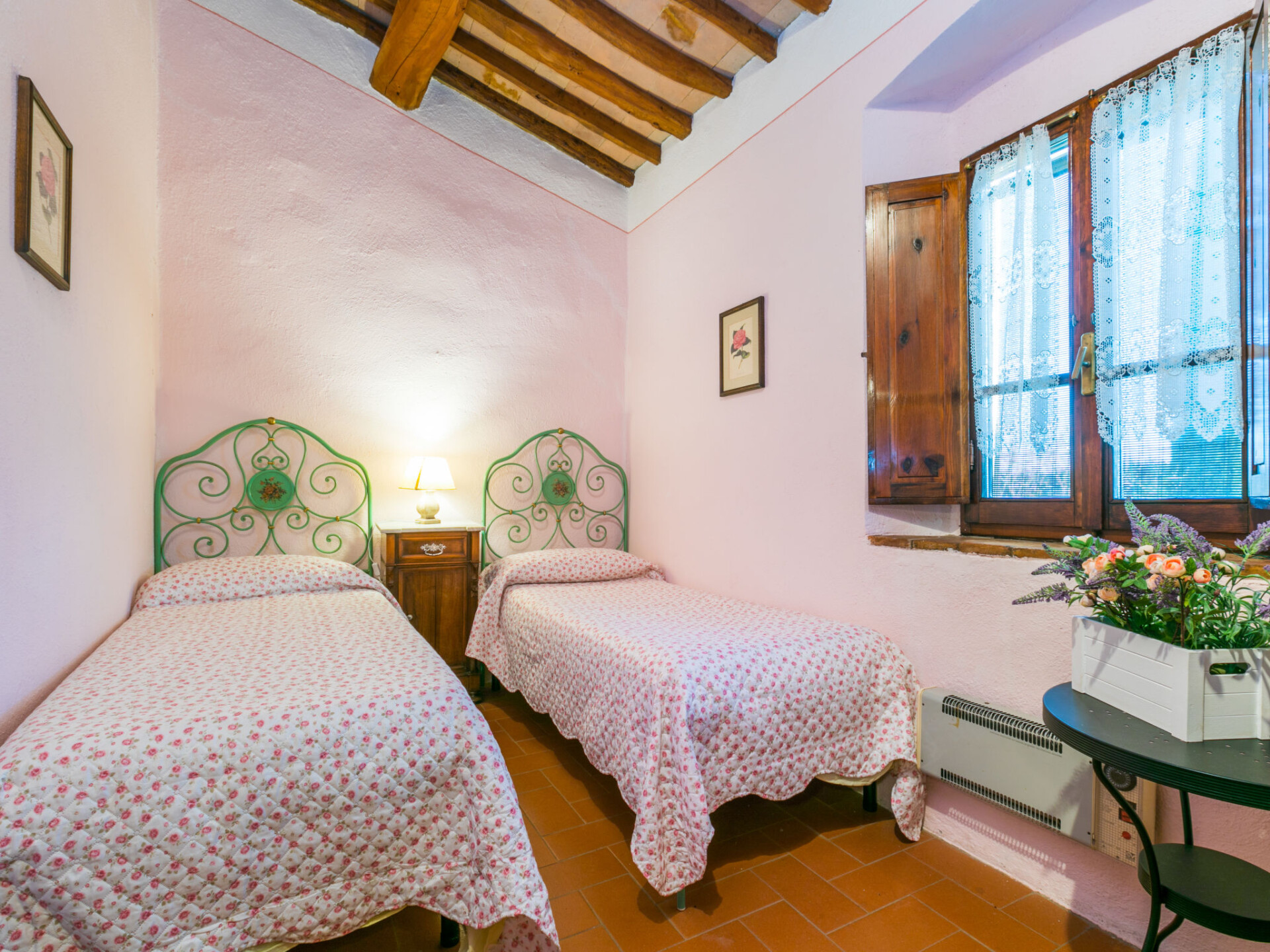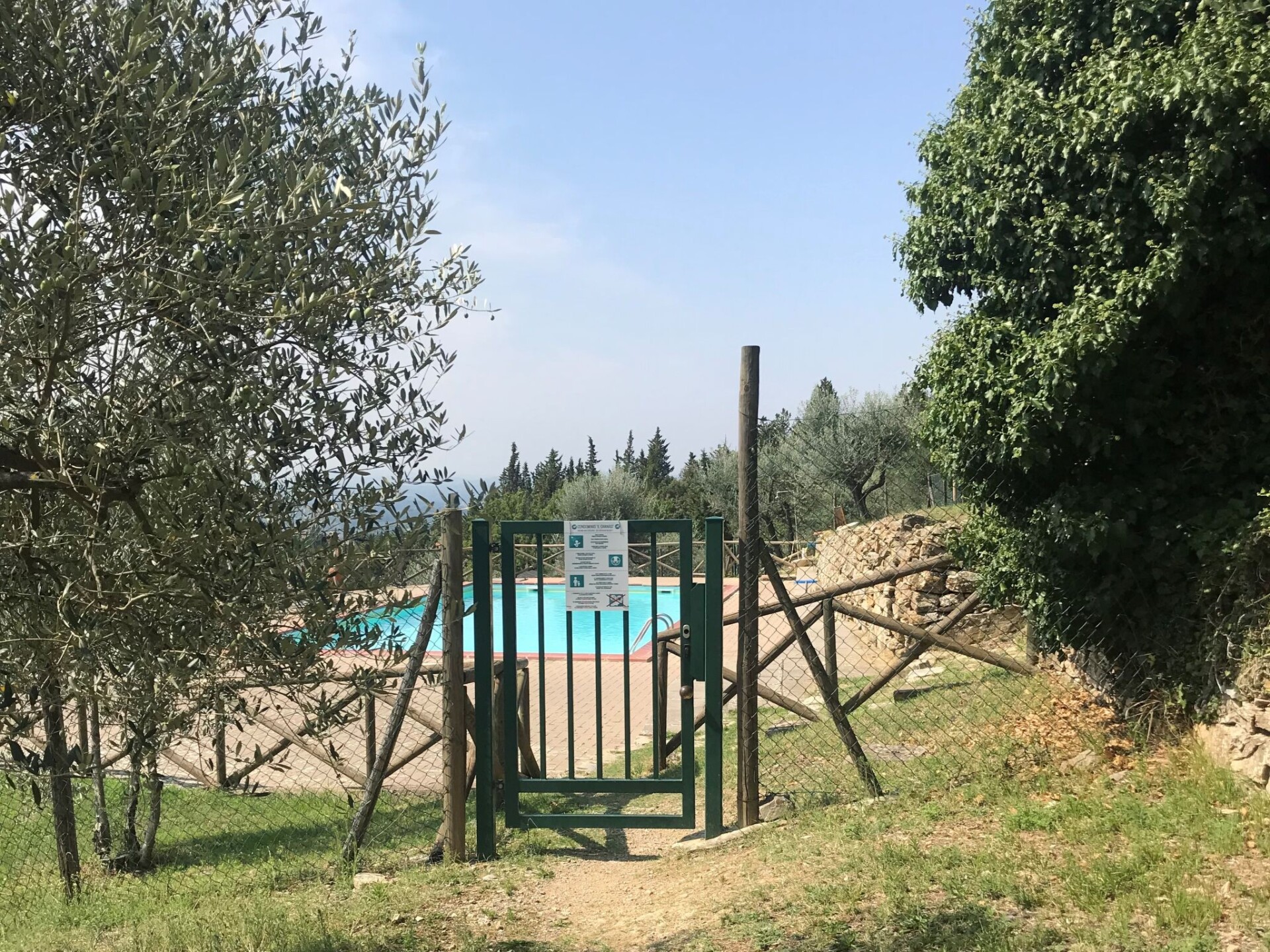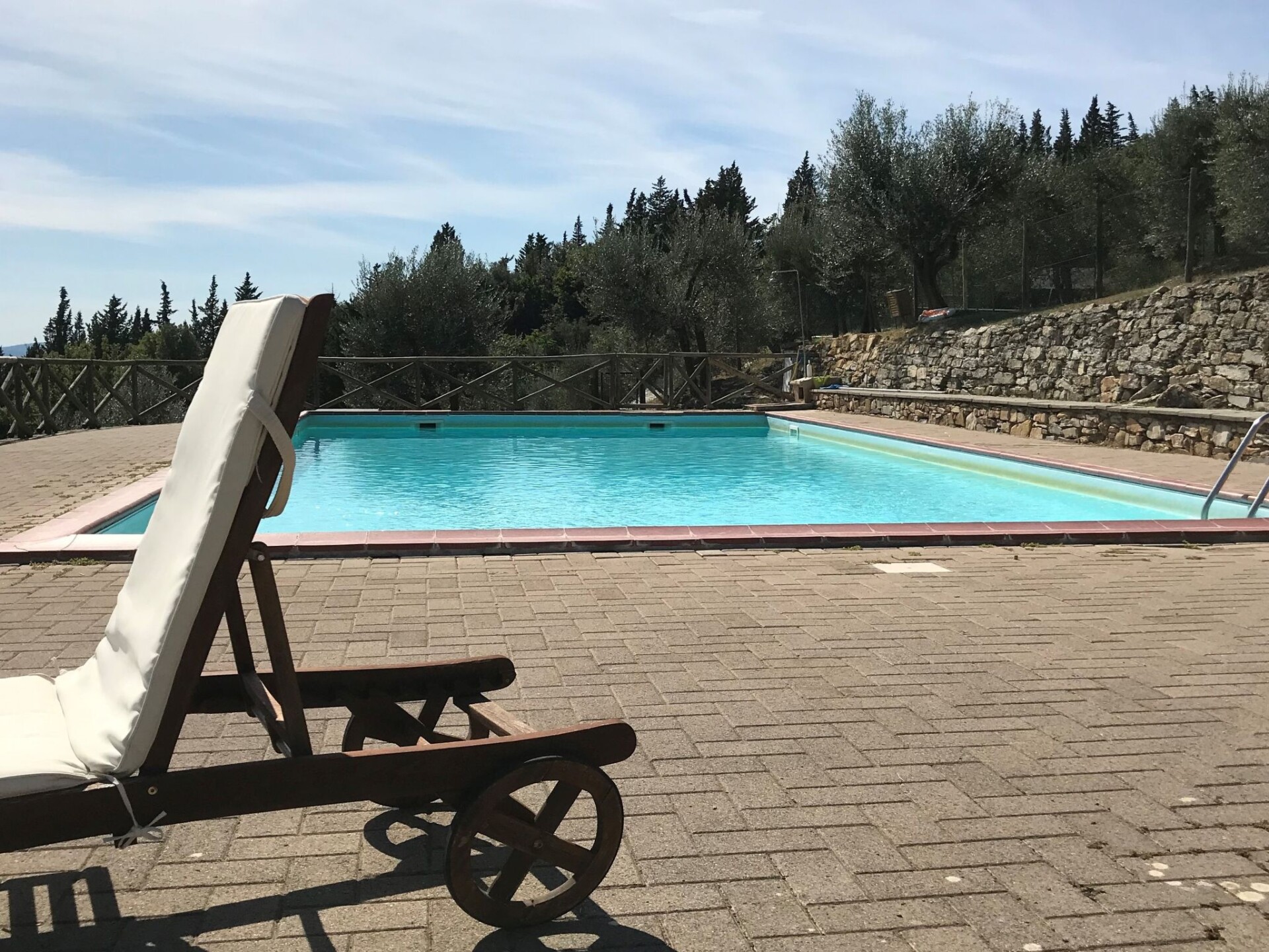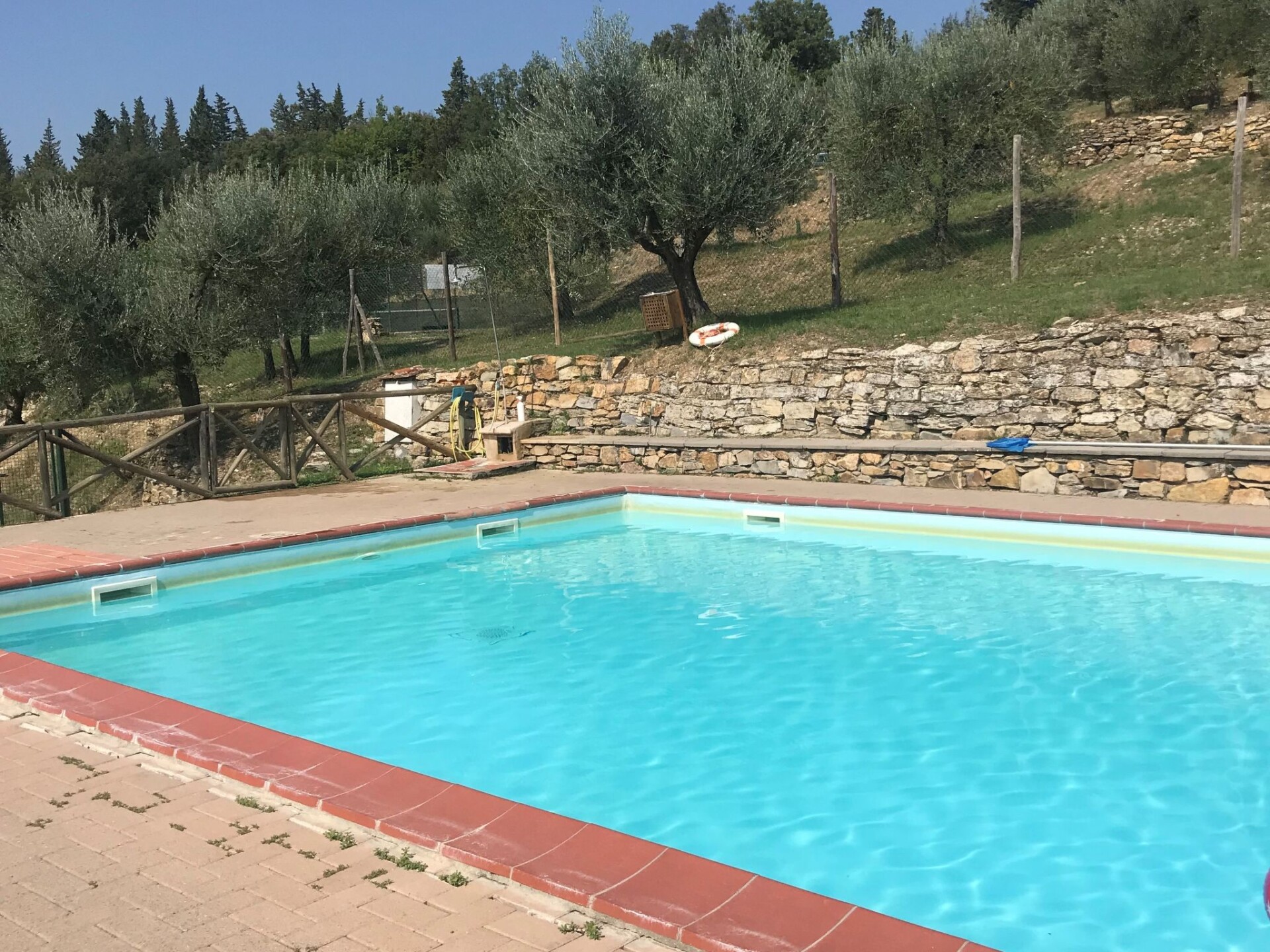 Castellina in Chianti: Gezellig, rustieke rijtjeshuis "Casa Patrizia", van 2 verdiepingen, bouwjaar 1700, gerenoveerd in 1990, omgeven door bomen en wijngaarden. 20 appartementen in de woning. In een gehucht met 5 huizen, 12 km van het centrum van Castellina in Chianti, 9 km van het centrum van Poggibonsi, geïsoleerde, rustige, zonnige ligging op een heuvel, 100 m van de bosrand, 80 km van zee, te midden van groen. Voor medegebruik: wild terrein, planten en bomen, openluchtzwembad omheind (6 x 13 m, 80 - 130 cm diepte, seizoensgebonden beschikbaarheid: 20.Mei. - 30.Sep. openingstijden zwembad: 07:00-21:00). Buitendouche, tennisbaan (1 x hard court), terras, tuinmeubelen, onderhoud zwembad door de eigenaar/tuinman. 1.8 km lange rommelige toegangsweg tot aan het huis. Parkeerplaats (voor 2 auto's) bij het huis op het terrein. Levensmiddelenwinkel 6 km, supermarkt 6 km, restaurant 5 km, bakkerij 6 km, fietsverhuur 12 km, bushalte 6 km, treinstation "Poggibonsi" 9 km, zandstrand "Cecina Mare" 80 km, overdekt zwembad 9 km, thermaalbad "Rapolano Terme" 70 km. Golfterrein (18 holes) 55 km, tennis 100 m, wandelroutes 100 m vanaf het huis. Attracties in de buurt: San Gimignano 23 km, Greve in Chianti 26 km, Siena 43 km, Firenze 58 m. Auto noodzakelijk. Baby uitrusting (incl.). Laden en lossen van de baggage is mogelijk bij het huis. Badmuts verplicht.
