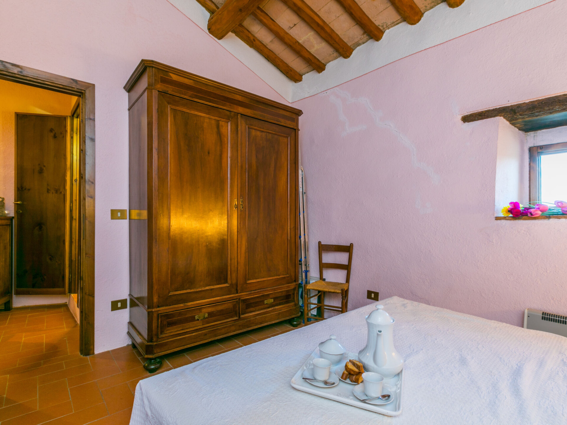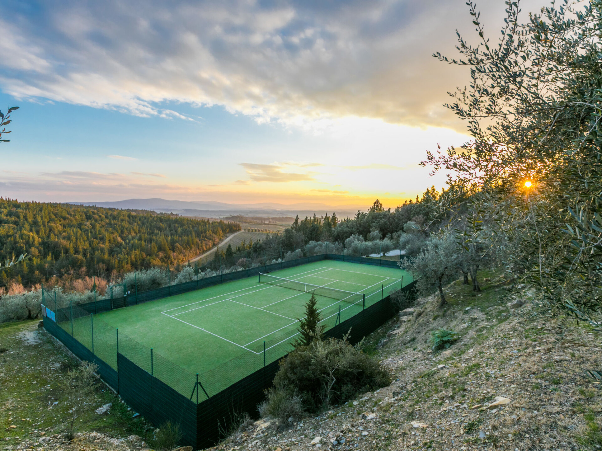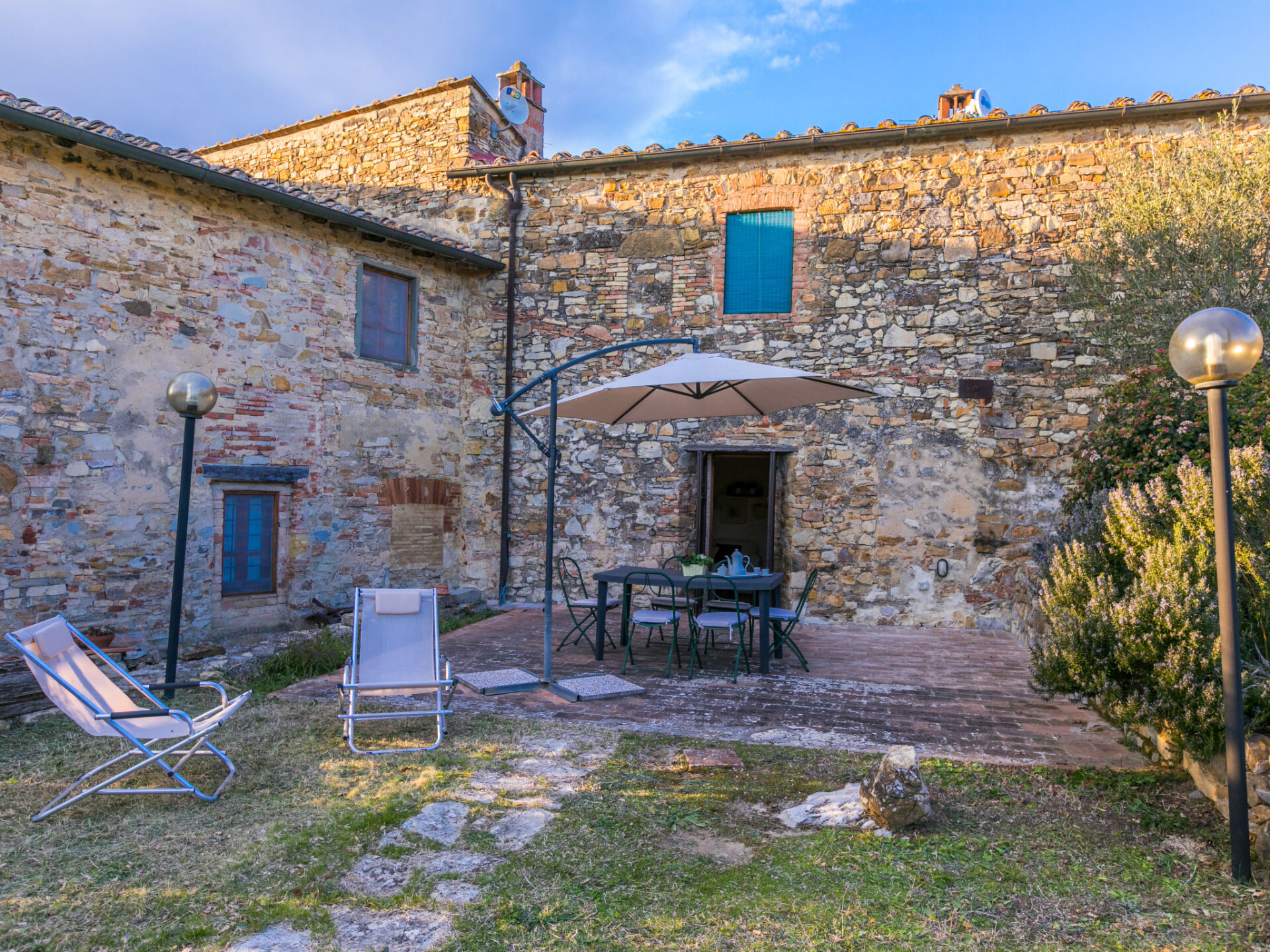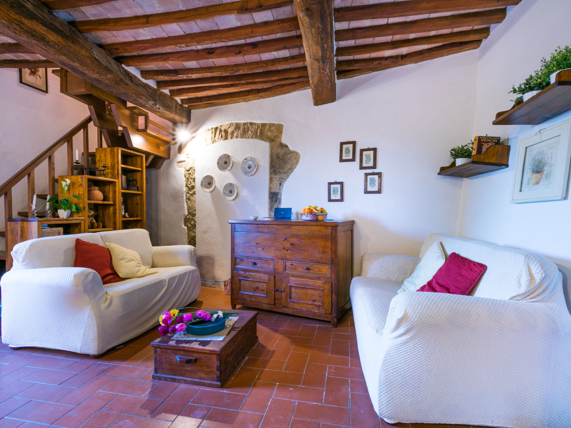 Castellina in Chianti: Gezellig, rustieke rijtjeshuis "Casa Patrizia", van 2 verdiepingen, bouwjaar 1700, gerenoveerd in 1990, omgeven door bomen en wijngaarden. 20 appartementen in de woning. In een gehucht met 5 huizen, 12 km van het centrum van Castellina in Chianti, 9 km van het centrum van Poggibonsi, geïsoleerde, rustige, zonnige ligging op een heuvel, 100 m van de bosrand, 80 km van zee, te midden van groen. Voor medegebruik: wild terrein, planten en bomen, openluchtzwembad omheind (6 x 13 m, 80 - 130 cm diepte, seizoensgebonden beschikbaarheid: 20.Mei. - 30.Sep. openingstijden zwembad: 07:00-21:00). Buitendouche, tennisbaan (1 x hard court), terras, tuinmeubelen, onderhoud zwembad door de eigenaar/tuinman. 1.8 km lange rommelige toegangsweg tot aan het huis. Parkeerplaats (voor 2 auto's) bij het huis op het terrein. Levensmiddelenwinkel 6 km, supermarkt 6 km, restaurant 5 km, bakkerij 6 km, fietsverhuur 12 km, bushalte 6 km, treinstation "Poggibonsi" 9 km, zandstrand "Cecina Mare" 80 km, overdekt zwembad 9 km, thermaalbad "Rapolano Terme" 70 km. Golfterrein (18 holes) 55 km, tennis 100 m, wandelroutes 100 m vanaf het huis. Attracties in de buurt: San Gimignano 23 km, Greve in Chianti 26 km, Siena 43 km, Firenze 58 m. Auto noodzakelijk. Baby uitrusting (incl.). Laden en lossen van de baggage is mogelijk bij het huis. Badmuts verplicht.