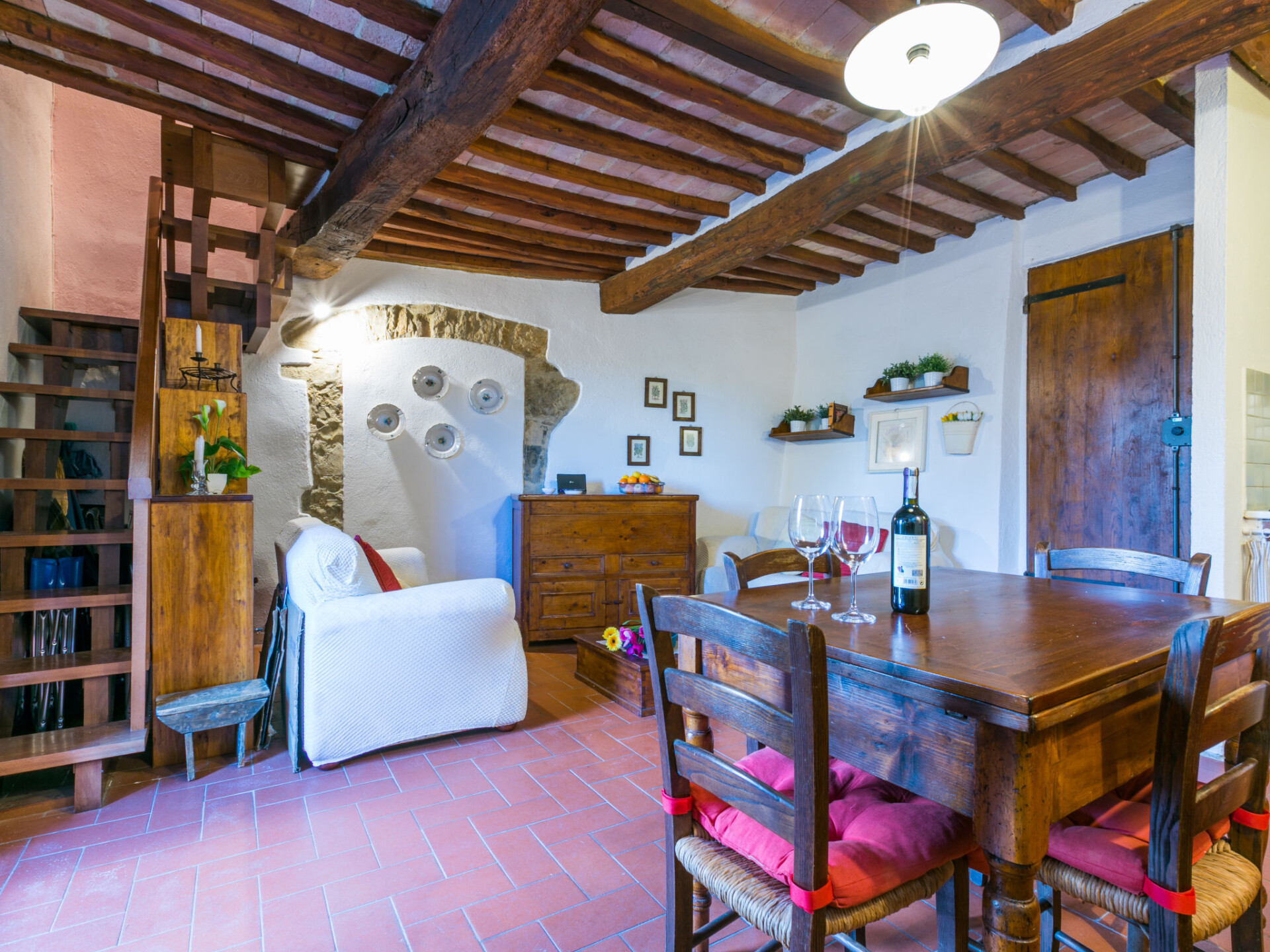 "Casa Patrizia", huis 3-kamers 50 m2 op 2 verdiepingen. Rustiek en gezellig ingericht: woon-/eetkamer met TV (Flatscreen TV). Uitgang naar de tuin, naar het terras. Kookhoek (afwasmachine, 4 inductiekookplaten, broodrooster, waterkoker, magnetron, elektrische koffiemachine). Bovenverdieping: 1 2-pers. kamer. 1 kamer met 2 bedden (80 cm). Douche/WC. Verwarming (extra). Verwarming niet in alle ruimtes. Natuurstenen vloeren. 2 terrassen, tuin. Terrasmeubelen, barbecue, ligstoelen. Zeer mooi panoramazicht op het landschap en Chianti. Ter beschikking: kinderstoel, kinderbed tot 2 jaar, haardroger. Internet (Internet (WiFi), gratis). Parkeerplaats (2 Auto's) bij het huis. Niet rokers woning. Privé ingang. IT052005C2YMP23GNZ
