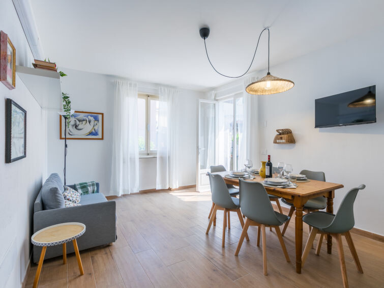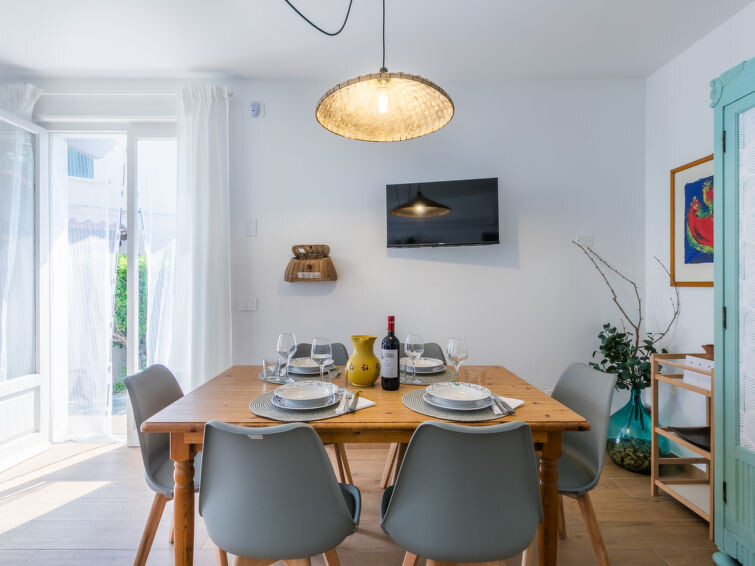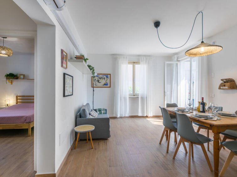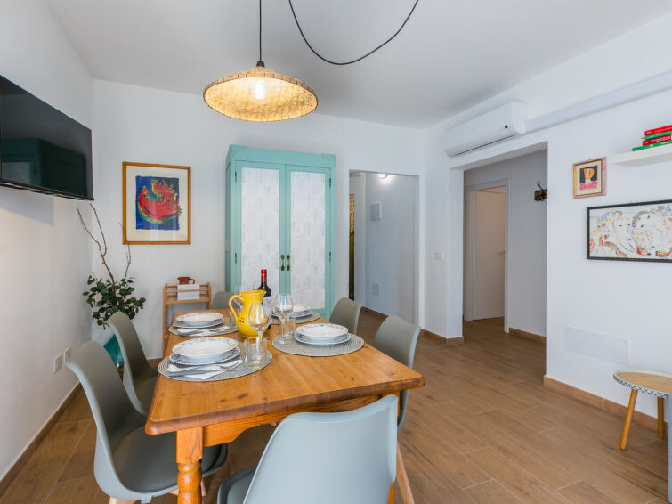 "Casa Rico", appartement 3-kamers 55 m2, op de begane grond. Mooi en modern ingericht: woon-/eetkamer met TV. Uitgang naar de tuin. 1 2-pers. kamer. 1 kamer met 1 x 2 stapelbedden. Kookhoek (oven, 4 kookpitten (vlammen), broodrooster, waterkoker, magnetron, elektrische koffiemachine). Uitgang naar de tuin. Douche/bidet/WC. Air-conditioning. Tuin. Terrasmeubelen. Ter beschikking: wasmachine, klamboe, haardroger. Internet (WiFi, gratis). Geschikt voor families. Maximaal 1 huisdier/hond toegestaan. Brandblusser. IT049007C2EVXV2JU9